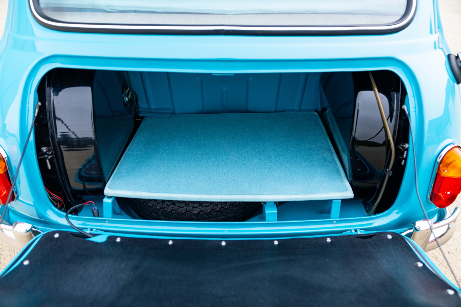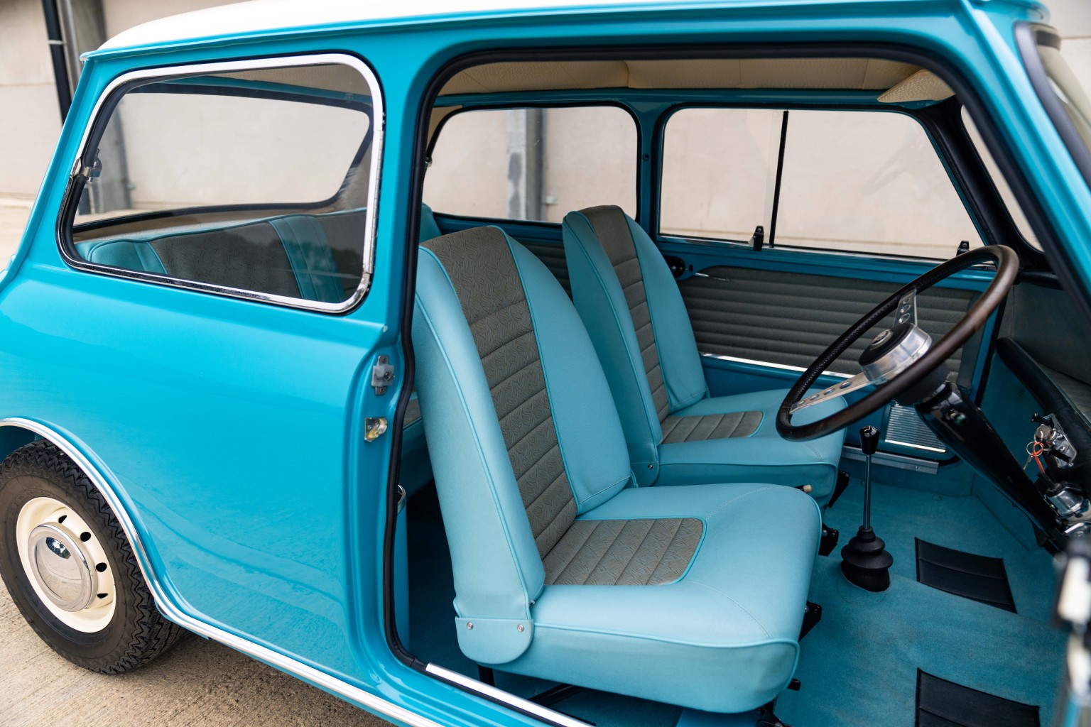 Finished in Surf Blue with an Old English White roof and complemented by the correct Powder Blue/Gold Brocade Grey vinyl trim, this Mini has been superbly restored to an impeccable standard. Every detail reflects dedication, from the meticulous paintwork to the precision-engineered engine components. The car comes complete with a comprehensive history and restoration file and an official Heritage Certificate, underscoring its authenticity and pedigree.
