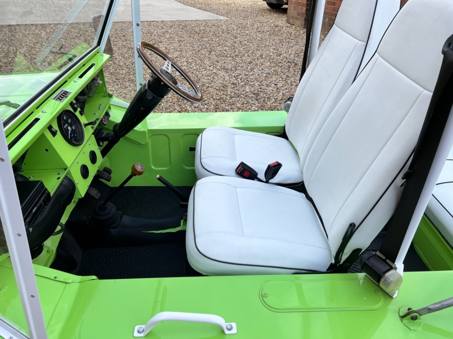 1982 Austin Mini Moke 998cc. Green with white upholstery and full black weather gear. This fantastic Moke is an Australian built car that was exported brand new to the U.K in 1982. It was registered by the importer in December and passed to its new and first owner on January 1st 1983. The Moke was taken to France to we assume a holiday home where it was used sparingly with invoices on file for work carried out over the years confirming the very low mileage of just 14,000 (23,000 Km) as correct and just 1 previous owner during its life, some 38 years. We believe the Moke returned to the U.K circa 2016 before heading out on its travels again in 2018 to the beautiful sunny climes of the Algarve. During this time no expense has been spared and the car is in beautiful condition today. Starting on the button and running extremely well it is ready to use and enjoy whether here or at your holiday home in the sun. With its great colour, white interior and hood, driving it makes you feel like you are on holiday everyday. This is one of the prettiest Mokes we have seen and will make an ideal addition to any collection and a car you will be very pleased to own as it will definitely put a smile on your face. Upon sale a fresh MOT will be applied for your own peace of mind. Absolutely any inspection is welcome. All major debit and credit cards accepted. Part exchange considered. Finance arranged. Free U.K mainland delivery. Please contact us for any further information. More pictures on our website.