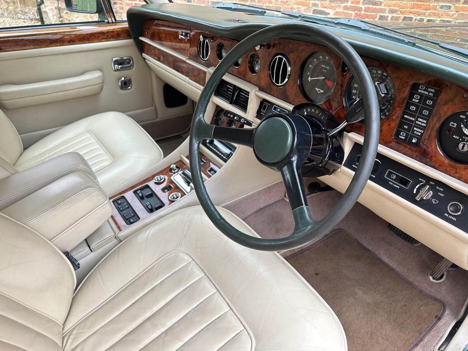 1988 Bentley Mulsanne S. Balmoral Green Metallic with Parchment Hide upholstery. Presented in this iconic and deeply elegant colour combination this Mulsanne is example of Bentley’s understated opulence and timeless craftsmanship. Complemented by a beautifully leather interior, this car exudes classic British sophistication from every angle. Having covered just 138,000 miles over its 37 year lifespan this Mulsanne has been maintained with exceptional diligence throughout its life. It is accompanied by an extensive and detailed history portfolio, including a wealth of service records, bills, invoices, and MOT certificates dating back decades. This documentation tells the story of a cherished car that has always been treated with respect and care. Inside, the cabin offers a true glimpse into the grandeur of Bentley’s coach-built heritage. Original cocktail glasses and flasks, lambswool rugs, rich wood veneers, and traditional chrome accents all remain intact, creating an atmosphere of warmth, comfort, and quiet luxury. On the road, the 6.75-litre V8 delivers its power with effortless grace, paired with Bentley’s famously refined ride. This is a car that makes every journey feel like an occasion, a celebration of engineering and elegance from an era before mass production diluted such charm. A true connoisseur’s motorcar, ideal for the discerning enthusiast or collector who values provenance, authenticity, and character. With an MOT through to August 2026 it is ready to go and be enjoyed. For further details, please don’t hesitate to get in touch. Additional high-quality photos and an exclusive video are available on our website and Facebook page. We encourage you to register your interest promptly to secure your opportunity and avoid disappointment.