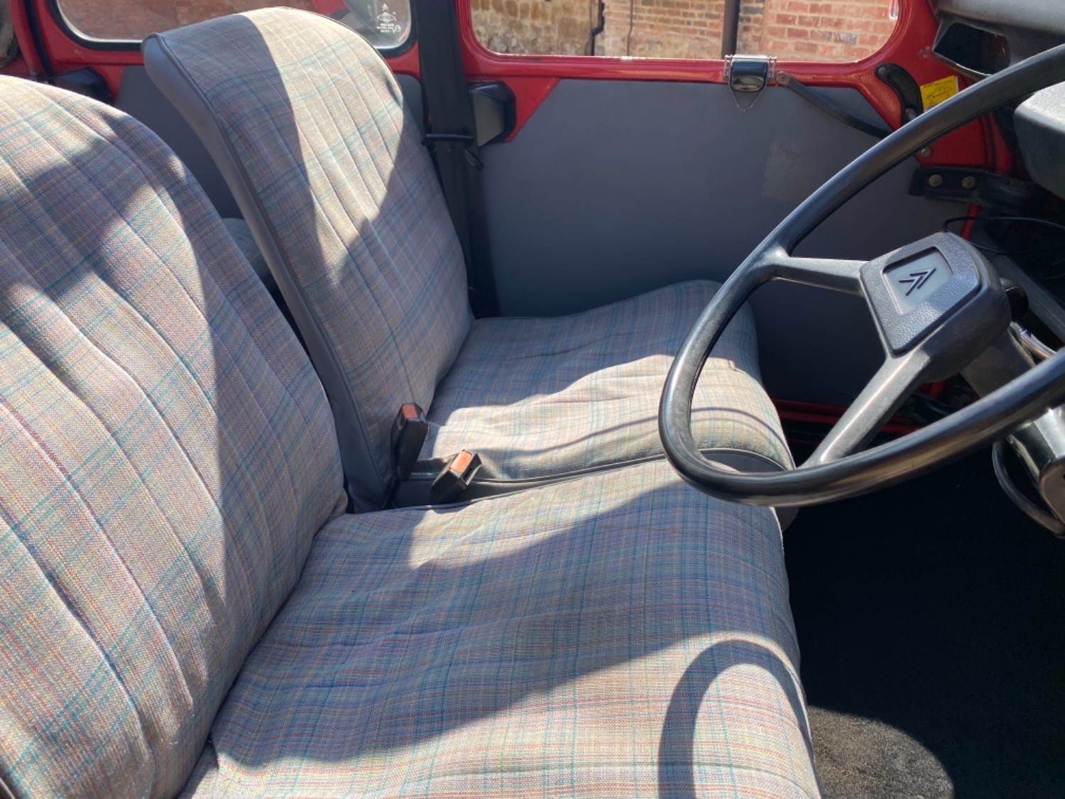 1989 Citroen 2CV Special. Red with grey cloth upholstery and a black roof. This lovely 2CV has been well cared for over the years and has recently just passed an mot test with no advisories. The car has the correct 2CV MCC tyres fitted and has had a replacement roof fitted. The paintwork is very bright and the upholstery showing minimal wear with no rips or tears. The chassis is very solid with no signs of corrosion and the car is running and driving well and has Luminition electronic ignition fitted. 2CV’s are now becoming rare and good ones are becoming harder to find with freshly restored models demanding huge prices. The car still retains its original book pack containing owners handbook and service book as well as a small history file containing an invoice for previous works carried out. Absolutely any inspection is welcome. All major debit and credit cards accepted. Part exchange considered. Finance arranged. Free U.K mainland delivery. Please contact us for any further information.
