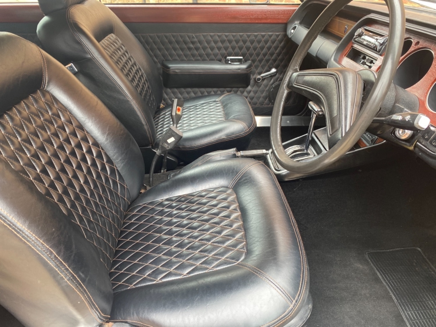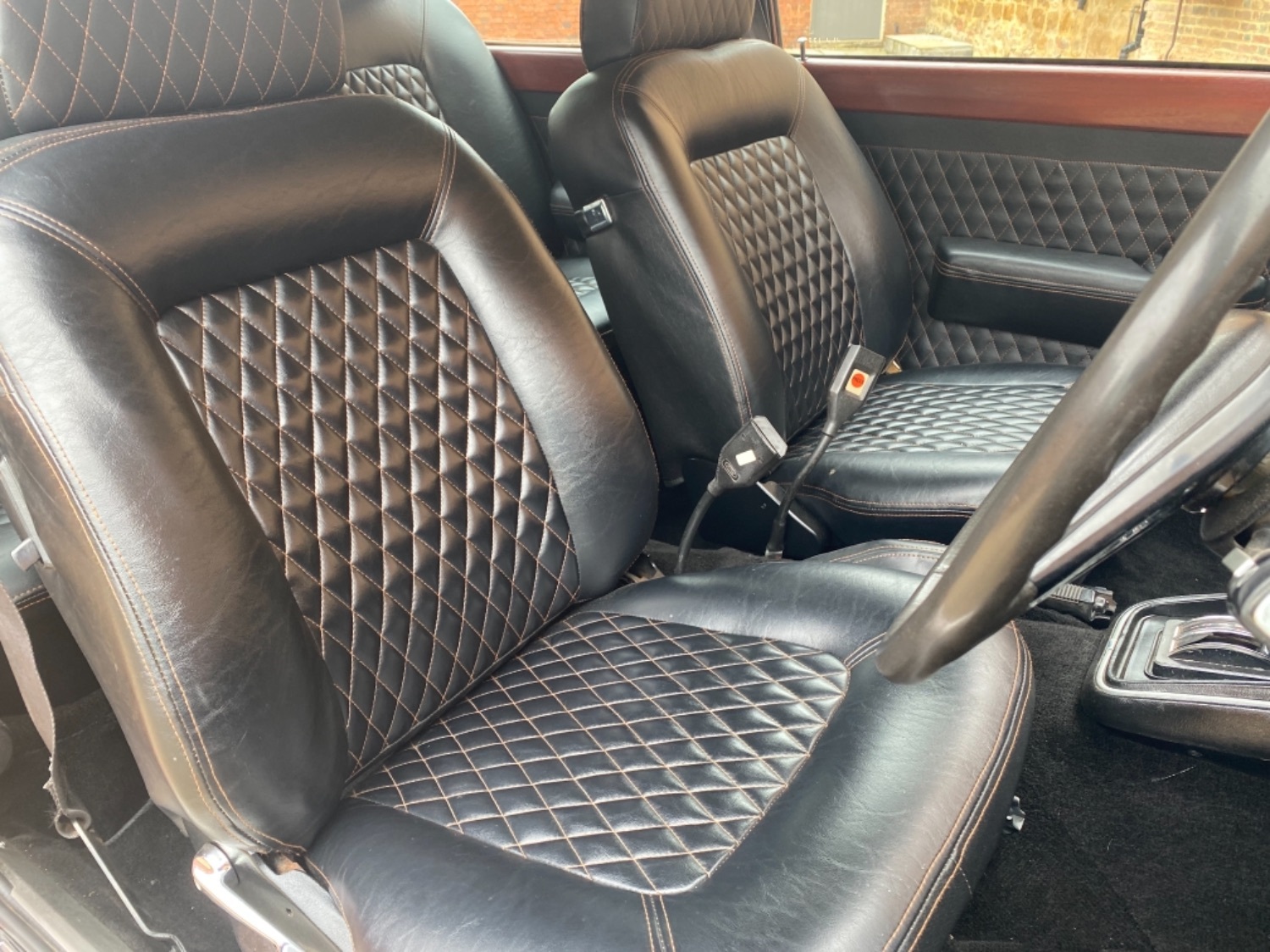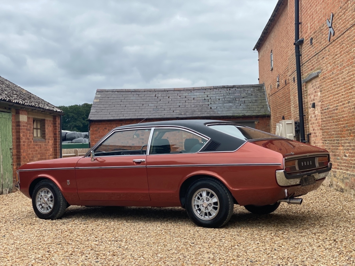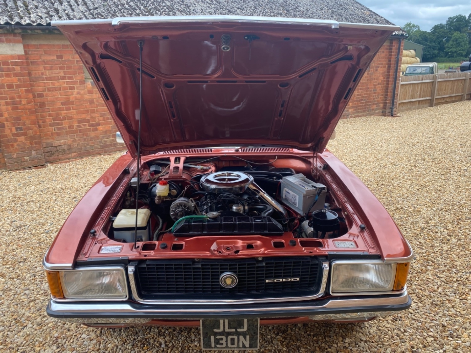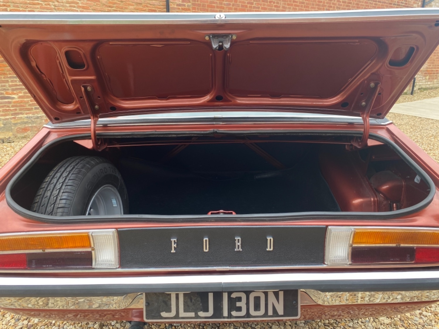 1975 Ford Granada 3.0 V6 Ghia Coupe Automatic. Arizona Gold with Black leather upholstery and a black vinyl roof. Originally registered on 9th June 1975, this very rare Ford Granada Ghia Coupé has been part of a 15 year restoration project and as such, presents in lovely condition throughout. The bronze coachwork is a great colour of the period and the diamond stitched black leather trim, whilst not standard fitment, has been done tastefully and is in keeping with the rest of the car. Open the bonnet and it is blatantly apparent the amount of work that has gone into restoring this Granada. Crank the key and the familiar roar of a 3.0 litre Essex engine is a gentle reminder of what a superb car this was, taking into account it is 46 years old. The Ford Granada is certainly evocative for men of a certain age. Absolutely everything was new or reconditioned throughout, and completed to a high standard. The panels are completely straight and true with great panel gaps, the paint is superb and completed to an excellent standard, new vinyl roof, rechromed bumpers, trim and rubbers where necessary. The underside is as good as the rest of the car, it’s beautifully clean as has only seen dry roads since completion. The interior has been completely re-upholstered with new diamond stitched leather seats, new carpet, new door cards and new headlining. The wheels have been refurbished and are pristine with new tyres The engine and gearbox completely overhauled, new water pump, alternator, radiator etc. There’s just too much to list, every bit of the car has been addressed. The car starts first turn of the key. It sounds beautiful, drives superbly with ample power, handles very well indeed and stops effectively. This is a very rare and beautiful car, it wants for nothing except enjoying and taking to shows. Granada Coupes are very rare indeed now and seldom offered for sale let alone in this condition so we think this is a great opportunity to grab yourself a 70’s icon. Although now tax and mot exempt the car has an mot until August 2022 with no advisories for your own peace of mind. Absolutely any inspection is welcome. All major debit and credit cards accepted. Part exchange considered. Finance arranged. Free U.K mainland delivery. Please contact us for any further information. More pictures on our website.