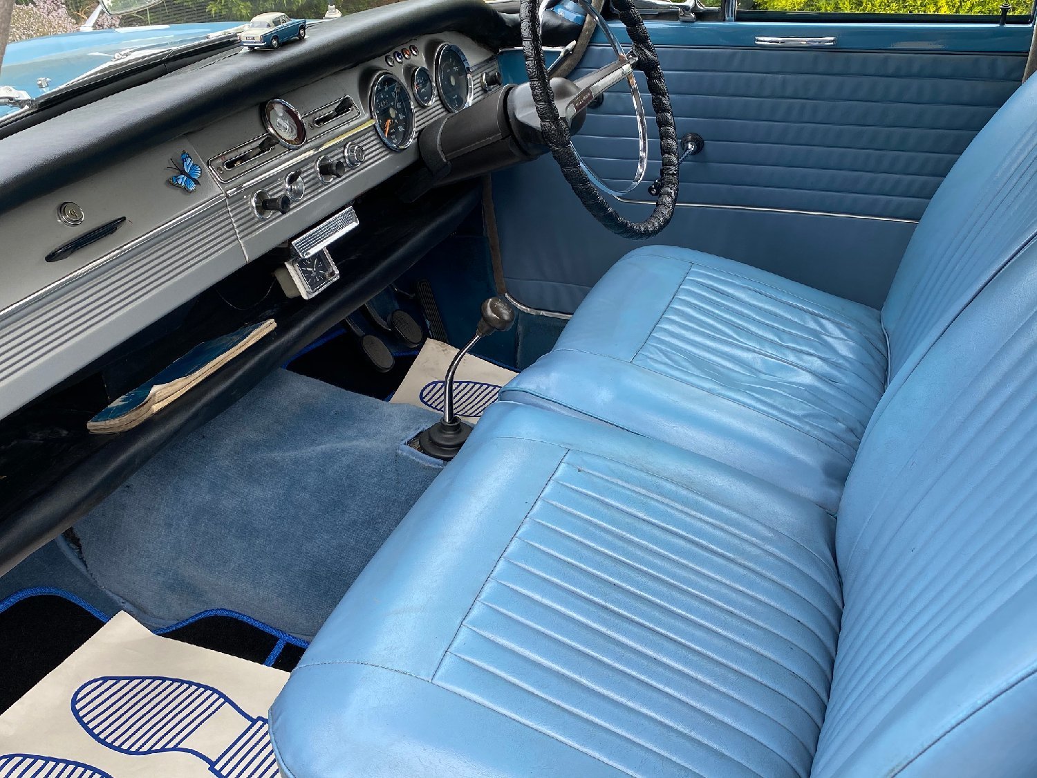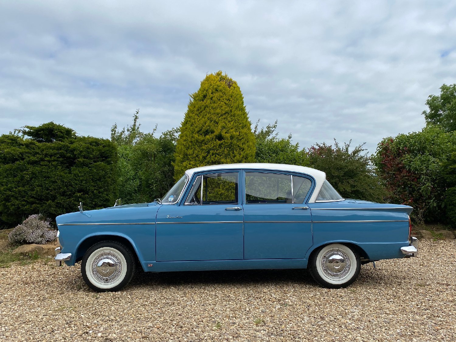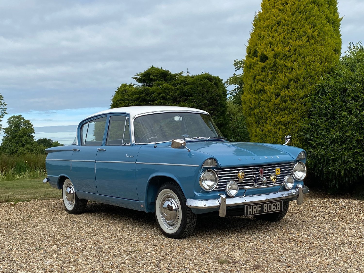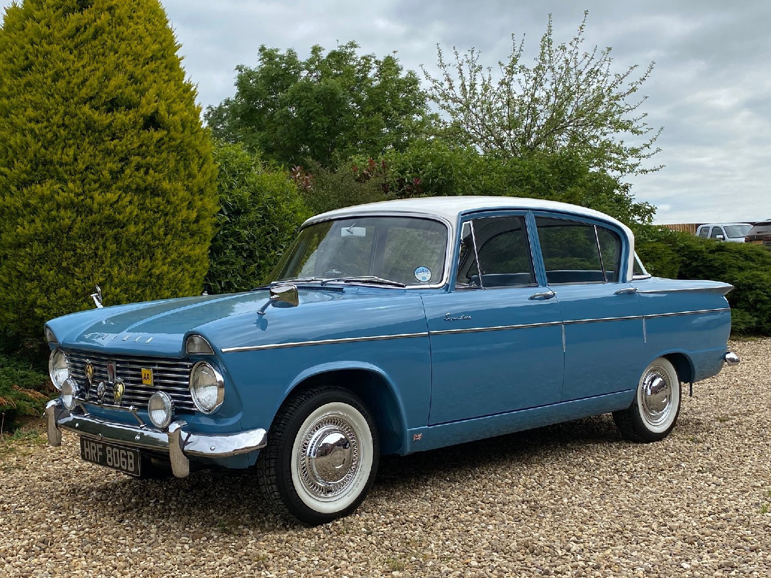 1964 Hillman Super Minx 1600cc. White over blue with blue upholstery. Supplied new by Porrington Motor Services to Mr W Ben of Stafford on 17th April 1964. This beautiful Minx is a real credit to its former keeper who has cherished the car for the last 12 years. A previous show winner, its stunning colour combination and white wall tyres really make this car a star attraction wherever it goes. An amazing car that has never been welded and a detailed underside in body colour. As you would expect the car drives just as it should and is totally at home in modern traffic. The history file contains all of the original handbooks and no less than three fully detailed Rootes Group service books dating from 1964 through to 1998 whilst still in the ownership of Mr Ben, some 34 years. Also included is a lovely stand displaying lots of show, rallies and meets that the car has attended over the years. This really is a car that would grace any showground and is just waiting to be enjoyed in new hands. Although now MOT exempt a fresh MOT will be applied for your own peace of mind and we will include free delivery to anywhere in the U.K mainland. Absolutely any inspection is welcome. All major debit and credit cards accepted, Part exchange considered. Finance arranged. Free U.K mainland delivery. Please call for any further information.