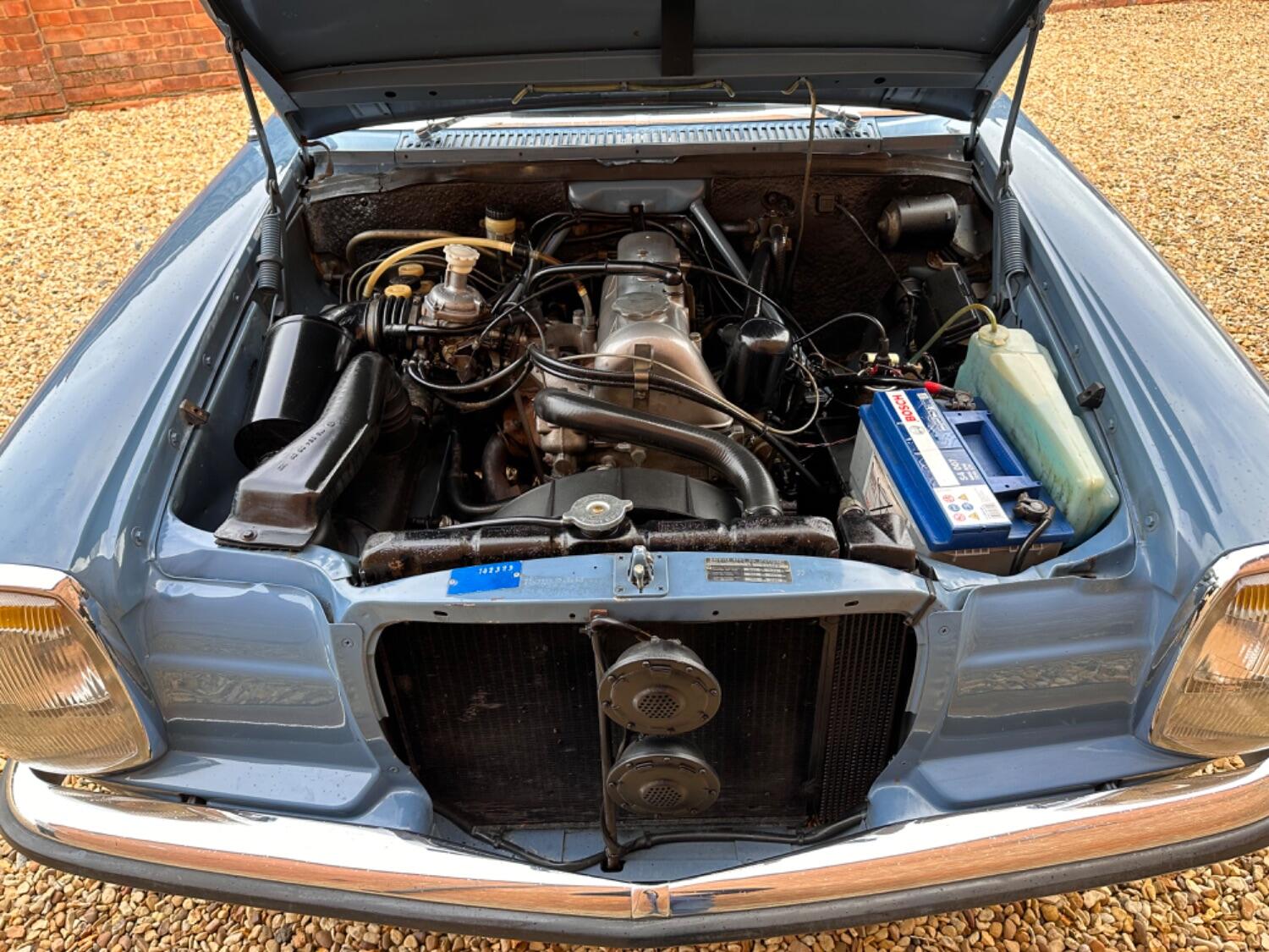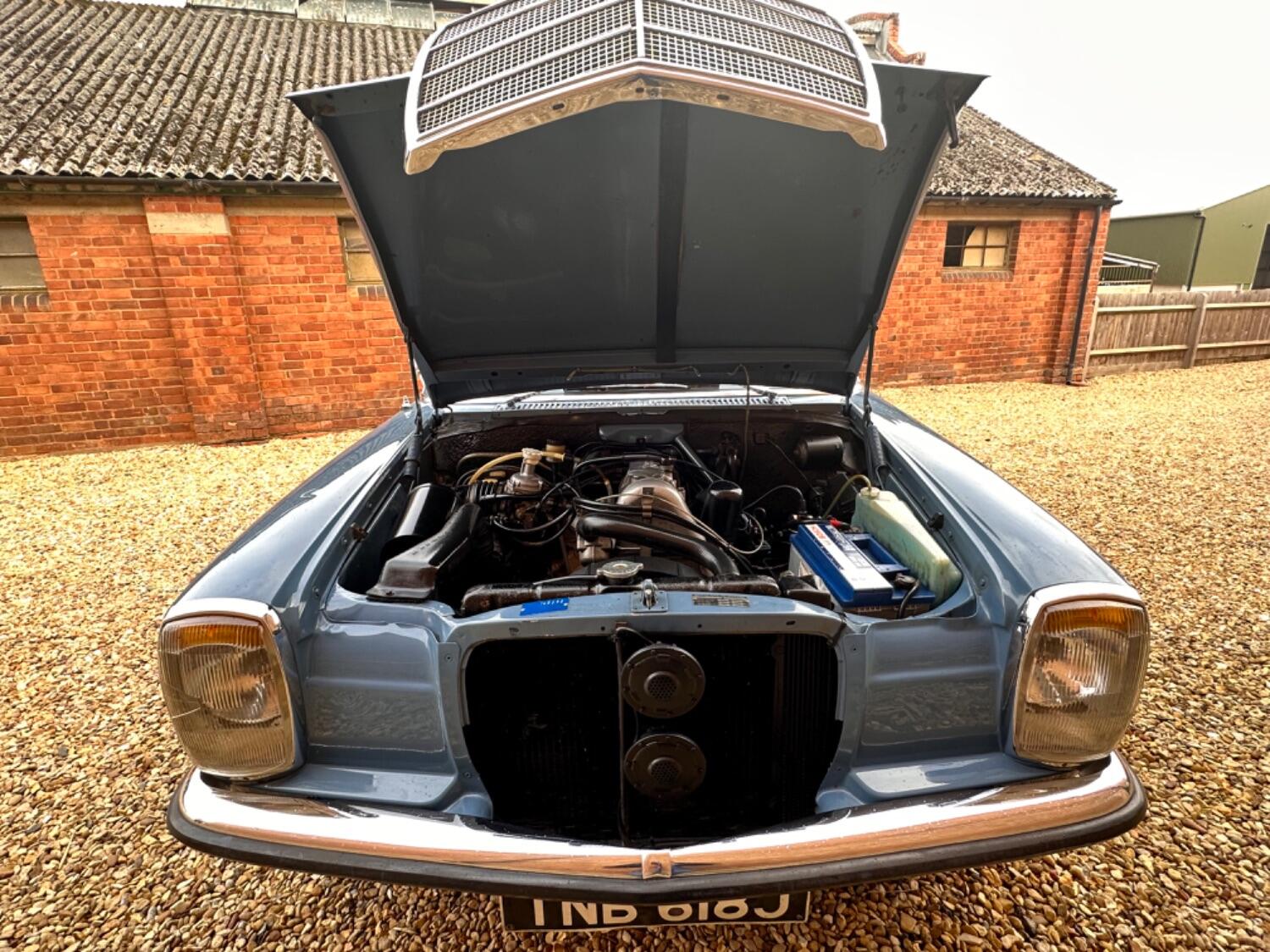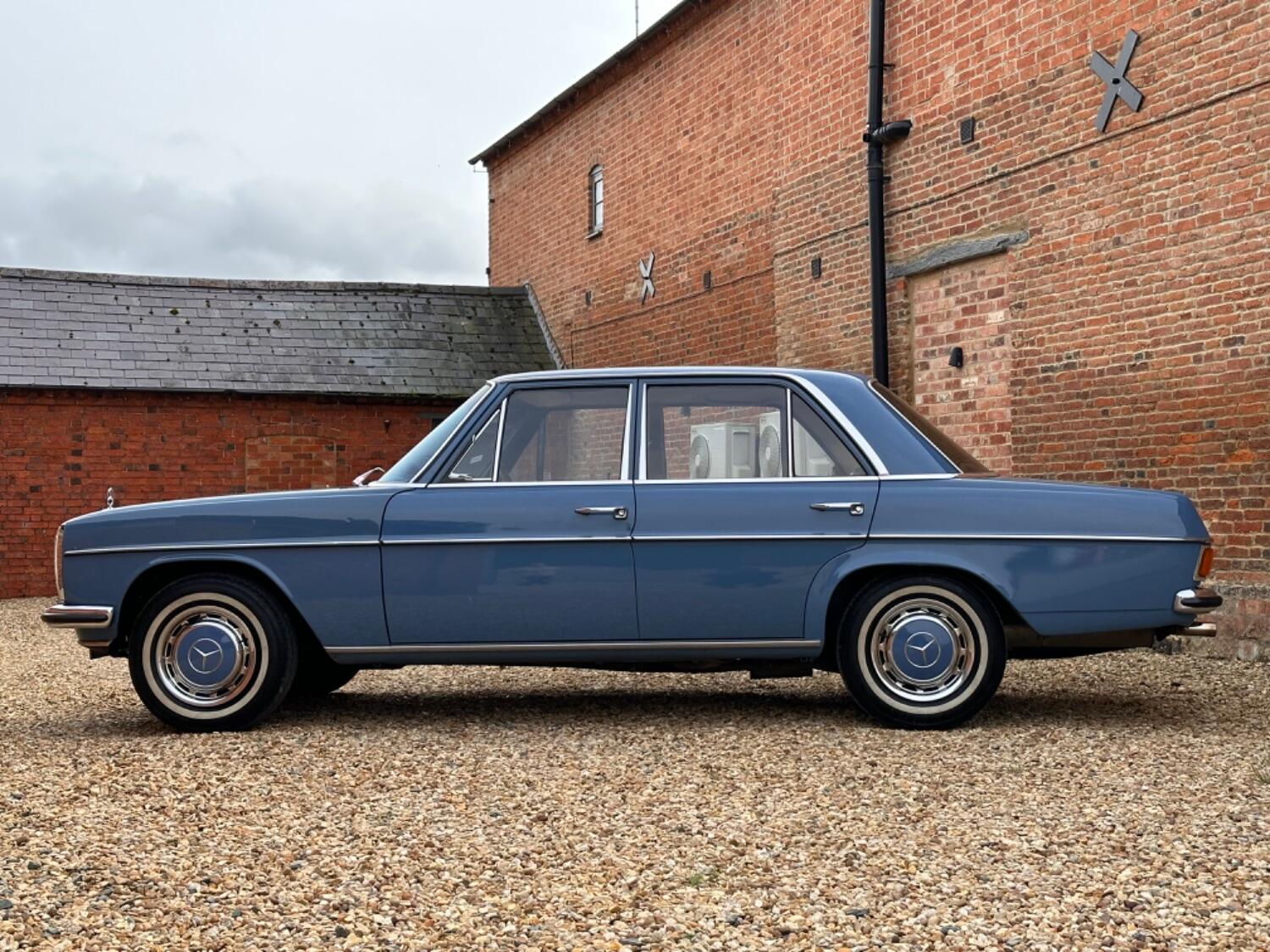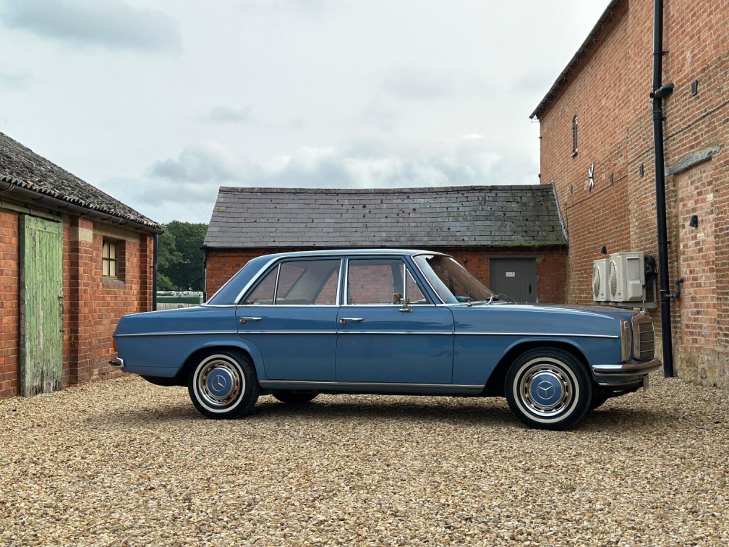 1971Mercedes 220 Manual Saloon. Blue (903) with Saddle Tex upholstery. The Paul Bracq-penned W114/W115 series of three-box Mercedes saloons and coupes was launched in 1968 and remained in production until it was replaced by the W123. The cars were offered with a choice of no less than 11 different engines ranging in size from a four-cylinder 2.0-litre petrol unit to 3.0-litre five-cylinder diesel one. A total of 1,919,056 examples of the mark were built over the nine years, 1,852,008 of which were saloons. Found to be robust and reliable, the model soon found favour with taxi drivers the world over and, displayed within its Stuttgart museum, Mercedes has a 1976 240D saloon that was formerly the property of a Greek tax driver who clocked up a total of 2.9million miles with the car. An iconic classic shape this lovely 220 has a desirable four-speed manual gearbox.It is an early pre-facelift model with the taller grill, Bakerlite steering wheel and smaller tail lights. This lovely Mercedes originates from South Africa and was supplied by Ronnie Motors in December 1970 and was bought to the U.K in 2016. The sunny climate definitely favoured the car and the chassis and body very solid and totally without rust due to this. The paintwork presents beautifully and the upholstery still retaining a strong colour. Brand new carpets have just been fitted and most recently new shock absorbers all around along with front and rear inertia seat belts. Mechanically the car is very strong, driving as you would expect and we know if looked after correctly these engines are pretty bombproof. Displaying just 88,000 Kms (55,000 miles) from new this is believed to be correct. A large history file accompanies the car which includes the original dealer wallet containing all manuals and handbooks as well as the all important service book with stamps as well as a hand written log which lists the mileage through the years, also included are bills and invoices showing lots of expenditure and old mot certificates as well as a verity rare original showroom brochure. Although now tax and mot exempt a fresh mot will be applied upon sale for your own peace of mind. Absolutely any inspection welcome. All major debit and credit cards accepted. Part exchange considered. Finance arranged. Free U.K mainland delivery. Please contact us for any further information. Lots more pictures and a video on our website and Facebook pages.