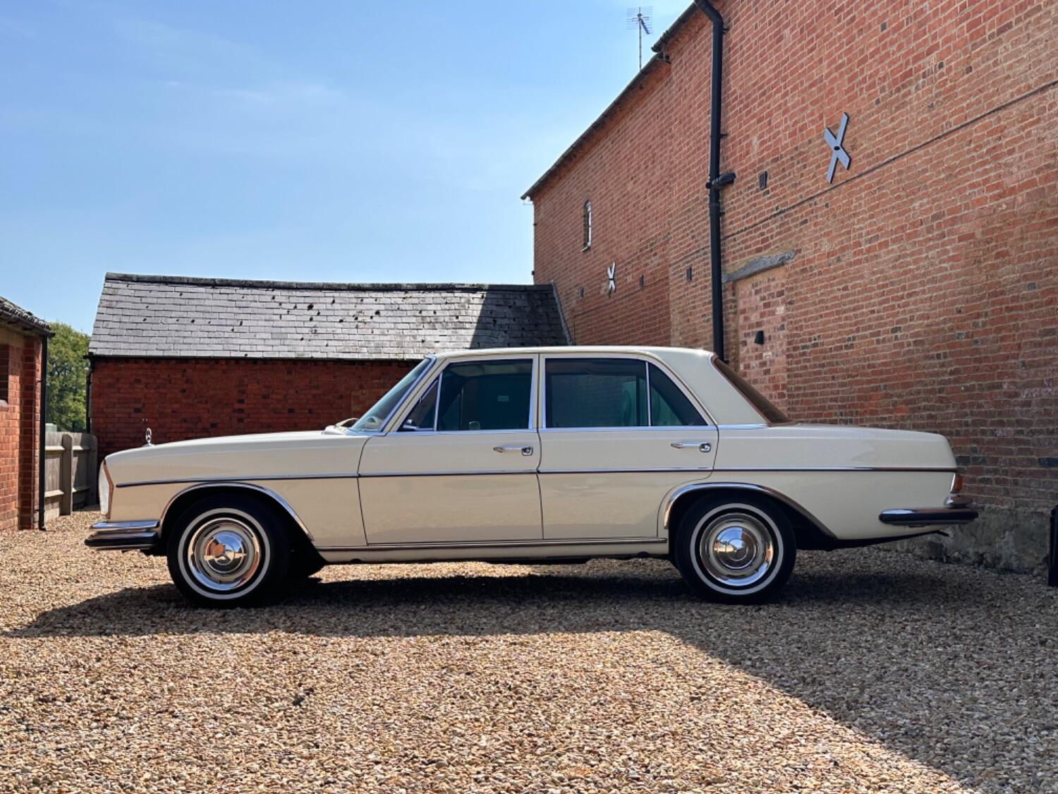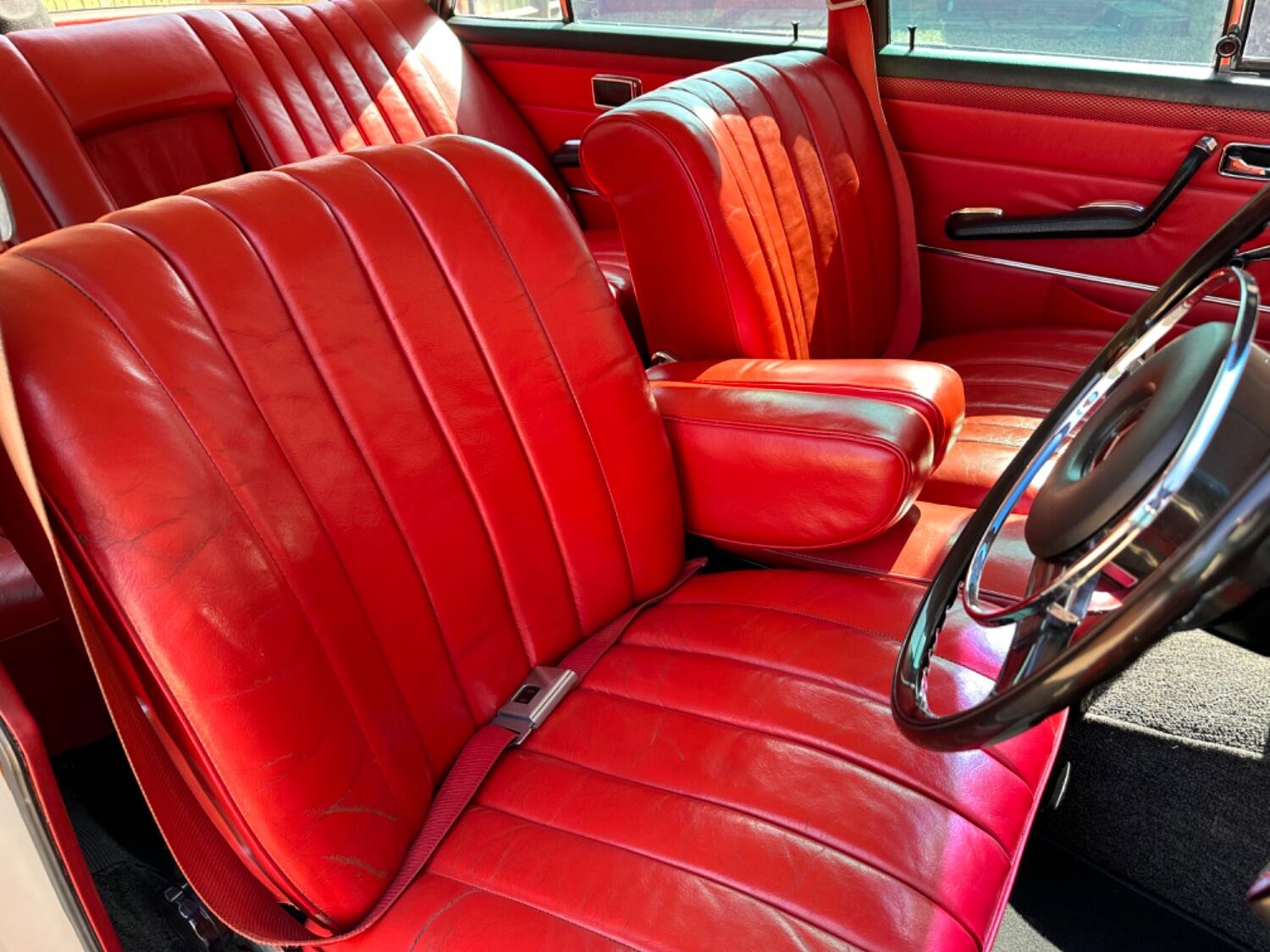 1969 Mercedes Benz W108 280S. Light Ivory with Red Leather upholstery. The Mercedes-Benz W108 and W109 were luxury cars produced by Mercedes-Benz from 1965 through to 1972. The line was an upgrade of the Mercedes-Benz W114/W115, to succeed the W111 and W112 fintail sedans. The cars were successful in West Germany and in export markets including North America and Southeast Asia. During the seven-year run, a total of 383,361 units were manufactured. Since the W108 and W109 were only available as 4-door models, similarly squarish 2-door W111 and W112 coupés and cabriolets, without pronounced tailfins, filled those niches and are frequently mistaken for W108/109 two-doors. This beautiful 280 started life in Johannesburg and was first registered on 9th October 1969 by J Visser. We are told he was a Pastor and was the only owner of the car in South Africa. The car was imported into the U.K in 2020 and is fully registered with all taxes paid and paperwork in the history file. It was taken to GM Enterprises Mercedes Specialist for a full service and any work required for the mot and registration process, work carried out included removing, stripping and rebuilding the carburettors, renewed seals, gaskets and accelerator pumps, replaced brake servo and master cylinder, remove and rebuild front calipers with new seals and fit new rear calipers. It presents beautifully today and is very original, it hasn’t even ever had a radio fitted. Coming from a dry country the car has never been welded and is totally solid throughout with no signs of any corrosion. The paintwork displays a lovely lustre and the rich leather upholstery has minimal wear, the chrome equally as impressive and certainly belies its age. Mechanically the car is very impressive, the six cylinder engine starts easily and runs just as smooth, the manual gearbox is quiet and precise operating with minimal effort and with factory power steering it is an absolute joy to drive. The original Mercedes dealer wallet still accompanies the car some 55 years later and includes a stamped service book, owners manual and a fabulous hand written log detailing maintenance carried out from the early seventies right up to 2016. A real head turner that wants for nothing and is just waiting to be enjoyed in new hands. A car that will grace any showground and be a welcomed addition to any collection . Although now tax and mot exempt a fresh mot will be applied upon sale for your own peace of mind. Absolutely any inspection is welcome. All major debit and credit cards accepted. Part exchange considered. Free U.K mainland delivery. Please contact us for any further information. Lots more pictures and a video on our website and Facebook page. Please register your interest early so to not be disappointed.