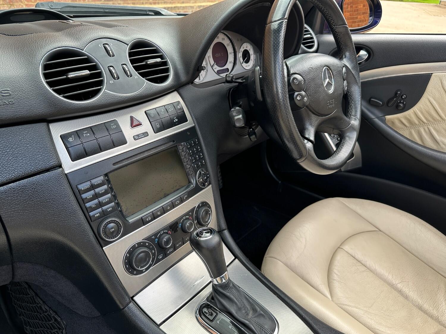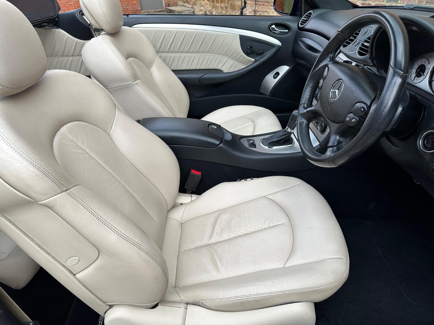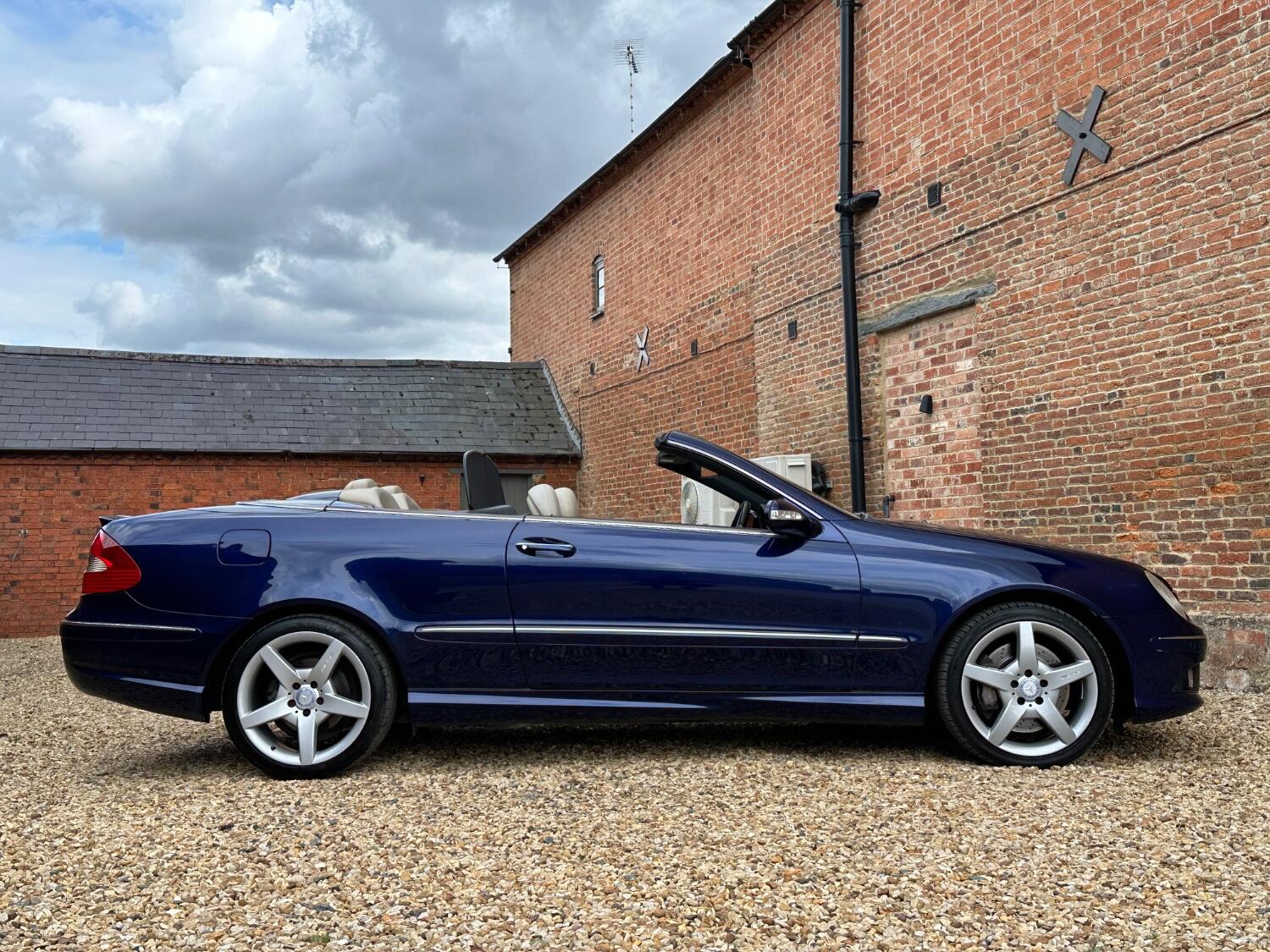 2007 Mercedes Benz 350 CLK AMG Sport Convertible. Designo Blue Metallic special order with Amaretta Nappa Leather upholstery and Navy soft top. A compelling choice for anyone looking for a blend of luxury, performance, and timeless design. This stunning CLK Sport presents beautifully and has a huge specification which includes the very desirable AMG Sports Package and 3.5 litre V6 engine which produces around 268 horsepower and is known for smooth power delivery. Paired with a 7-speed automatic transmission (7G-Tronic) – it shifts seamlessly and helps with fuel efficiency. 0-60 mph in around 6 seconds – brisk but refined. It has been cherished by it previous keeper and has covered just 89,000 miles from new. It has a fantastic history file containing a huge amount of bills, invoices and old mot certificates dating back to when the car was suppplied as well as a fully stamped service book by Mercedes dealers and specialists, book pack, all manuals and handbooks as well as two keys. The specification is also very impressive with a full printout of the factory build which includes Front electric adjustable heated multi contour seats. Inside and outside automatic mirror dipping. Memory package ( Drivers seat, steering column, mirror. ) Speed sensitive power steering. Parktronic system. Wind deflector. 7 Speed automatic transmission. Multifunction steering wheel with gearshift paddles. Tyre pressure monitoring. AMG Sports Package which includes a restyled front and rear bumper, side skirts, a spoiler lip on the boot, subtle aerodynamic enhancements and 18-inch AMG wheels. Sports suspension. Comand DVD APS with satellite navigation. Dual zone climate control. Headlamp wash. Dark blue fabric hood. Heated screen wash. With its very stylish image and excellent build quality along with a very engaging driving experience this car is a great all rounder and ticks every box. With an MOT until July 2026 it is now ready to be enjoyed in new hands. The CLK 350 with AMG styling is appreciated by enthusiasts who want a refined driving experience without stepping into full-AMG territory (like the CLK 55/63). Great for grand touring – it’s equally enjoyable on long motorway trips and twisty backroads. It’s a “modern classic” – simple enough to be DIY-friendly, refined enough to feel special. Absolutely any inspection is welcome. All major debit and credit cards accepted. Part exchange considered. U.K mainland delivery arranged. Please contact us for any further information. Lots more pictures and a video on our website and Facebook page.
