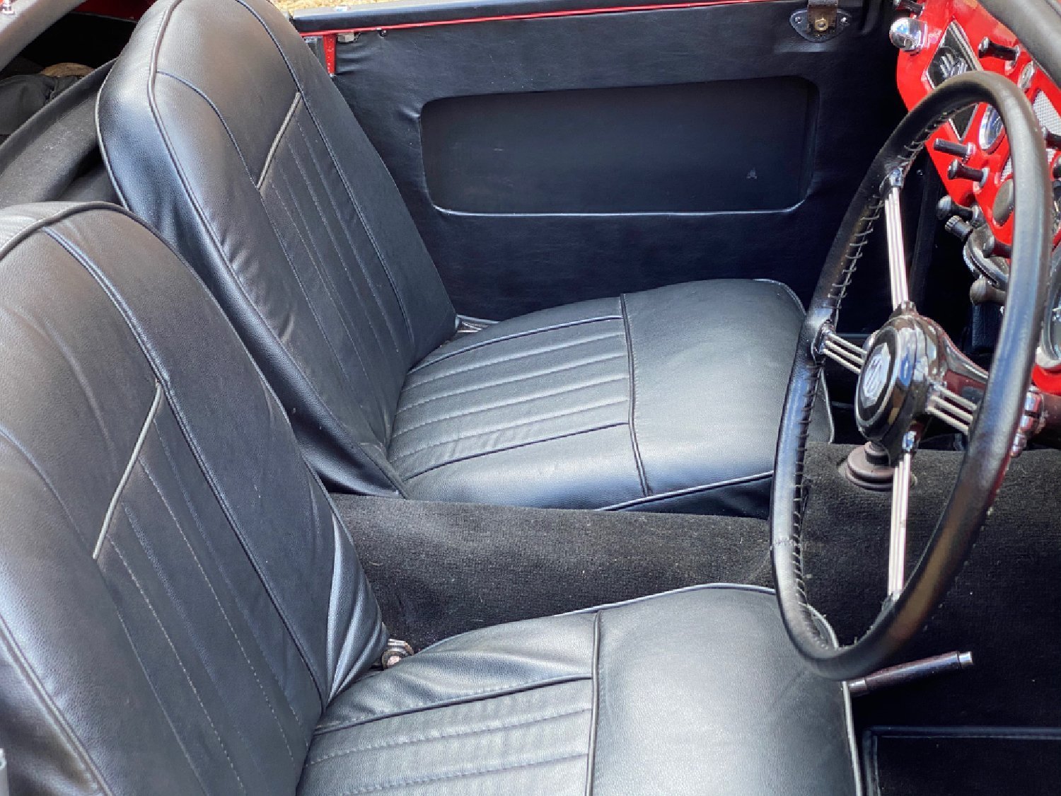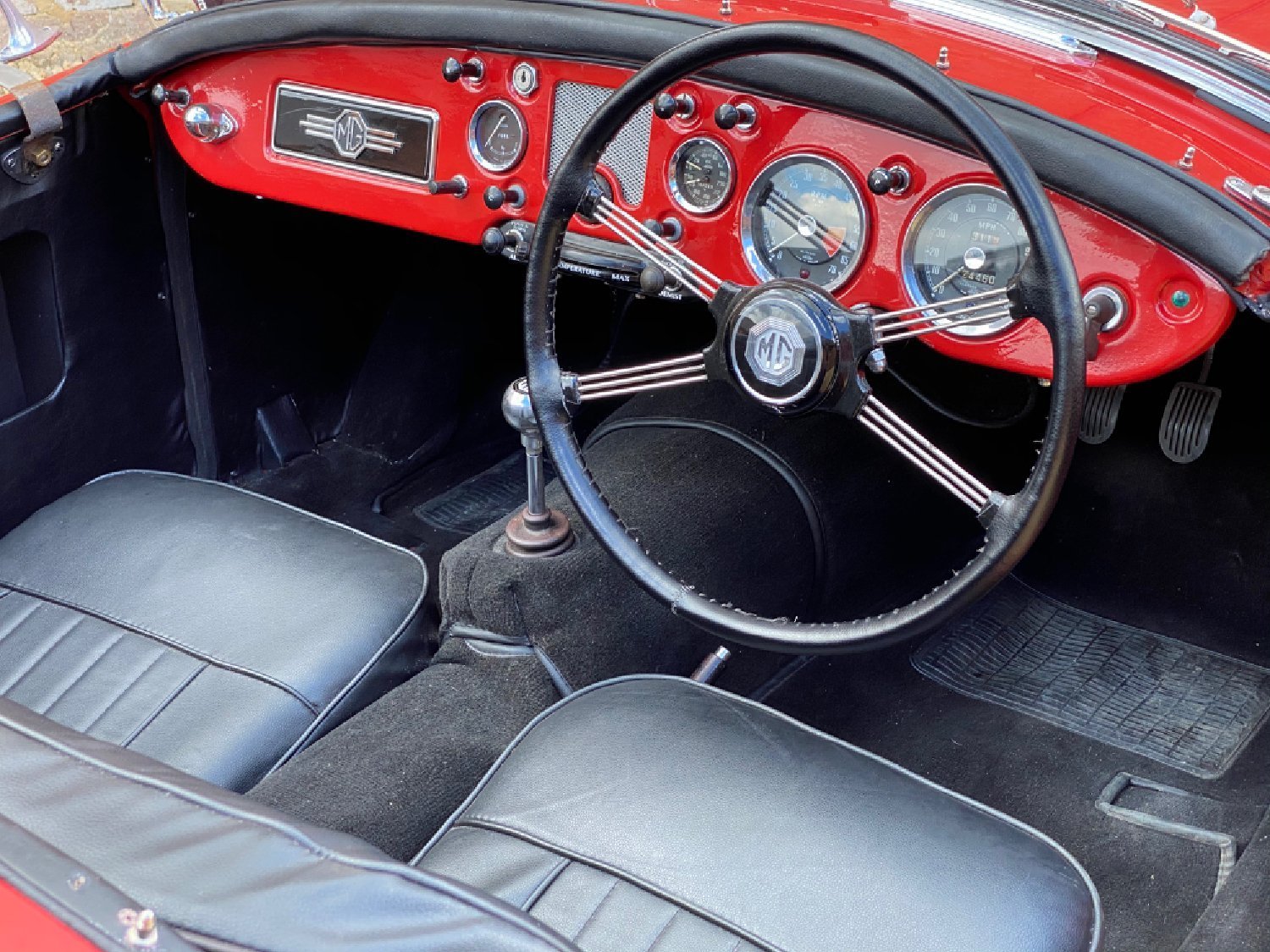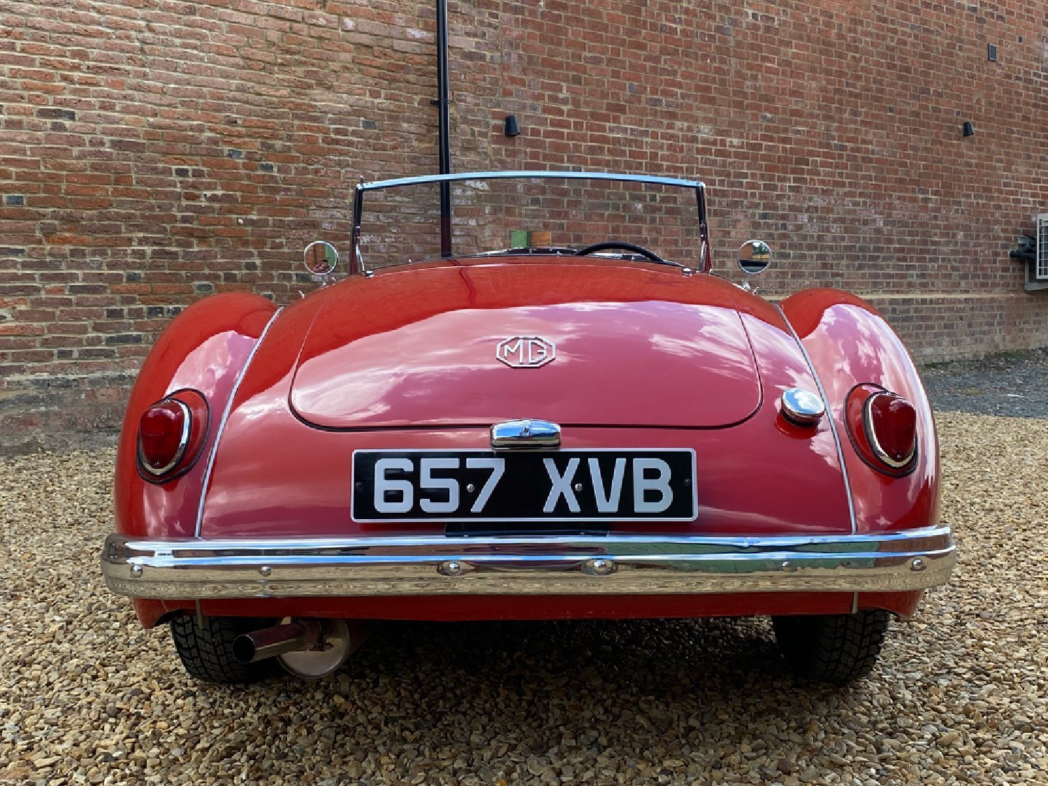 1957 MGA Roadster 1500 MK I. Orient red with black upholstery and black hood. This lovely matching numbers MGA was restored in 2018 with everything replaced or rebuilt. The history folder contains the Heritage Certificate that confirms this MG was built in 1956 and still is its factory colour. It had a bare metal repaint, new upholstery and a new hood. The engine was rebuilt and we have an invoice on file for parts supplied. The car has been kept totally original and it still has the factory jack in the boot. Running and driving very well with very good oil pressure it was a joy to take out around the local lanes. Although now mot and tax exempt we will apply a fresh mot upon sale for your own peace of mind. This car is ready to use and no expense required. Absolutely any inspection is welcome. All major debit and credit cards accepted. Part exchange considered. Finance arranged. Free U.K mainland delivery. Please contact us for any further information