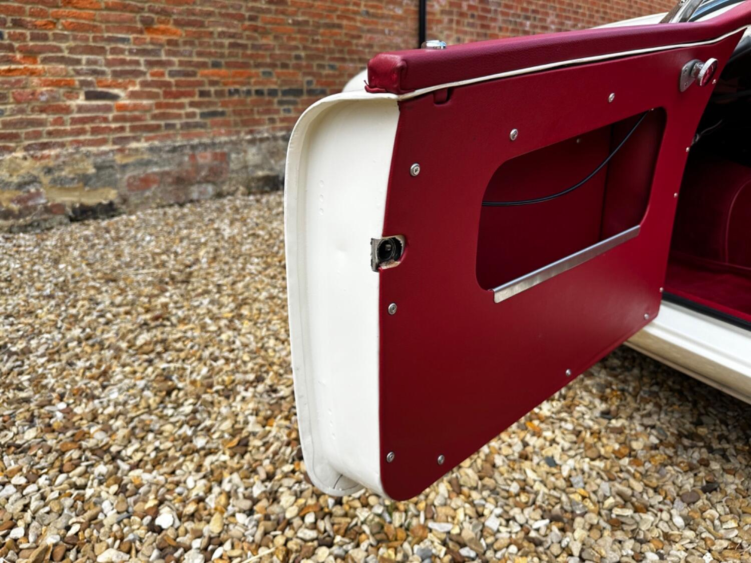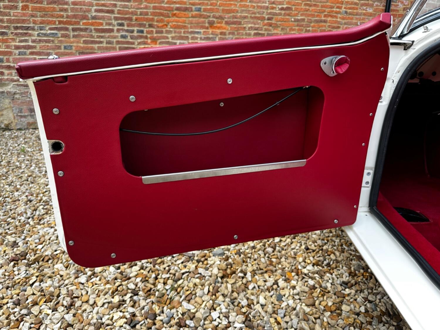 1959 MGA Twin Cam Roadster. Old English White with Red leather upholstery and hood. One of only 2,111 MGA Twin Cams produced Fully restored and converted to right-hand drive by the previous owner The cylinder head was machined and rebuilt by Oselli Very smart interior superbly trimmed in red leather Supplied with a UK V5c and Heritage certificate Intended as a replacement for the traditional 'T'-Series MGs, the MGA combined a rigid chassis with the Austin-designed, 1,489cc B-Series engine that had first appeared in the ZA Magnette. Running gear was based on that of the TF, with independent, coil-sprung wishbone front suspension and a live rear axle. Dressed in a curvaceous aerodynamic body and capable of topping 95mph, the MGA proved an instant hit, selling over 13,000 in its first full year of production. Immensely popular though it was, the MGA faced stiff competition from the larger-engined Triumph TR3 and Austin-Healey 100/6. Coaxing more power from the standard engine was becoming increasingly difficult, so MG concentrated on developing a twin-overhead-camshaft cylinder head for the B-Series block. Conceived at Cowley by BMC engineer Gerald Palmer and introduced in 1958, the new 1,588cc engine did not disappoint. It featured a special light alloy cross-flow cylinder head with hemispherical combustion chambers and carried twin overhead camshafts with valve operation via Coventry Climax-style inverted bucket tappets, producing an impressive 108bhp at 6,700rpm. Considerably faster than the standard MGA, the Twin Cam could comfortably exceed 110mph, and to cope with the increased performance Dunlop disc brakes were fitted all round and Dunlop centre-lock wheels were a distinctive addition. The only other visual identifier was the script 'Twin Cam' near the vent aside the bonnet. A high price and an unjustified reputation for unreliability discouraged sales, however, and the model was dropped after just two years. Production totalled 2,111 cars, a mere 360 of which were sold on the home market, and today the Twin Cam is one of the most sought-after of post-war MG sports cars. Offered from a private collection, this example is a 1959 MGA Twin Cam which was originally sold in the United States, finished in Old English White with a black interior, before returning to the UK from Beverly Hills, California in 2012. The car's owner prior, was a retired military engineer and he commenced a complete restoration separating the body from the chassis and removing all the components. At this point, it was decided to convert the MG to right-hand drive, a relatively simple process when everything is off the car. The engine received attention from Westwood Portway and Aston Martin specialists, Oselli, who worked on the cylinder head machining valve seats, fitting new valve guides and cam followers, in exchange for ú2,376. The car was then professionally painted in its original Old English White and superbly trimmed and fitted in red leather and there are invoices on file from Aldridge Trimming and The Don Trimming Company, Also in the owner's file are substantial bills for parts from Moss Europe, a series of photos documenting the restoration at its various stages, a UK V5c, the car's Heritage Certificate, and a fresh MoT. These rare cars are now recognised as real classics that drive very well and deservedly have a niche in the MG history book. This lovely example is now ready to begin the next chapter of its life. Absolutely any inspection welcome. All major debit and credit cards accepted. Part exchange considered. Free U.K mainland delivery. Please contact us for any further information. Lots more pictures and a video on our website and Facebook page.