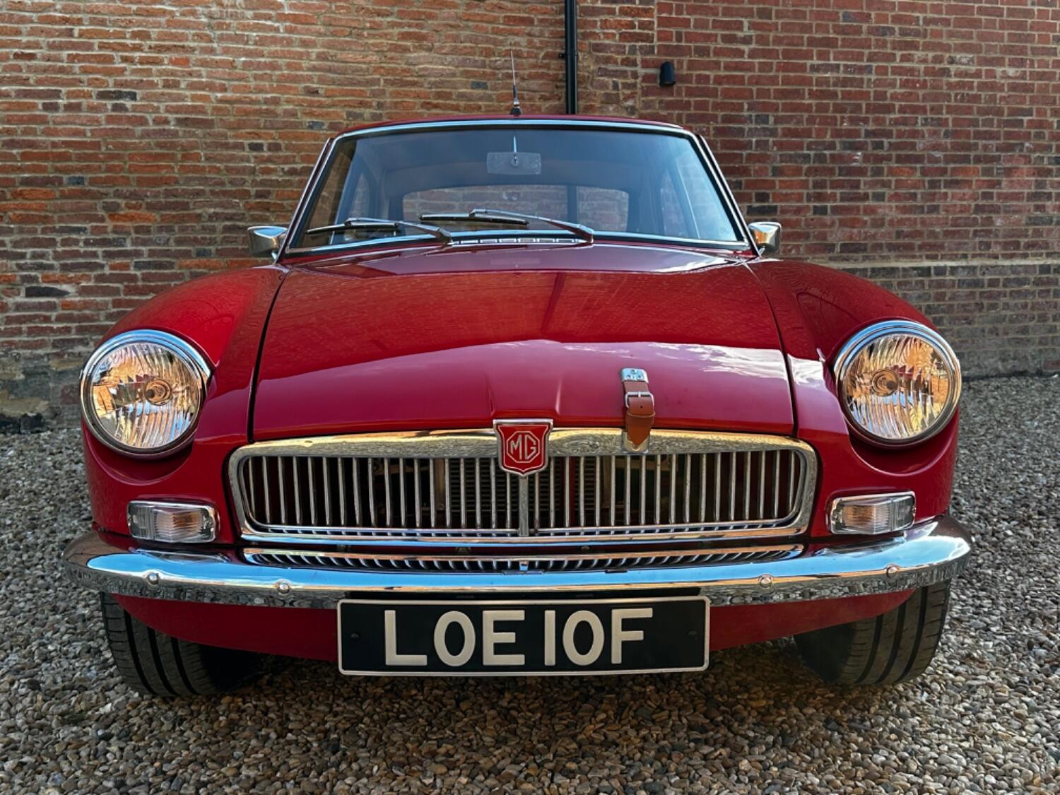 1967 MGB GT Manual Overdrive. Tartan Red with Black leather upholstery and red piping. Introduced in 1965 the MGB GT was one of the earliest examples of the now popular hatchback car and the large load platform for luggage made the GT a really useful two-seat touring car. Although the coupe bodywork made the GT much heavier than the Roadster, its shape actually helped the performance with improved aerodynamics and gave the GT a slightly higher top speed than the Roadster and also an improvement in handling. This beautiful GT has been cherished over the years and presents very well, lots of money has been spent over the years to keep the car in the condition it is today and most recently in 2022 was sent to Sherwood Restorations for various works at a cost of £8559.89 with the invoice on file, this included the fitment of new 15” chrome wire wheels including a spare, new chrome logo spinners and 5 x 185/65 15 Toyo tyres. Overall a great car which is lovely throughout, the interior is outstanding with a period Moto Lita steering wheel, retrimmed upholstery and fresh carpets. The paintwork is very bright and the chrome showing no signs of pitting and a detailed engine bay completes the overall look. The panels are straight and true with good shut lines and panel gaps. The underside and chassis are very solid with no signs of any corrosion. On the road the car is just as impressive, it starts on the button with correct oil pressure and a strong engine mated to a manual gearbox with overdrive operating correctly. It easily keeps up with modern traffic and turns heads. Accompanying the MG is a huge history folder dating back many years which includes bills, invoices and old mot certificates. Although now tax and mot exempt a fresh mot will be applied upon sale for your own peace of mind. This is a car that will grace any showground and would fit into any collection. Absolutely any inspection welcome. All major debit and credit cards accepted. Part exchange considered. Free U.K mainland delivery. Please contact us for any further information. Lots more pictures and a video on our website and Facebook page.