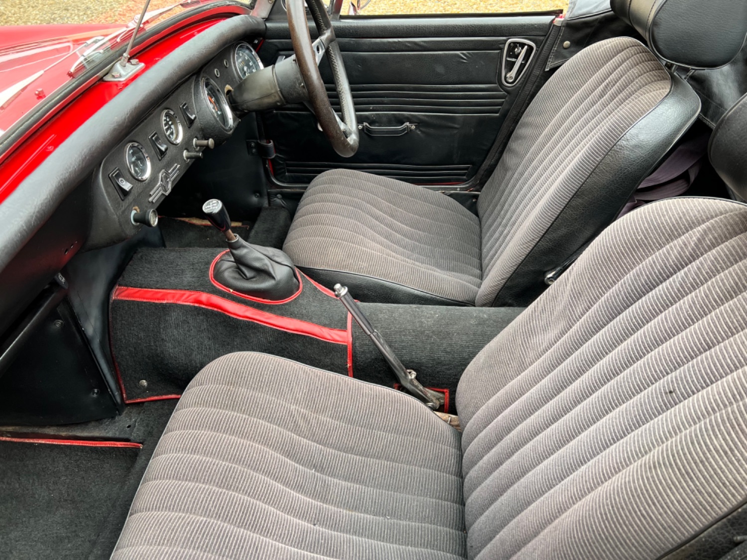 1974 MG Midget MK III 1275cc. Round Wheel Arch. Tartan red with grey cloth upholstery and a black hood and tonneau cover. This smart Midget was dispatched from the factory on 10th June 1974 to University Motors Limited of Hanwell London. It was registered to its first owner on 2nd September 1974. It has been with its most recent keeper for 9 years, and he purchased it from a lady who had owned the car 13 years previous to that. A desirable round wheel arch model that has been enjoyed throughout its life and still presenting very well today and has obviously been well cared for. The paint still displaying a good lustre and the trim free from any rips or tears and showing just minimal wear. Mechanically the car is very strong, starting on the button and driving well. The chassis is solid and although now mot and tax exempt a fresh mot will be applied upon sale for your own peace of mind as well as a 60 point health check at our independent workshop. This is an ideal starter classic if you are new to the classic / collector car scene. The MG owners club is one of the biggest in the world with a spares backup that is second to none. Absolutely any inspection is welcome. All major debit and credit cards accepted. Part exchange considered. Finance arranged. Free U.K mainland delivery. Please contact us for any further information.