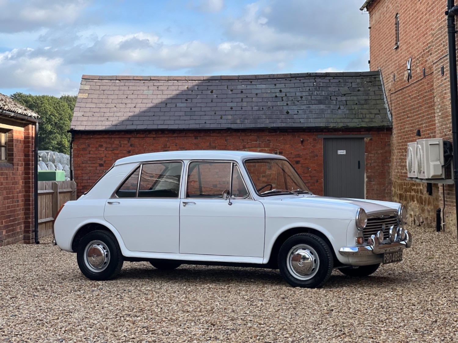 1969 Morris 1100 MK II. White with green upholstery. This charming Morris MK II was purchased as a rolling restoration by the last owner in 2018 and has been fully refreshed over the last three years. A summary of some of the works carried out include: Replace both front wings. Steering overhauled. Brake servo and master cylinder replaced. New battery and clamps. New exhaust system. New carpet set, New seat belts. Front windscreen and door rubbers. Rear bumper replaced. New badges. Front spotlights. Full body shop repaint. Full service to include plugs and leads, coil and condenser. The car is only available due to the last owners ill health and unfortunately he is unable to drive the car any more. Presenting very well and running and driving strongly this car is an ideal starter classic. The chassis is very solid and with a good body and interior is ready to enjoy. The mileage is displayed at 44,000 which the last owner believes to be correct however we cannot guarantee this due to the age of the car. Although now tax and mot exempt a fresh mot will be applied upon sale for your own peace of mind. Absolutely any inspection is welcome. All major debit and credit cards accepted. Part exchange considered. Finance arranged. Free U.K mainland delivery. Please contact us for any further information.
