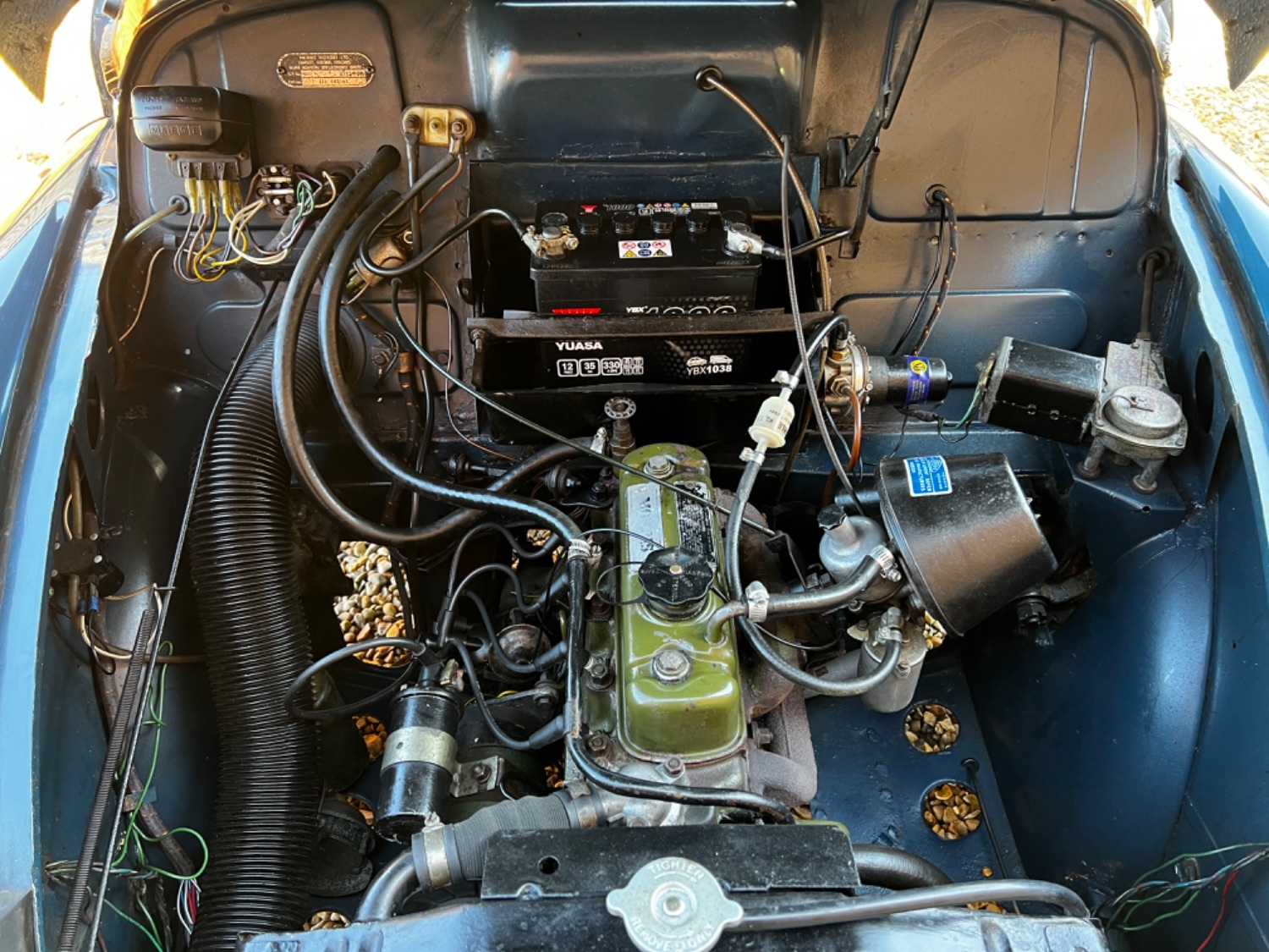1964 Morris Minor Convertible 1098cc. This genuine factory built Morris Minor 1000 Convertible finished in Trafalgar blue with Shadow blue interior & black Mohair hood was previously supplied by ourselves over three years ago and is now available due to a change to an MGB. This charming Moggy still retains its original registration number that was issued new in 1964. It was fully restored a number of years ago to very high standard when it was fitted with a upgraded reconditioned unleaded engine, four intertia reel seat belts and a new 'Mohair' hood, carpets & chrome. It retains this very high standard to date having been very well maintained including a brake overhall including brake drums, wheel cylinders, flexi brake hoses, brake linings, stainless steel exhaust & tyres etc. Although tax & Mot exempt a fresh mot will be applied for your own peace of mind. The paintwork has a lovely lustre and great finish along with a very good interior, hood & frame. The underside is exceptional retaining strong floor pans & jacking points etc & has been Waxoyl protected. We have a history file containing the original green log book showing the original chassis & registration number, previous Mot's, tax discs, receipts & restoration photographs. The car starts on the button and drives very well indeed with a really tight feel to it unlike many and has only covered 20,000 miles since restoration. This is a lovely example that would grace any classic car show or collection. Absolutely any inspection is welcome. All major debit and credit cards accepted. Part exchange considered. Finance arranged. Free U.K mainland delivery. Please contact us for any further information. Lots more pictures and a video on our website and Facebook pages.