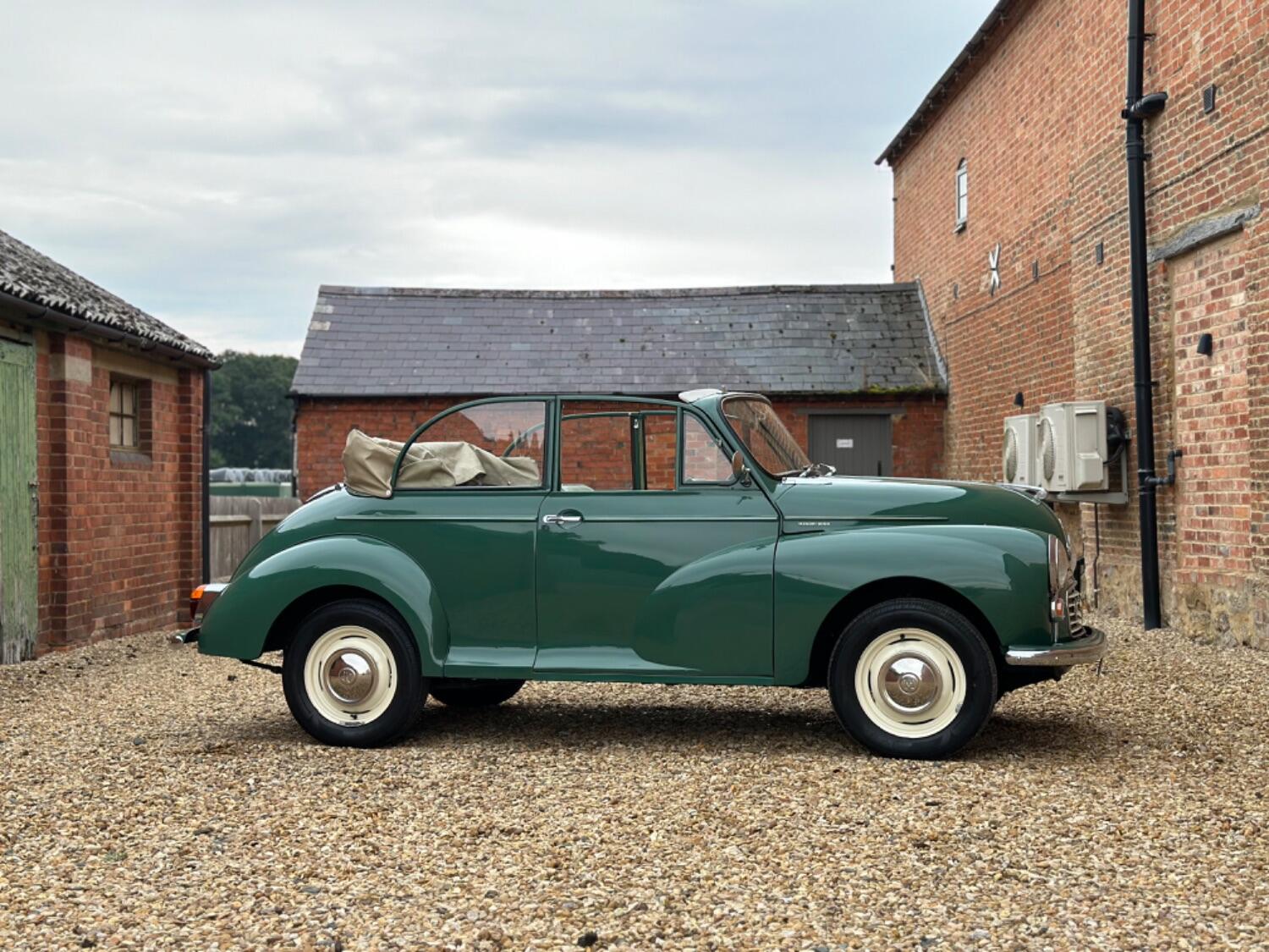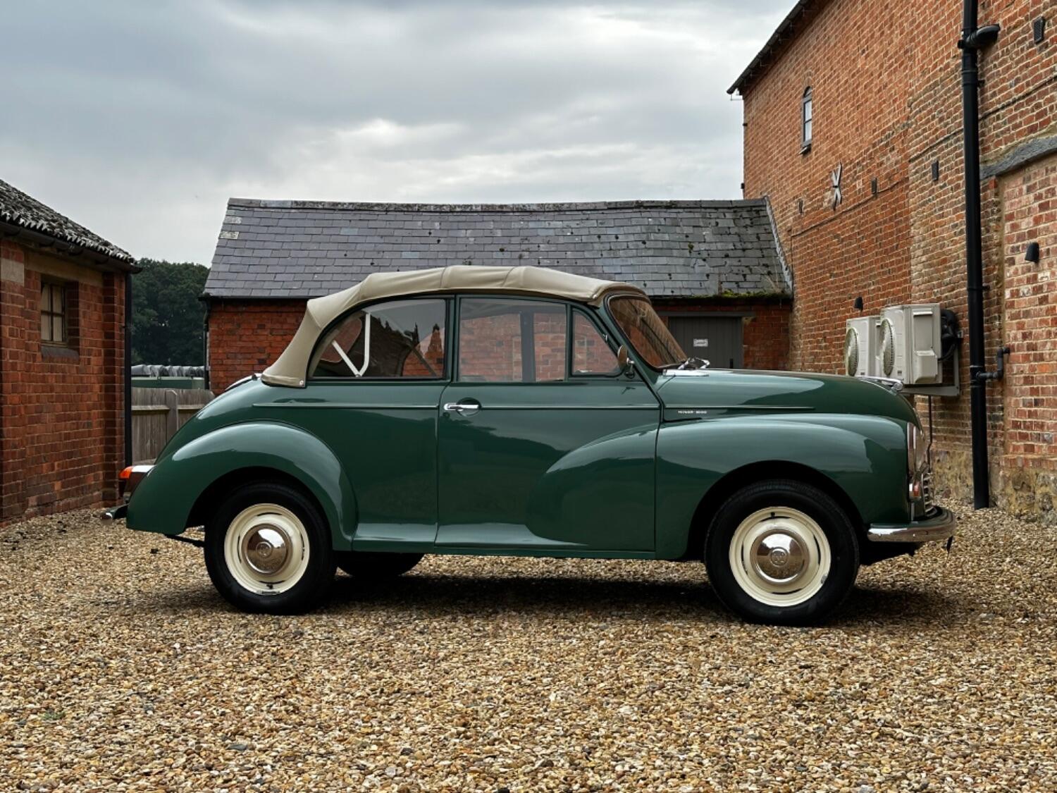 1968 Morris Minor 1000 Convertible. Almond Green with Green Ambla upholstery and Beige hood. This outstanding Morris has been with its last owner for 14 years who garaged the car using it only for local shows and weekend dry runs & covered only 3000 miles. A post production convertible It was a complete nut and bolt rebuild a number of years ago to very high standard by renowned Minor specialist Minorite U.K Ltd of Leicester with their brass plaque still adorning the bulkhead. It still presents beautifully today and is a real credit to its last keeper and is just as good on the underside. Over the years it has had some subtle upgrades which include an unleaded conversion, a servo for improved brake performance and electronic ignition whilst still retaining its originality, most recently a new carburettor has been fitted. Running and driving just as you would expect with its trademark exhaust parp it doesn’t disappoint on certainly puts smiles on the faces of passers by. Although now tax and mot exempt a fresh mot will be applied upon sale for your own peace of mind. Absolutely any inspection welcome. All major debit and credit cards accepted. Part exchange considered. Free U.K mainland delivery. Please contact us for any further information. Lots more pictures and a video on our website and Facebook page.