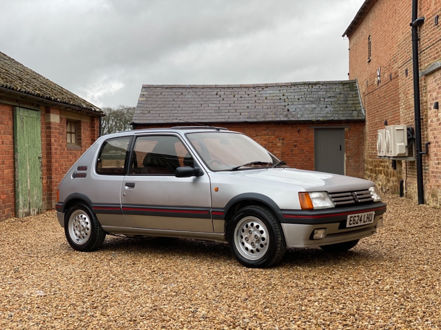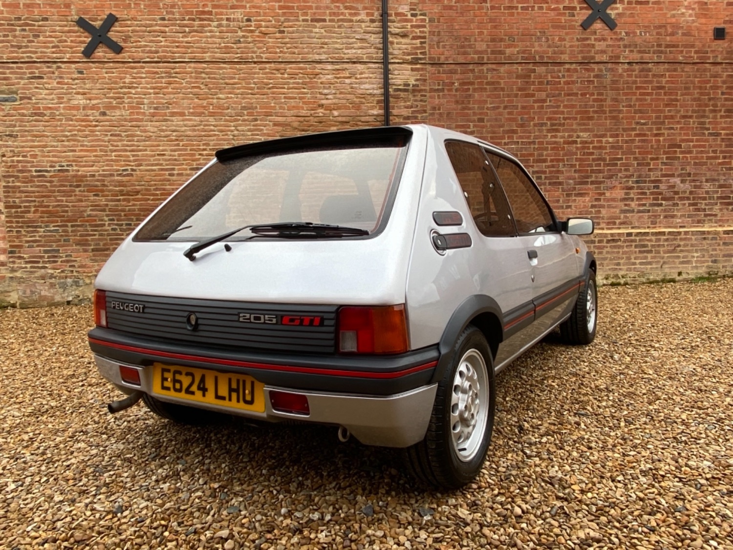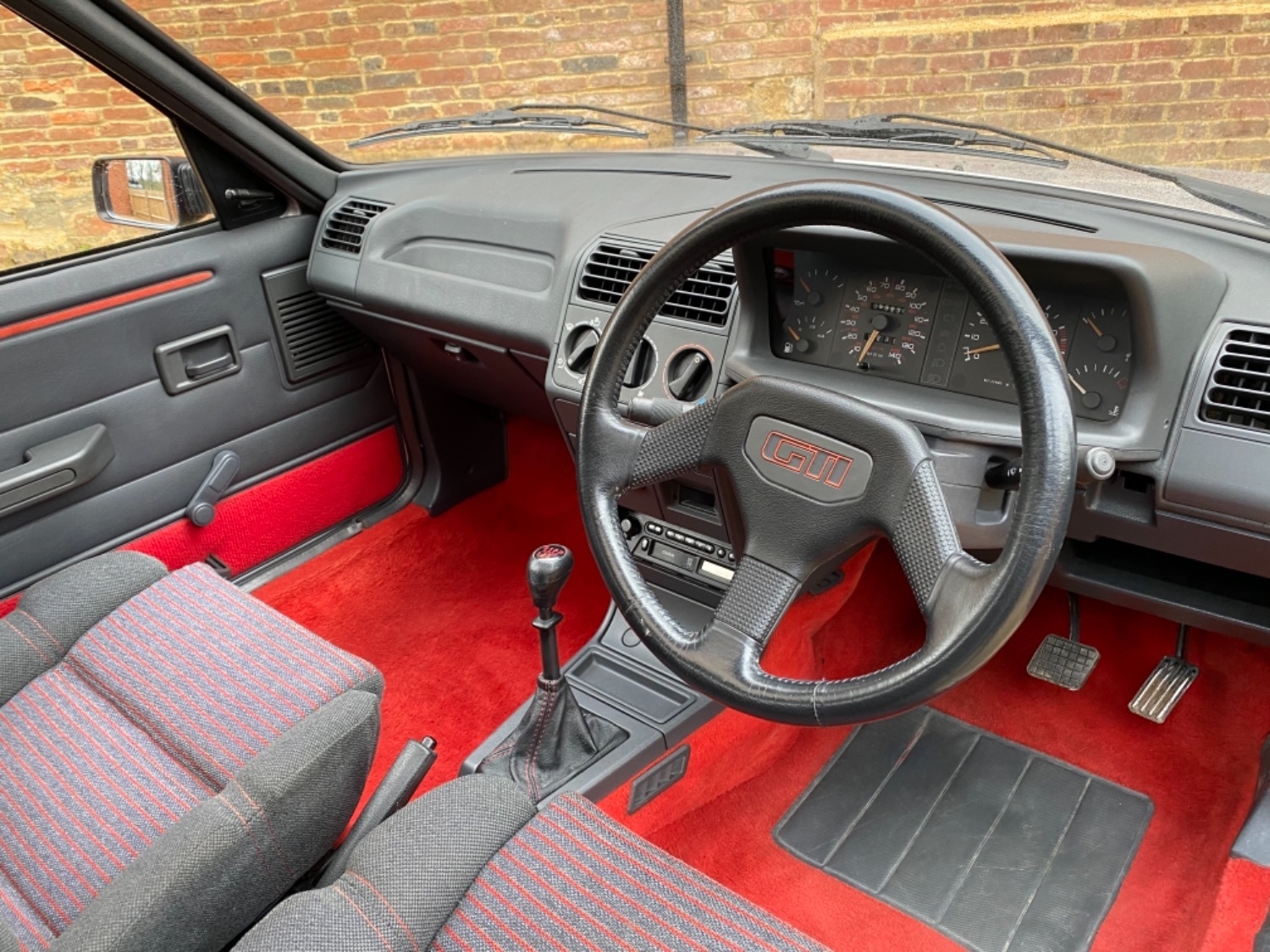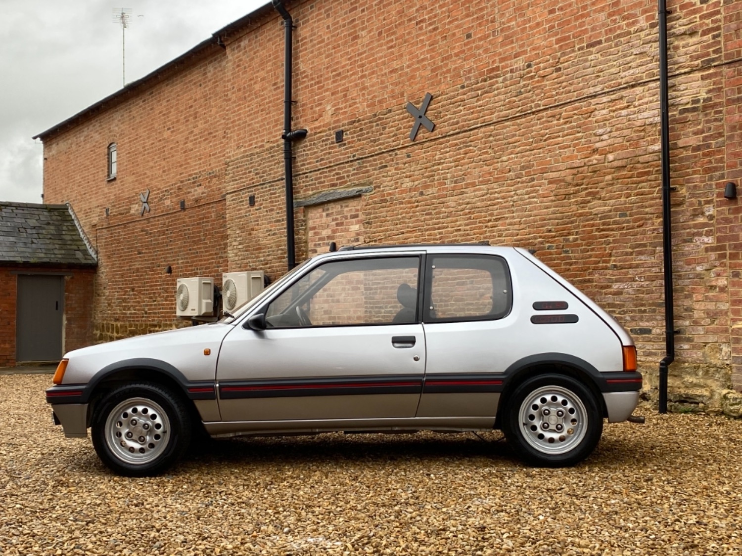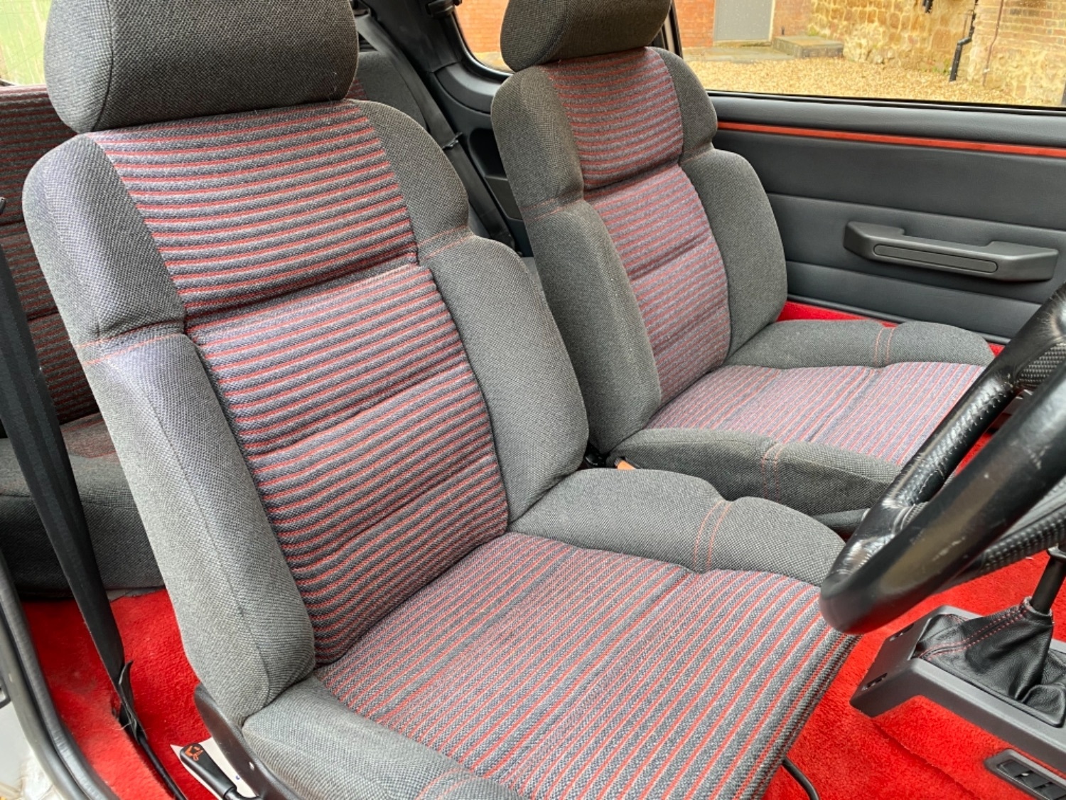 1988 Peugeot 205 GTI 1.6 Hatchback. Futura Grey metallic with grey and red upholstery. Only two previous owners from new and just 59,000 miles. Supplied new by Cathedral Peugeot of Bristol to Mr Krimpas on the 5th February 1998. Mr Krimpas kept the car in his family until February 2021 with only him and his wife in the V5 with the original log books in the history file. This amazing low mileage GTI still retains its original dealer handbooks and a fantastic history folder dating back to 1988. The original service book is present and containing several stamps and the largest selection of service invoices and mot certificates that we have possibly seen detailing the complete life of the car and every penny ever spent. Most recently over £2000 was spent in 2020 on a service, cam belt kit and new four new Dunlop tyres. The 205 runs and drives just as you would expect for a car that has been lavished with such care, and more importantly is a car that has not been restored, it is totally original and as it left the dealer thirty three years ago. Yes it has had some paintwork over the years but what car hasn’t and the seats have had the bolsters replaced where the foam always collapsed over time but so so genuine. We think this must be the lowest owner and mileage car available today with a history to match. Cars like this are not available everyday and we certainly think this is a sound investment. A car that takes you straight back to the eighties and still holds its own on the road today. Absolutely any questions answered. All major debit and credit accepted. Part exchange considered. Finance arranged. Free U.K mainland delivery. Please contact us for any further information. Lots more photographs on our website.