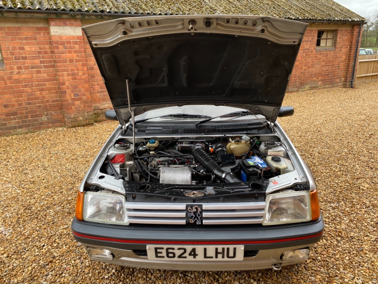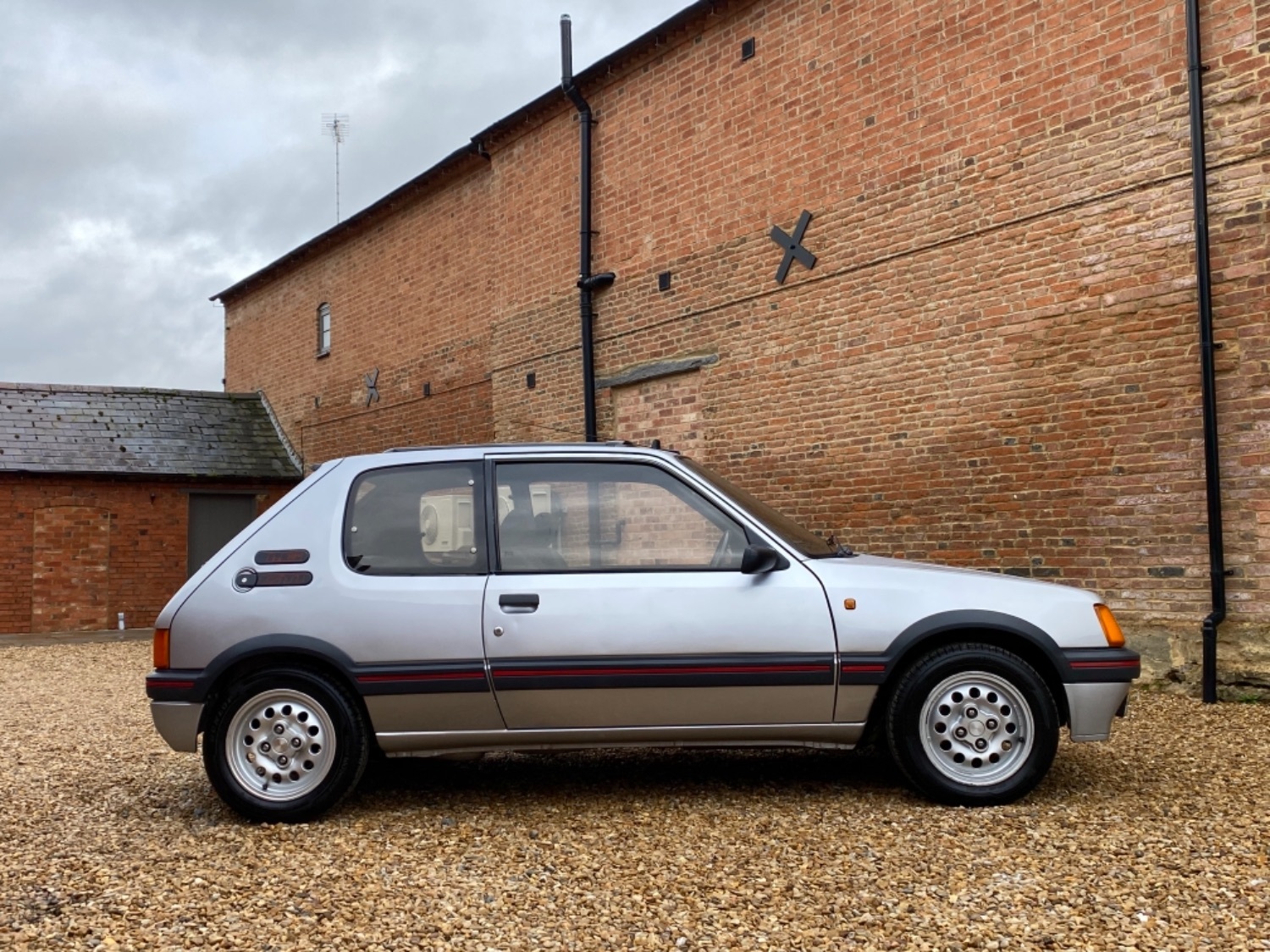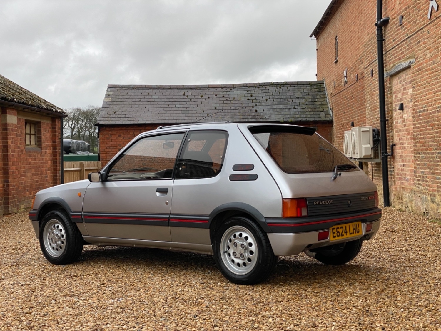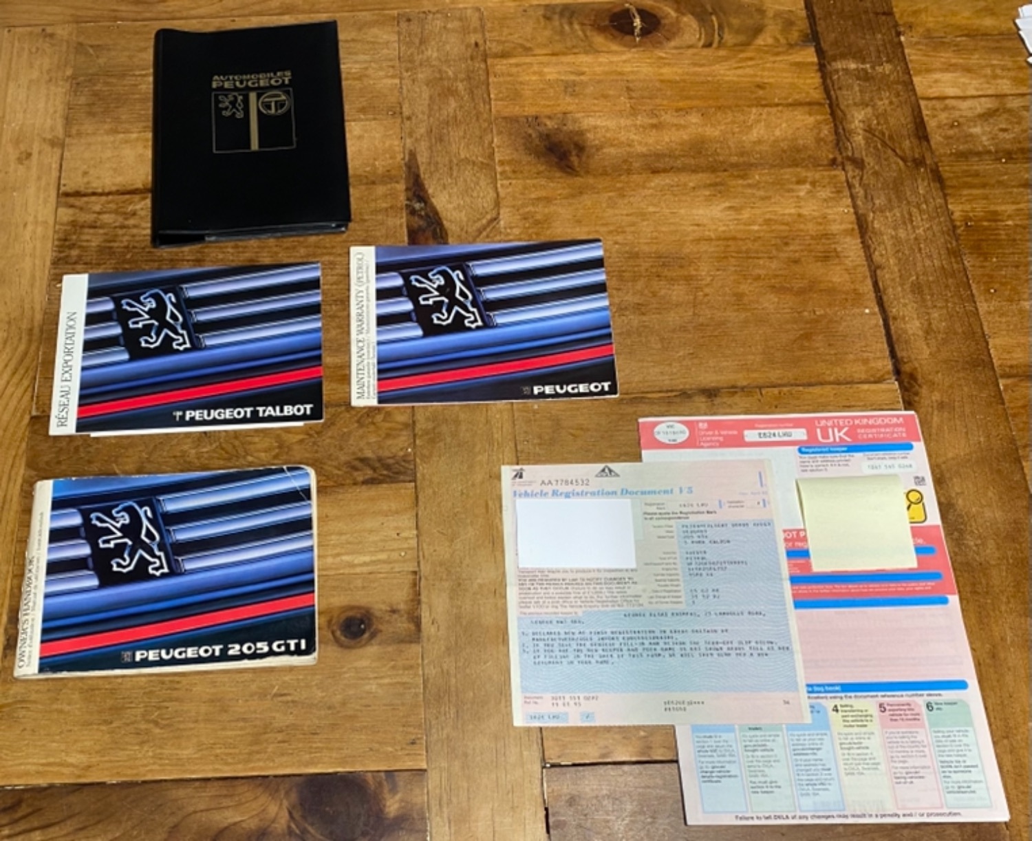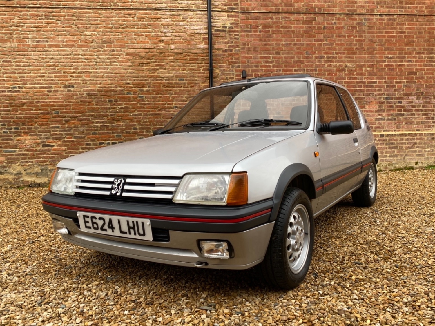 1988 Peugeot 205 GTI 1.6 Hatchback. Futura Grey metallic with grey and red upholstery. Only two previous owners from new and just 59,000 miles. Supplied new by Cathedral Peugeot of Bristol to Mr Krimpas on the 5th February 1998. Mr Krimpas kept the car in his family until February 2021 with only him and his wife in the V5 with the original log books in the history file. This amazing low mileage GTI still retains its original dealer handbooks and a fantastic history folder dating back to 1988. The original service book is present and containing several stamps and the largest selection of service invoices and mot certificates that we have possibly seen detailing the complete life of the car and every penny ever spent. Most recently over £2000 was spent in 2020 on a service, cam belt kit and new four new Dunlop tyres. The 205 runs and drives just as you would expect for a car that has been lavished with such care, and more importantly is a car that has not been restored, it is totally original and as it left the dealer thirty three years ago. Yes it has had some paintwork over the years but what car hasn’t and the seats have had the bolsters replaced where the foam always collapsed over time but so so genuine. We think this must be the lowest owner and mileage car available today with a history to match. Cars like this are not available everyday and we certainly think this is a sound investment. A car that takes you straight back to the eighties and still holds its own on the road today. Absolutely any questions answered. All major debit and credit accepted. Part exchange considered. Finance arranged. Free U.K mainland delivery. Please contact us for any further information. Lots more photographs on our website.
