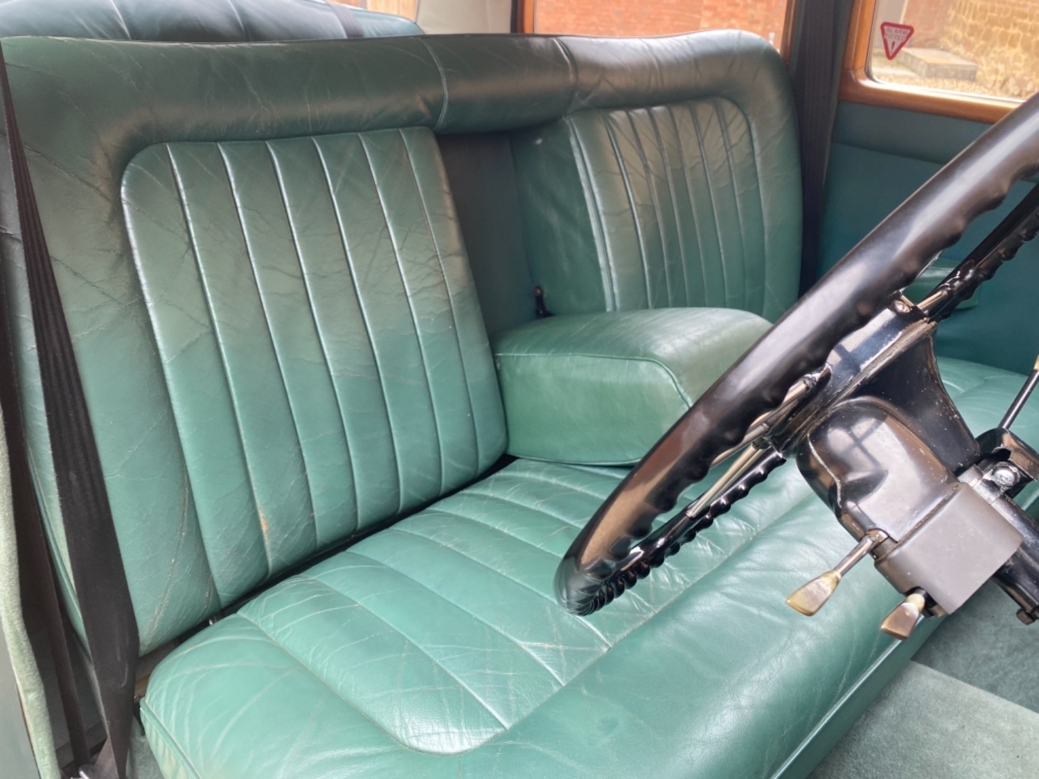 1964 Rover P4 95 2.6 Salon. Manual / Overdrive. Dual tone green with green leather upholstery. This lovely P4 has been lovingly cared for and has recently had lots of expenditure. This is a late model with the final P4 leaving the production line in May 1964. The paintwork is very bright with a great lustre and the upholstery is in great condition with lovely leather. There are no signs of any rust and the chassis is very solid without any corrosion. Mechanically the car is very well sorted, it starts on the button and drives extremely well with the power steering a huge plus point. The 2.6 engine is very smooth and when ticking over you’d be forgiven for thinking it had stopped as it is so quiet. The gearbox is very quiet and precise and with working overdrive. The original tool tray is still present and complete which is a rare sight. Subtle upgrades include rear parking sensors, yes you read that correctly, a discreetly hidden CD player and upgraded speakers. During the last few weeks the car has been to a classic Rover specialist and an invoice is on file for just shy of £500. Although now mot and tax exempt the Rover will have a fresh mot applied upon sale for your own peace of mind. Absolutely any inspection is welcome. All major debit and credit cards. Part exchange considered. Finance arranged. Free U.K mainland delivery. Please contact us for any further information.