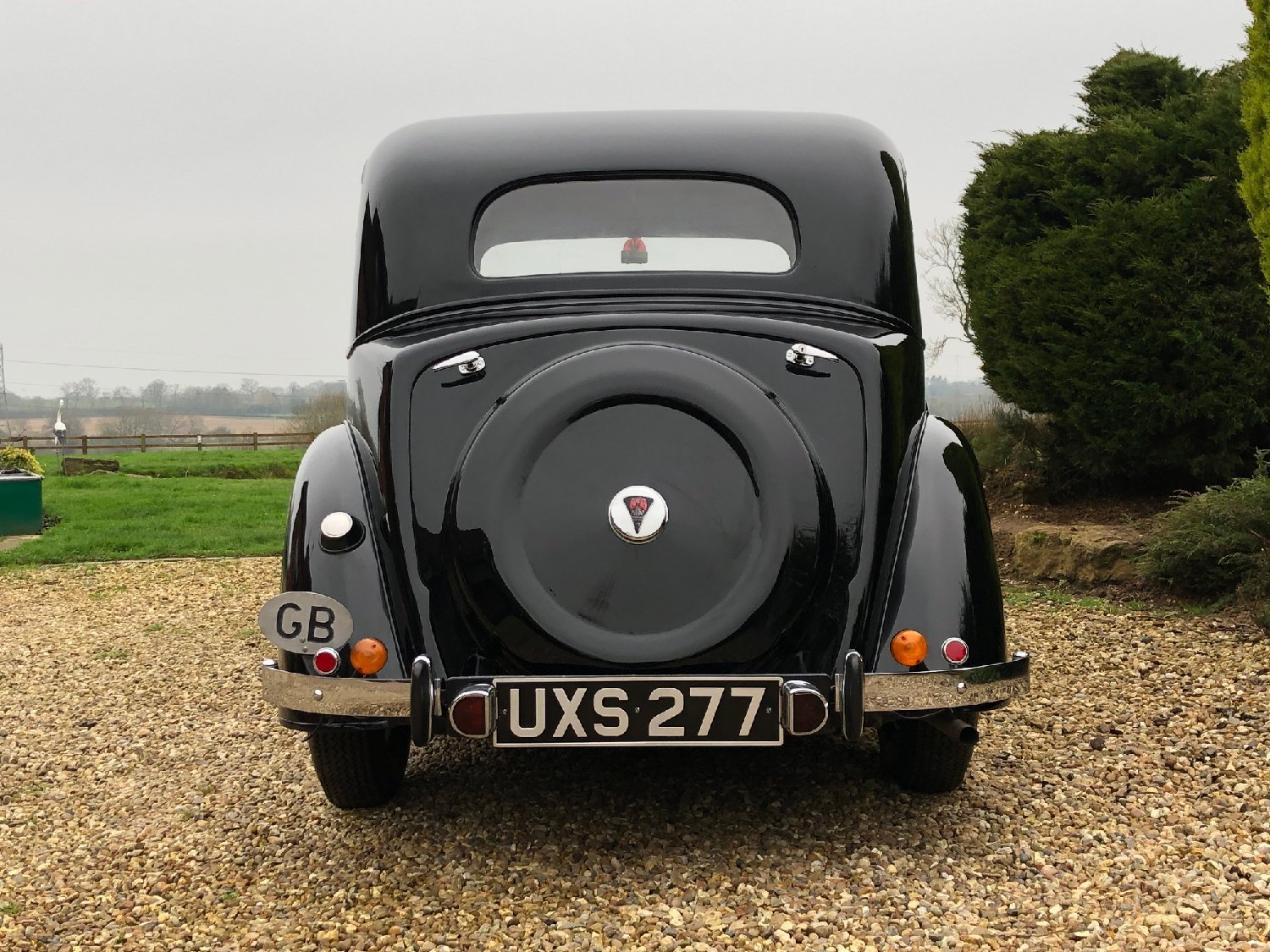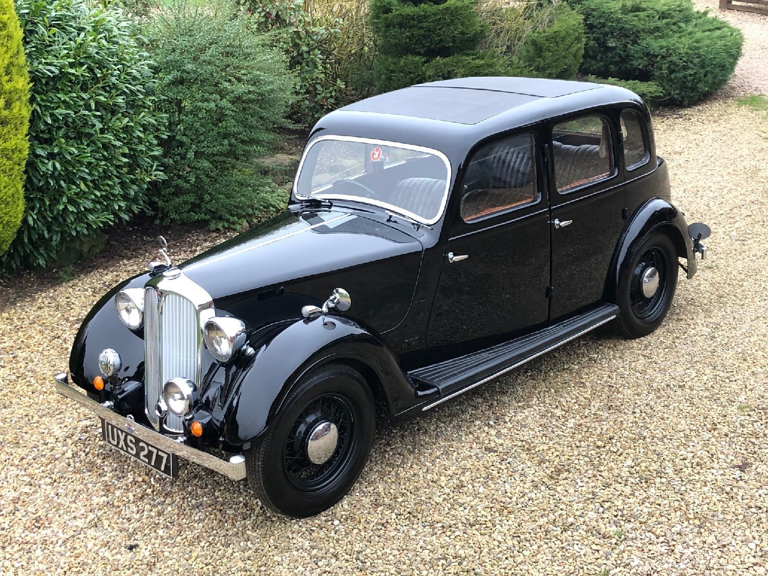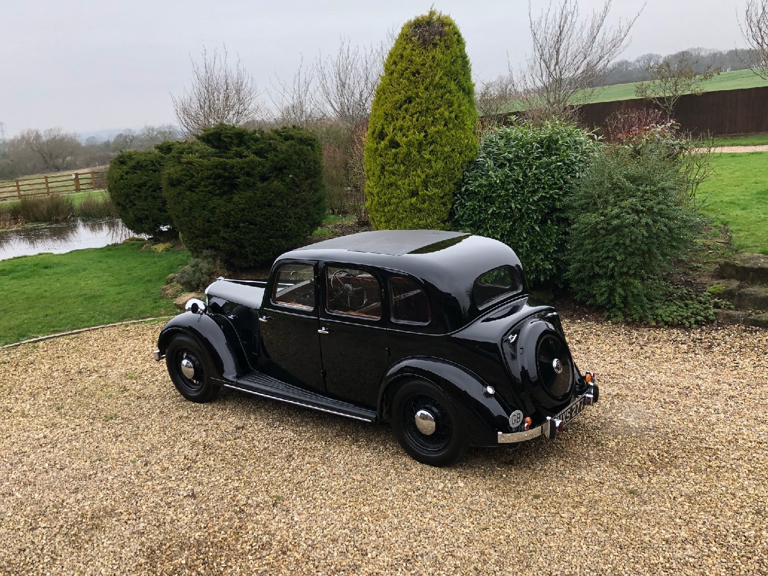 1937 Rover 12 P2 Saloon. This outstanding Rover is in the only colour combination available by Rover motor company in 1937 of black with brown leather interior. It had only one owner from 1942 to 1969 followed by the second right through to 2017. There is a huge extensive documented history file including the original buff log book, schedule of first free service, reams of service & repair invoices and photographs of the full restoration undertaken in 1990 to include engine overhaul with unleaded head, new wings, running boards, floor boards, carpets, sunroof and headlining. The car had a full repaint and was also re-wired and re-chromed, the radiator was re-cored & new period Waymaster tyres fitted. The car is still exceptional today with a gorgeous deep lustre to the coachwork, inside the leather upholstery, door cards, carpets & headlining are all in fantastic order. The panel fit, door shuts and gaps are just as they should be. The car has travelled less than 9000 miles in the last 29 years and importantly still retains many interesting period features including the 'Luvax- Bijou' chassis lubrication system, rear window blind, opening windscreen, wire wheels, semaphore trafficators, free wheel, & complete under dash tool tray. A beautiful car in every respect. On the road the Rover is a joy to drive for an 83 year old car with a strong engine and quiet gearbox and still turns heads wherever it goes. Now just waiting to be enjoyed in new hands this car would be the perfect companion to any collectors stable and adorn any classic car show. Absolutely any inspection is welcome. Part exchange possible. Free U.K mainland delivery.