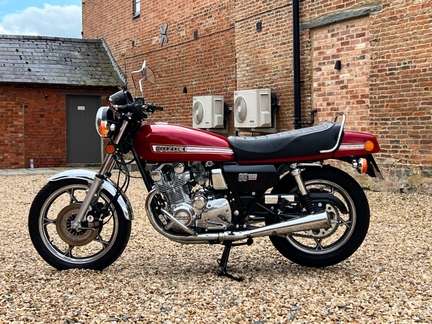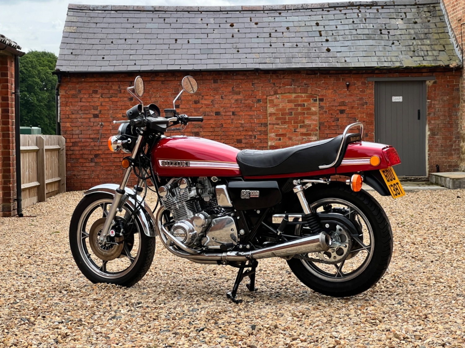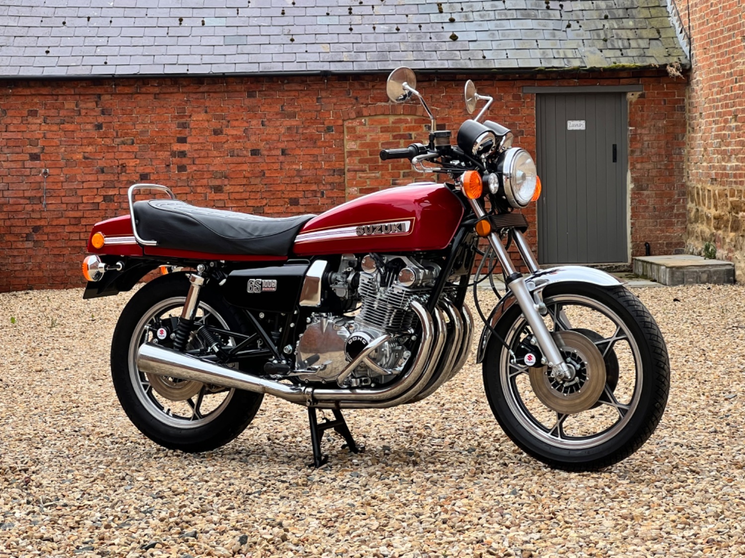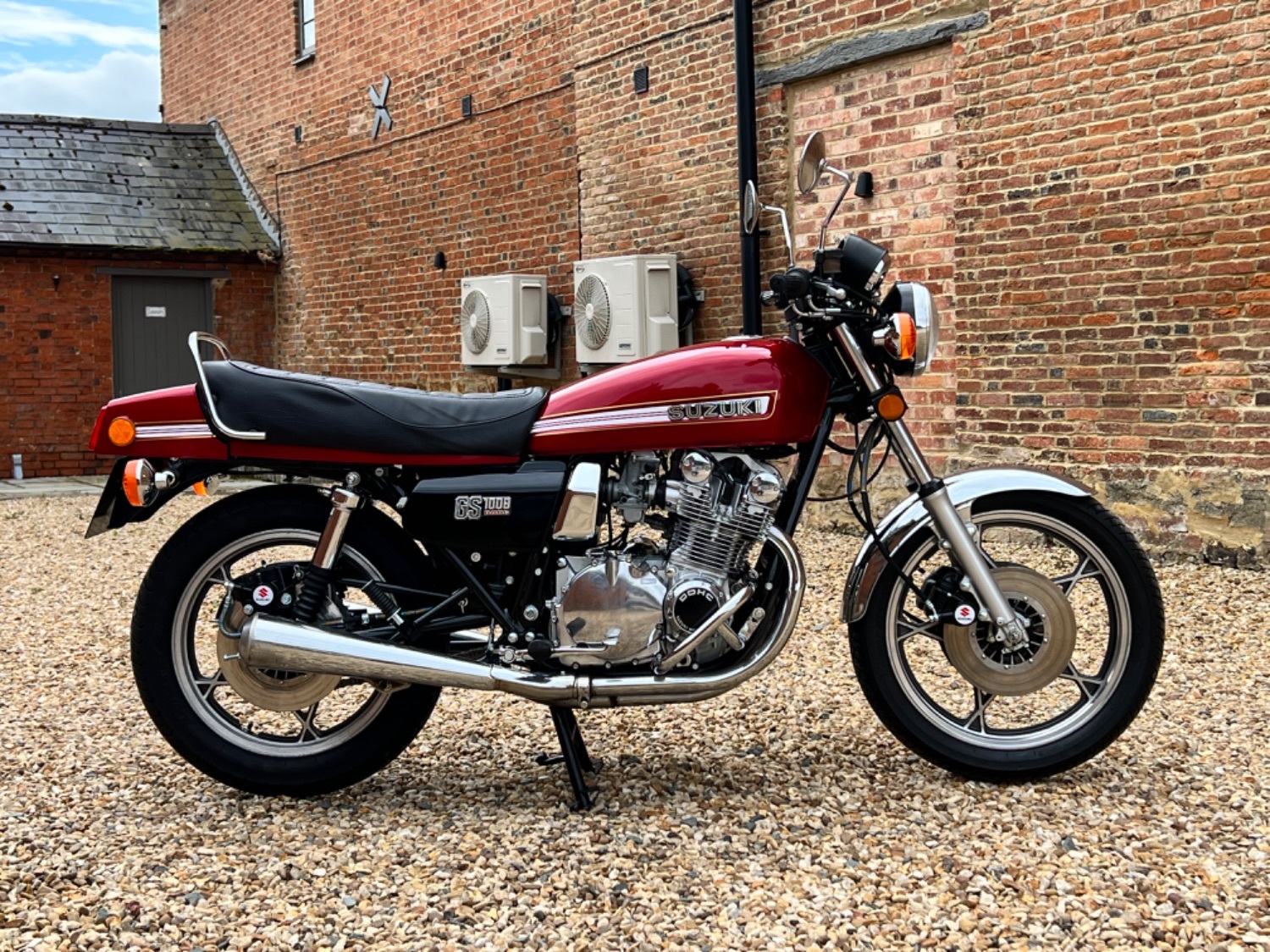 1978 Suzuki GS 1000. Red Metallic. The G and S in GS stands for Grand Sporting, and in the late 1970s Suzuki produced a number of machines bearing the GS moniker, varying in size from 400-1000cc. However, at that time, Suzuki was world-renowned for its production of two-stroke engines, and was busy winning world championships both on and off-road. So, while Barry Sheene was racing his RG500 to glory and Roger De Coster was winning the World Motocross Championship, Suzuki obtained a four-cylinder, two-valve, four-stroke engine from MV Agusta, and got to work. In fact, rumour has it a number of parts could fit to an MV engine. 1978 rolled around and the GS1000 was born, boasting a 997cc, inline four-cylinder engine, with DOHC and two valves per cylinder, putting out 88bhp at 8,500rpm and 60lbft of torque at 6,750rpm. On the street there became a number of variants that all used the same basic platform, including faired and unfaired, as well as custom version and shaft-driven models, too. But, like a lot of Suzuki’s in history, it was in racing that it really carved a reputation for itself. In 1978 the GS1000 was born and in just 50 days the legendary Pops Yoshimura tuned a GS1000 to victory in the 1978 Daytona Superbike race ridden by Steve McLaughlin, followed by victory at the prestigious Suzuka 8-Hour with the legendary Wes Cooley. Cooley would go on to win the 1979 and 1980 AMA titles, too. This stunning GS has come to us directly from a private collection and has been lovingly restored keeping the bike as totally original as possible. Running and riding very well this will fit straight in to any motorcycle collection. With 70’s Japanese bikes now rising rapidly in price added to the rarity of these wonderful machines we see this as a smart investment as well as a joy to own. Absolutely any inspection welcome. All major debit and credit cards accepted. Part exchange considered. Free U.K mainland delivery. Please contact us for any further information. Lots more pictures and a video on our website and Facebook page.