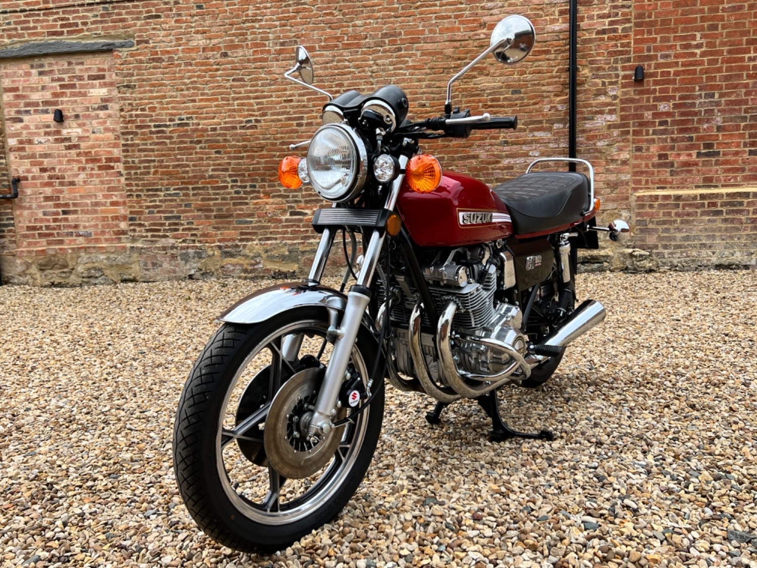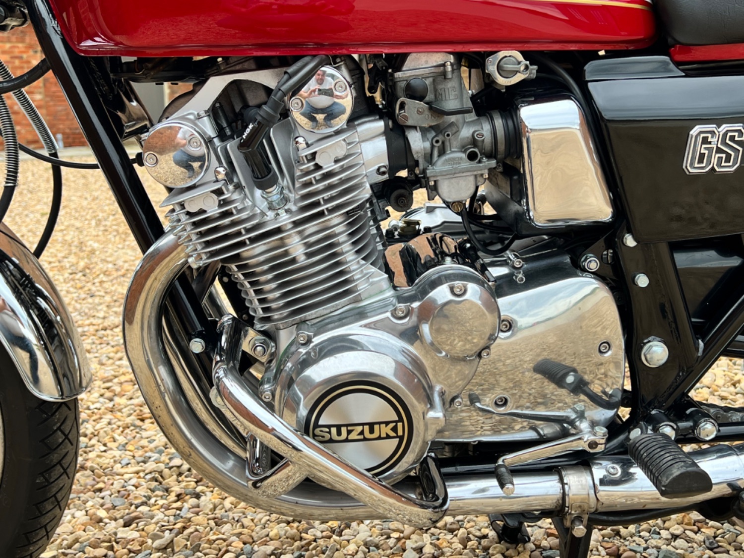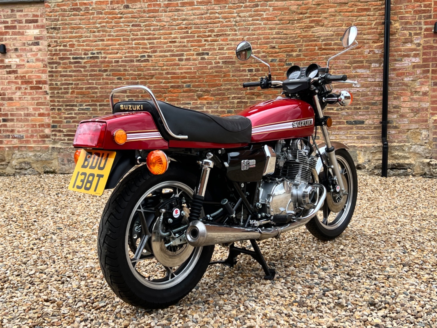 1978 Suzuki GS 1000. Red Metallic. The G and S in GS stands for Grand Sporting, and in the late 1970s Suzuki produced a number of machines bearing the GS moniker, varying in size from 400-1000cc. However, at that time, Suzuki was world-renowned for its production of two-stroke engines, and was busy winning world championships both on and off-road. So, while Barry Sheene was racing his RG500 to glory and Roger De Coster was winning the World Motocross Championship, Suzuki obtained a four-cylinder, two-valve, four-stroke engine from MV Agusta, and got to work. In fact, rumour has it a number of parts could fit to an MV engine. 1978 rolled around and the GS1000 was born, boasting a 997cc, inline four-cylinder engine, with DOHC and two valves per cylinder, putting out 88bhp at 8,500rpm and 60lbft of torque at 6,750rpm. On the street there became a number of variants that all used the same basic platform, including faired and unfaired, as well as custom version and shaft-driven models, too. But, like a lot of Suzuki’s in history, it was in racing that it really carved a reputation for itself. In 1978 the GS1000 was born and in just 50 days the legendary Pops Yoshimura tuned a GS1000 to victory in the 1978 Daytona Superbike race ridden by Steve McLaughlin, followed by victory at the prestigious Suzuka 8-Hour with the legendary Wes Cooley. Cooley would go on to win the 1979 and 1980 AMA titles, too. This stunning GS has come to us directly from a private collection and has been lovingly restored keeping the bike as totally original as possible. Running and riding very well this will fit straight in to any motorcycle collection. With 70’s Japanese bikes now rising rapidly in price added to the rarity of these wonderful machines we see this as a smart investment as well as a joy to own. Absolutely any inspection welcome. All major debit and credit cards accepted. Part exchange considered. Free U.K mainland delivery. Please contact us for any further information. Lots more pictures and a video on our website and Facebook page.