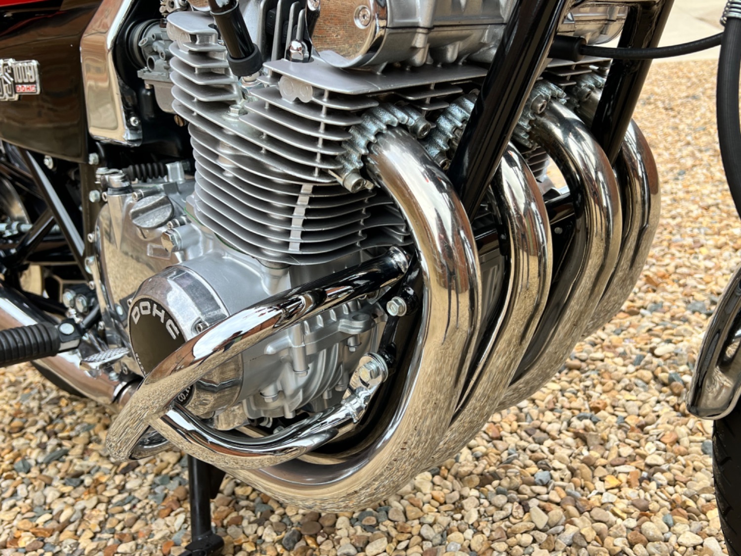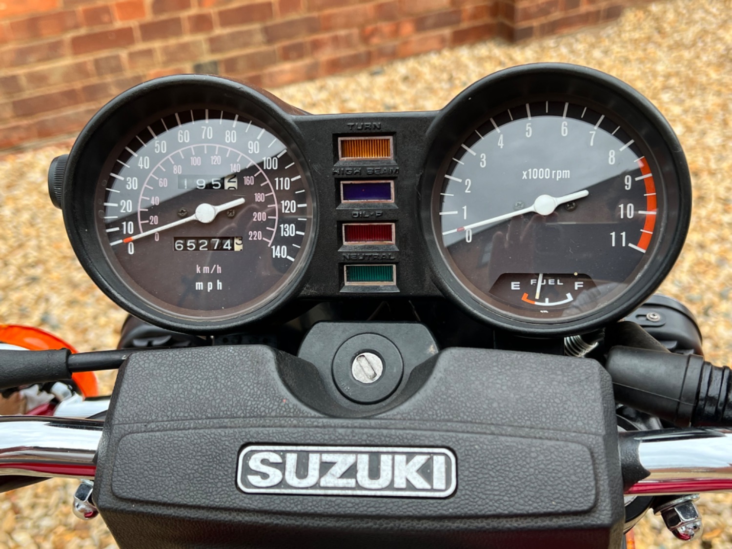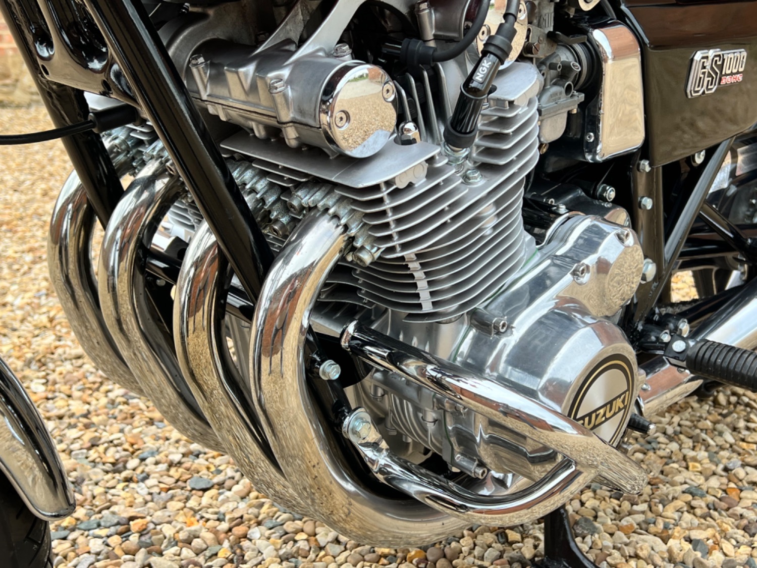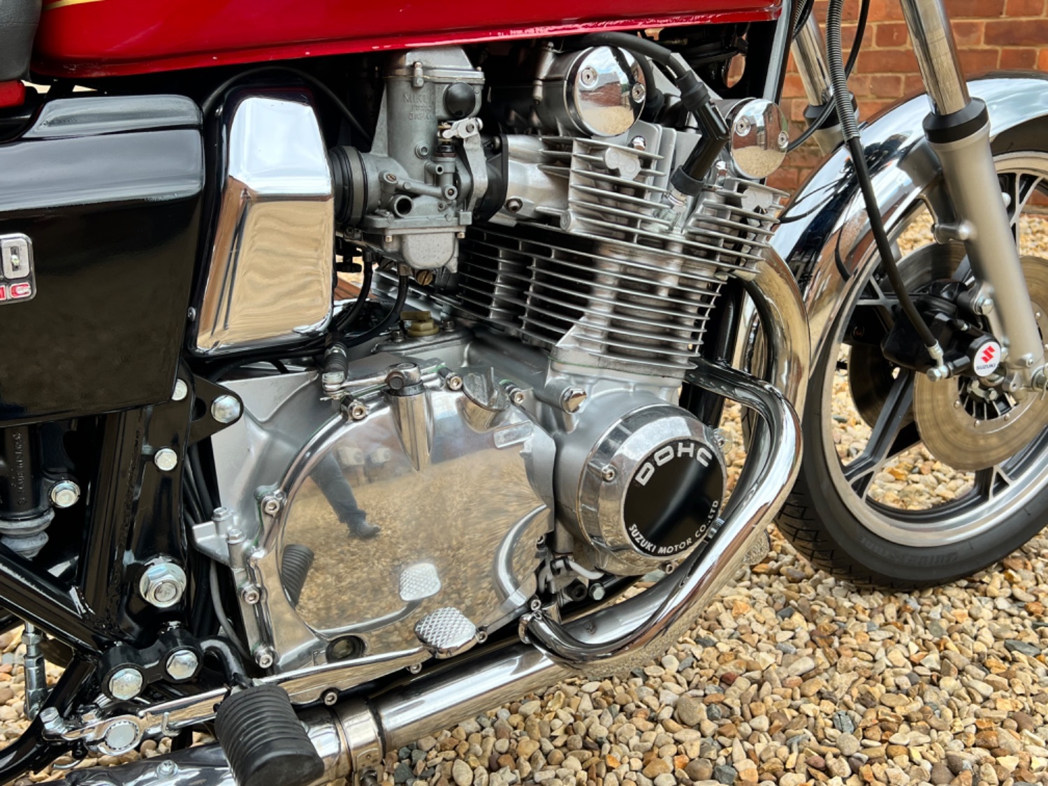 1978 Suzuki GS 1000. Red Metallic. The G and S in GS stands for Grand Sporting, and in the late 1970s Suzuki produced a number of machines bearing the GS moniker, varying in size from 400-1000cc. However, at that time, Suzuki was world-renowned for its production of two-stroke engines, and was busy winning world championships both on and off-road. So, while Barry Sheene was racing his RG500 to glory and Roger De Coster was winning the World Motocross Championship, Suzuki obtained a four-cylinder, two-valve, four-stroke engine from MV Agusta, and got to work. In fact, rumour has it a number of parts could fit to an MV engine. 1978 rolled around and the GS1000 was born, boasting a 997cc, inline four-cylinder engine, with DOHC and two valves per cylinder, putting out 88bhp at 8,500rpm and 60lbft of torque at 6,750rpm. On the street there became a number of variants that all used the same basic platform, including faired and unfaired, as well as custom version and shaft-driven models, too. But, like a lot of Suzuki’s in history, it was in racing that it really carved a reputation for itself. In 1978 the GS1000 was born and in just 50 days the legendary Pops Yoshimura tuned a GS1000 to victory in the 1978 Daytona Superbike race ridden by Steve McLaughlin, followed by victory at the prestigious Suzuka 8-Hour with the legendary Wes Cooley. Cooley would go on to win the 1979 and 1980 AMA titles, too. This stunning GS has come to us directly from a private collection and has been lovingly restored keeping the bike as totally original as possible. Running and riding very well this will fit straight in to any motorcycle collection. With 70’s Japanese bikes now rising rapidly in price added to the rarity of these wonderful machines we see this as a smart investment as well as a joy to own. Absolutely any inspection welcome. All major debit and credit cards accepted. Part exchange considered. Free U.K mainland delivery. Please contact us for any further information. Lots more pictures and a video on our website and Facebook page.
