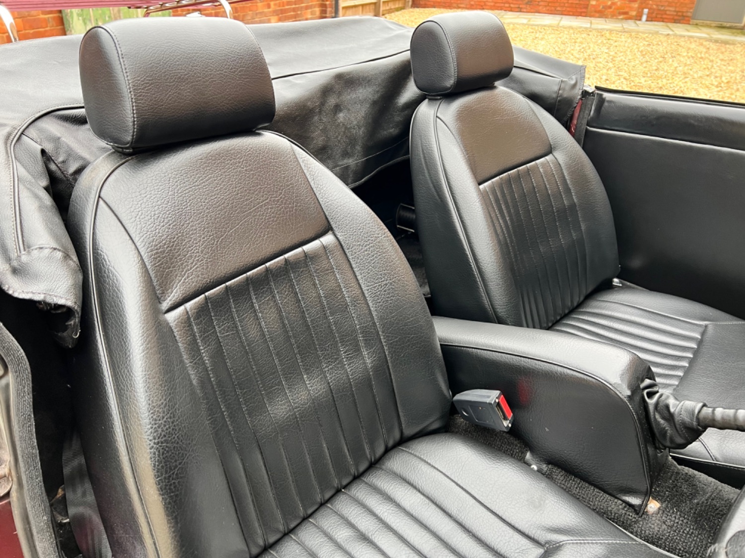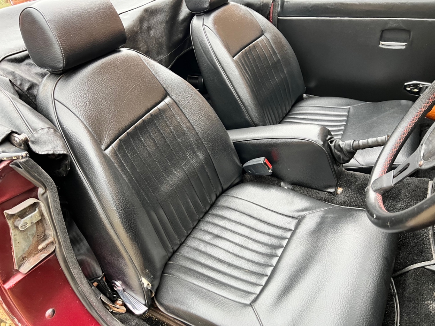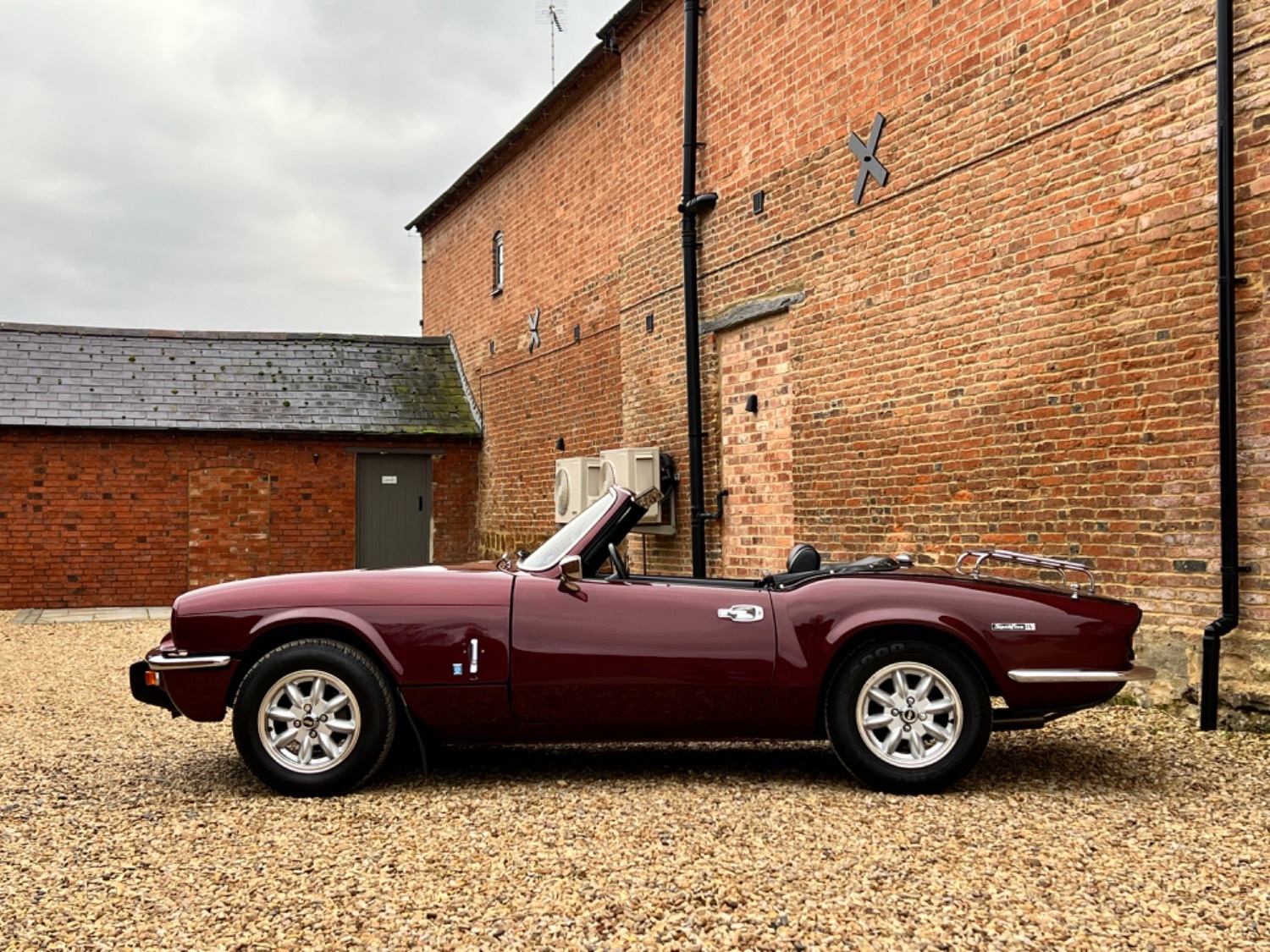 1972 Triumph Spitfire 1300cc. Rosso Bordeaux with black upholstery, black hood and black half tonneau. This Spitfire has been with its last keeper for 10 years and has only been sold due lack of use. The car has always been garaged and cherished during this time. Most recently the car has had the carburettors overhauled and new electrics, coil, distributor cap, leads etc. Presenting very well and a good all round usable classic, Triumphs benefit from a huge parts and service backup and support and many owners clubs giving help and advice for all aspects of ownership. The 1300cc engine starts with ease and performs well on the road, the four branch manifold and stainless exhaust giving a pleasing exhaust tone through the country lanes. The Minilite style alloy wheels complete the look of this 70’s roadster. Although now tax and mot exempt a fresh mot will be applied upon sale for your own peace of mind. If you are new to the classic car world this be be an ideal starting place. Absolutely any inspection welcome. All major debit and credit cards accepted. Part exchange considered. Finance arranged. Free U.K mainland delivery. Please contact us for any further information.