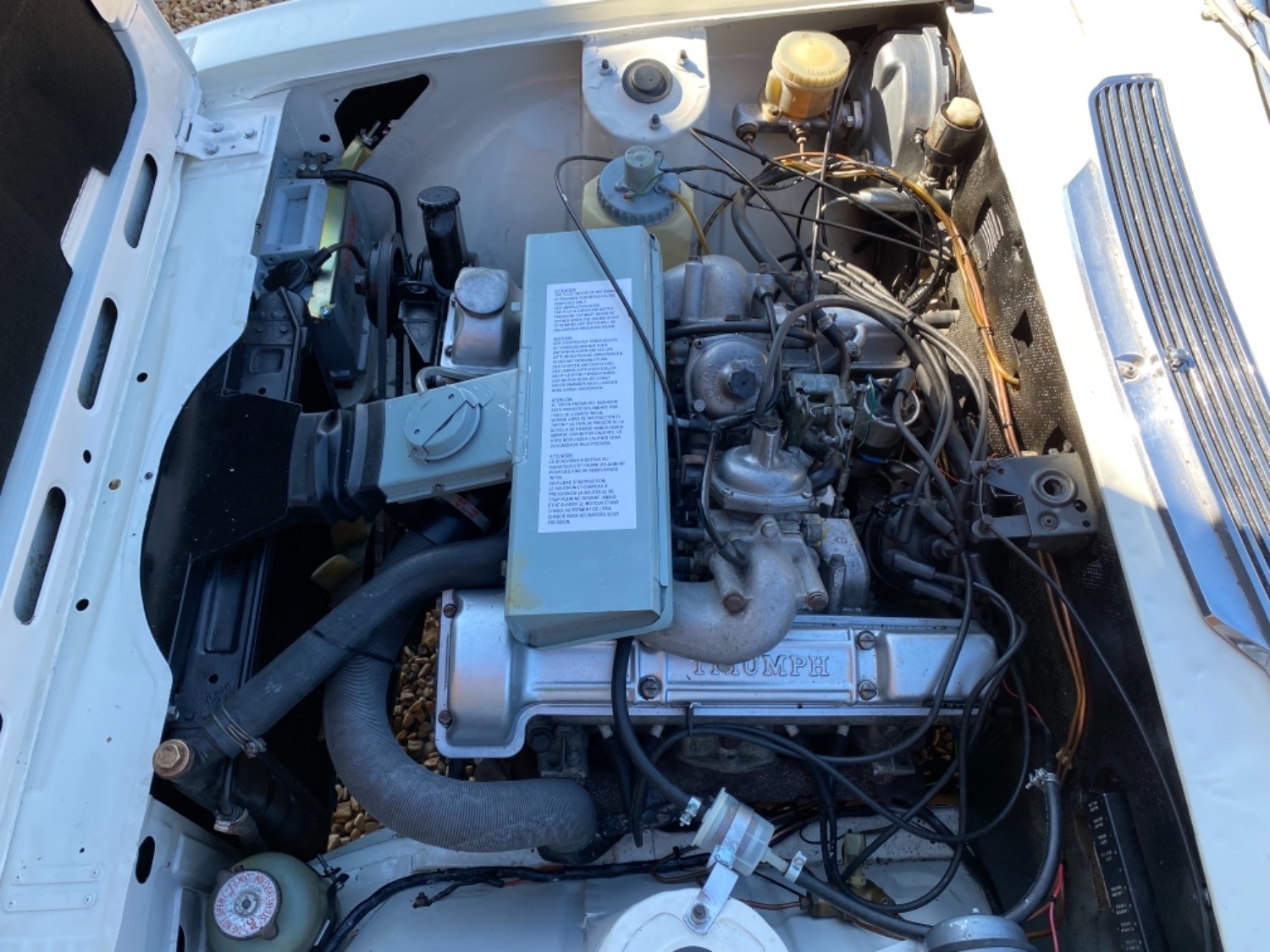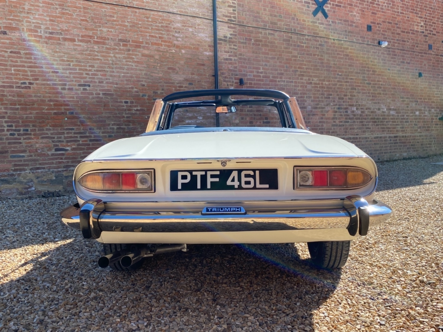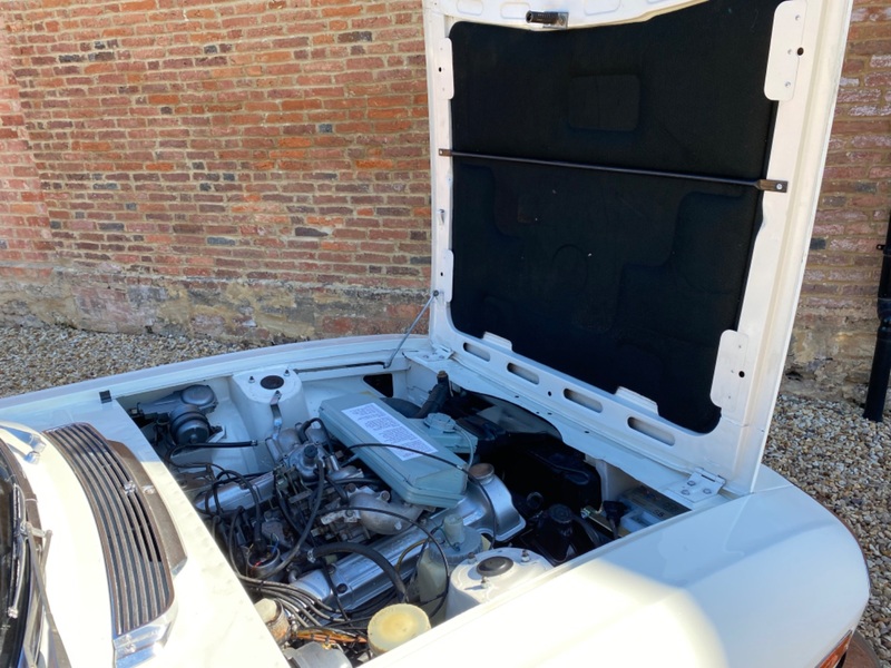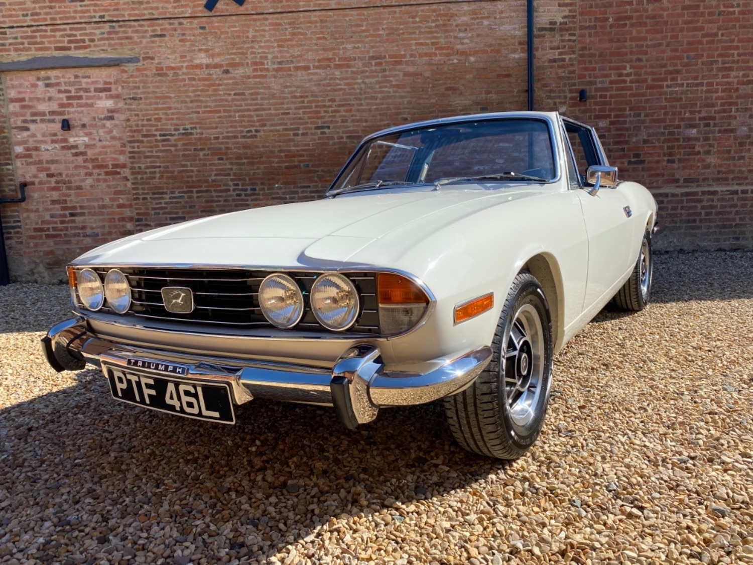1972 Triumph Stag 3.0 V8 MK 1 1/2. Manual / Overdrive. Triumph white with shadow blue Ambla upholstery, black hood and white factory hard top. We are delighted to offer this beautiful low mileage Triumph Stag which has come to us from a local Stag oficionado who has totally refreshed this car to a beautiful standard. The car has covered just 42,000 miles from new and the history folder contains a large amount of old mot certificates which seem to back this up. The car has been treated over the past year to much work and many new parts. The car has a complete professional repaint and was treated to new carpets and boot set, stainless steel bumpers and overriders, a reconditioned overdrive unit, fully refurbished diamond cut alloy wheels, new brake discs and pads, new clutch master and slave cylinders, eight new spark plugs and leads and a new electronic ignition system. The underside of the car is as good as the top side and you can clearly see how strong the chassis and floors are on this car with no signs of any corrosion that blighted so many Stags. The car starts on the button and has the unmistakable V8 burble that is the cars trademark. On the road the car is an absolute pleasure to drive, and with the desirable manual gearbox is a drivers car, easily keeping up with the demands of modern traffic. Although now tax and mot exempt the car has a fresh mot through to June 2022 with no advisories for your own peace of mind. This is a well sorted Stag that has had all the hard work done to it so all you need to do is enjoy it. Ready to grace any classic car rally or show ground this Triumph is well worth considering. Absolutely any inspection is welcome. All major debit and credit cards accepted. Part exchange considered. Finance arranged. Free U.K mainland delivery. Please contact us for any further information.