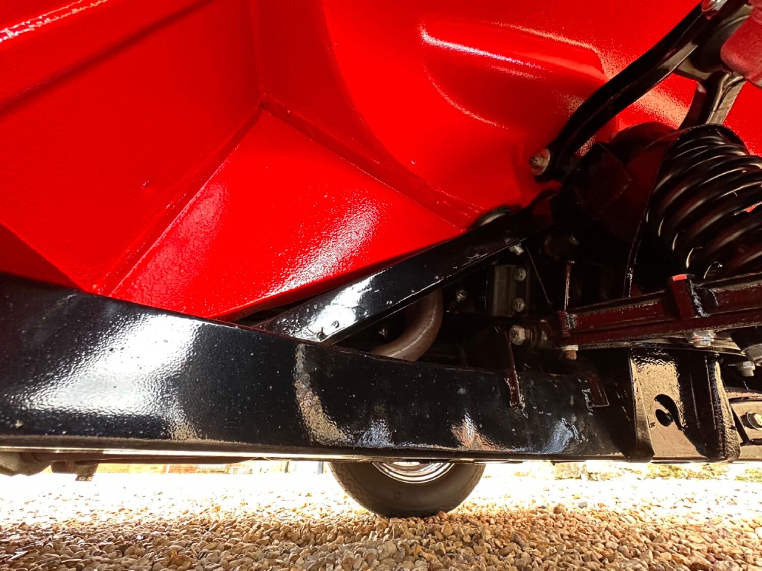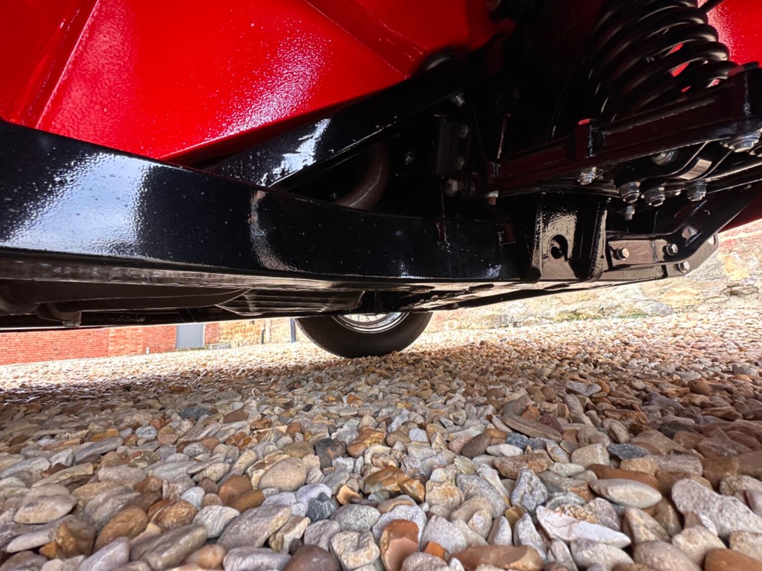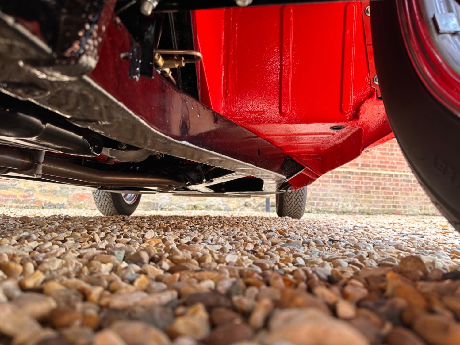 1968 Triumph TR5. Éclat Red with Black leather upholstery piped in white and a black mohair hood. This TR5 BXC 111G was first registered in August 1968 and has had just two owners from new, the previous owner acquiring it through his tailoring business in 1970 and then transferring it into his own name when his company was dissolved in 1993. A leading light in the TR Register, he used the TR5 regularly during his long ownership and the car is well known amongst club members. Unusually, it has been kept completely standard throughout its life and always been looked after by the respected Blakedown Sports Cars near Kidderminster with a good file of invoices charting routine maintenance over the years. Other documentation includes the original purchase invoice from 1970, various photos and press cuttings, a condition report from 1980, some interesting correspondence with Lucas in the late 1980s relating to the fuel-injection system, numerous old tax discs back to 1971 and an original owner’s handbook. Sadly, its original owner passed away in 2019 and the car was purchased by Anthony Hamilton, father of Lewis the Formula One World Champion, an enthusiastic collector of British sports cars. Anthony is known for the sheer quality of his Collection and, although the TR was in sound condition and essentially original, the decision was taken to completely strip the car to every last nut and bolt and then rebuild it to a Concours d’Elegance standard.