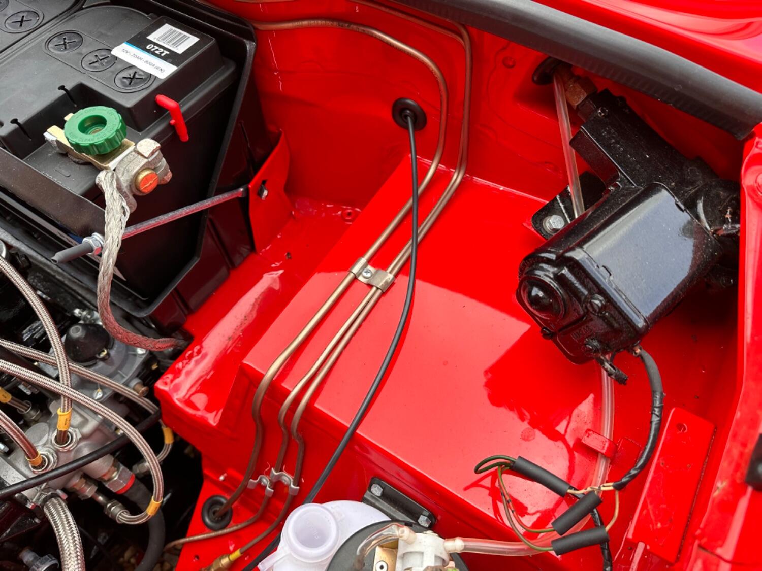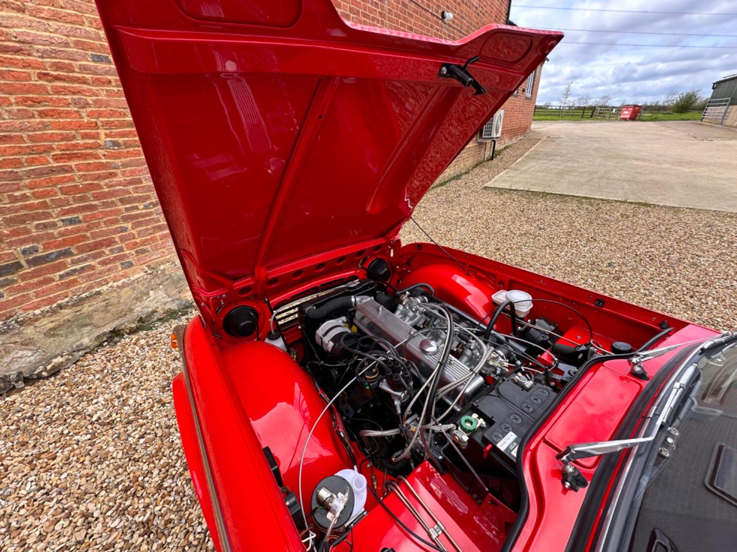 Built from the ground up, absolutely no expense was spared in returning the Triumph to the gleaming condition you see today. New/old stock panels were sourced and every part of the car was either rebuilt, reconditioned or replaced. The choice of colour was important and, rather than paint this special car a standard factory colour, a batch of Aston Martin Éclat Red was specially mixed. This fabulous colour was used by Aston on 10 Vanquish ‘S’ models created as a Red Arrows Limited Edition (Éclat is the Red Arrows motto) and we feel it really suits Michelotti’s clean and crisp design.
