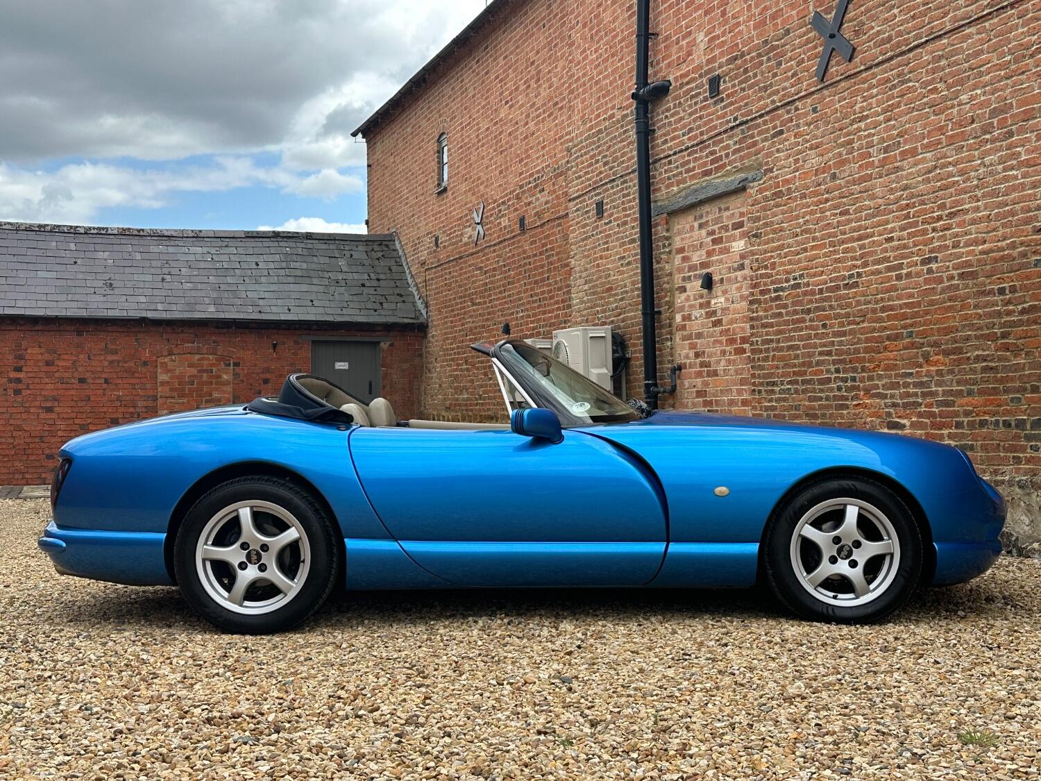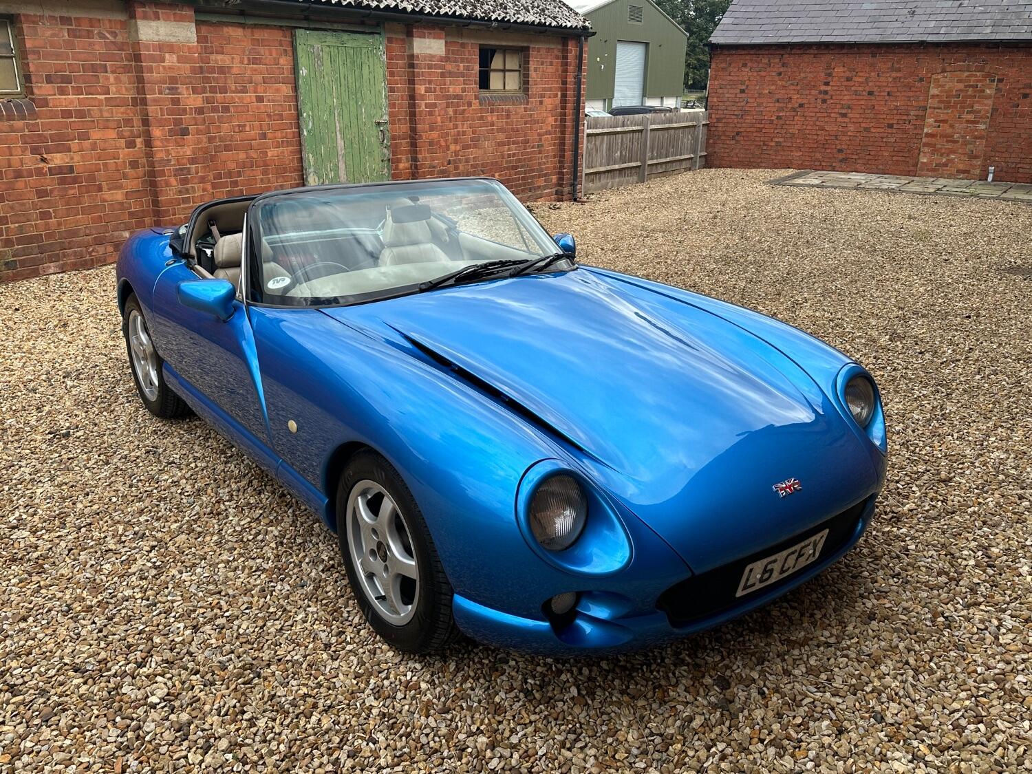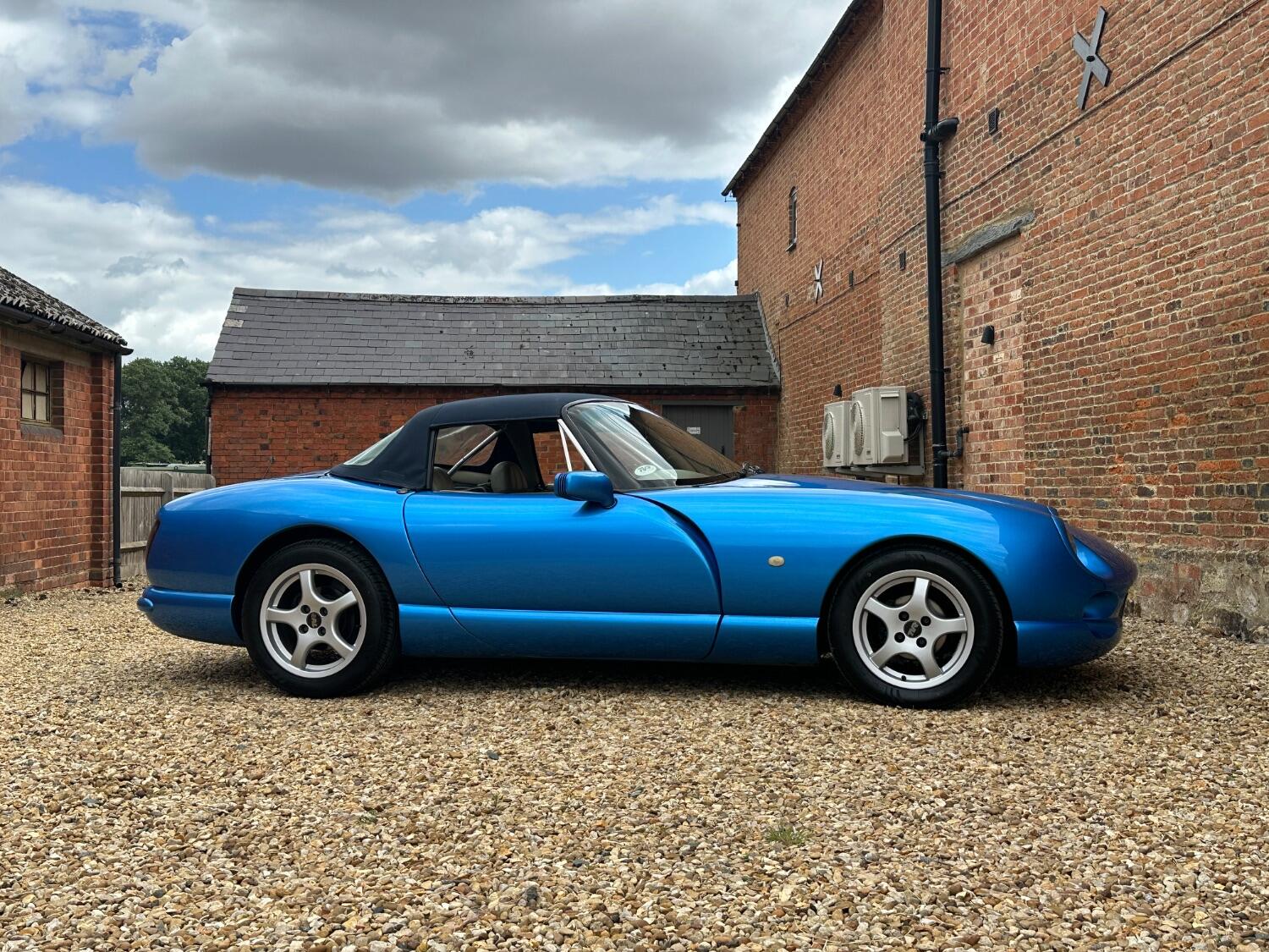 1993 TVR Chimaera 400 V8. Laser Blue Metallic with Oatmeal Leather upholstery and Blue removable top. A great opportunity to own a clean, honest and well-sorted TVR that has covered just 90,000 miles and finished in striking Laser Blue – a professional body restoration in 2010 that included a host of cosmetic and mechanical enhancements. Works carried out over the years also include outriggers replaced by Bespoke Performance. New fuel pump, filter, and hoses. Headlights and bowls replaced, with clear front indicators. Dashboard re-veneered from oak to a lighter ash finish – brightens up the cabin beautifully. Full Leven accessories and stainless steel kick plates. New blue hood. Refurbished wheels with recent new tyres. Rear end updated to later-style boot. Bespoke stainless steel rear exhaust system fitted. Roof hoop seal replaced. Electric power steering system fitted by Top Chats Racing. No engine modifications and runs as TVR intended. Maintained and serviced by specialists including TVR Power, Castle Race Engines, and Bespoke Performance and importantly has never been tracked. This Chimaera is a solid, well-cared-for example that’s had all the right attention where it matters, without being over-modified including power steering which transforms the drive. It looks sharp, drives well, and offers classic TVR thrills with modern touches and peace of mind. A large service carried out in May 2024 which included new tyres, new exhaust and brake flexi hoses and an MOT through to June 2026. Accompanying the car is a huge history folder containing bills and invoices for many thousands of pounds. The private registration is also included with the car. Absolutely any inspection is welcome. All major debit and credit cards accepted. Part exchange considered. Delivery arranged. Please contact us for any further information. Lots more pictures and a video on our website and Facebook page.