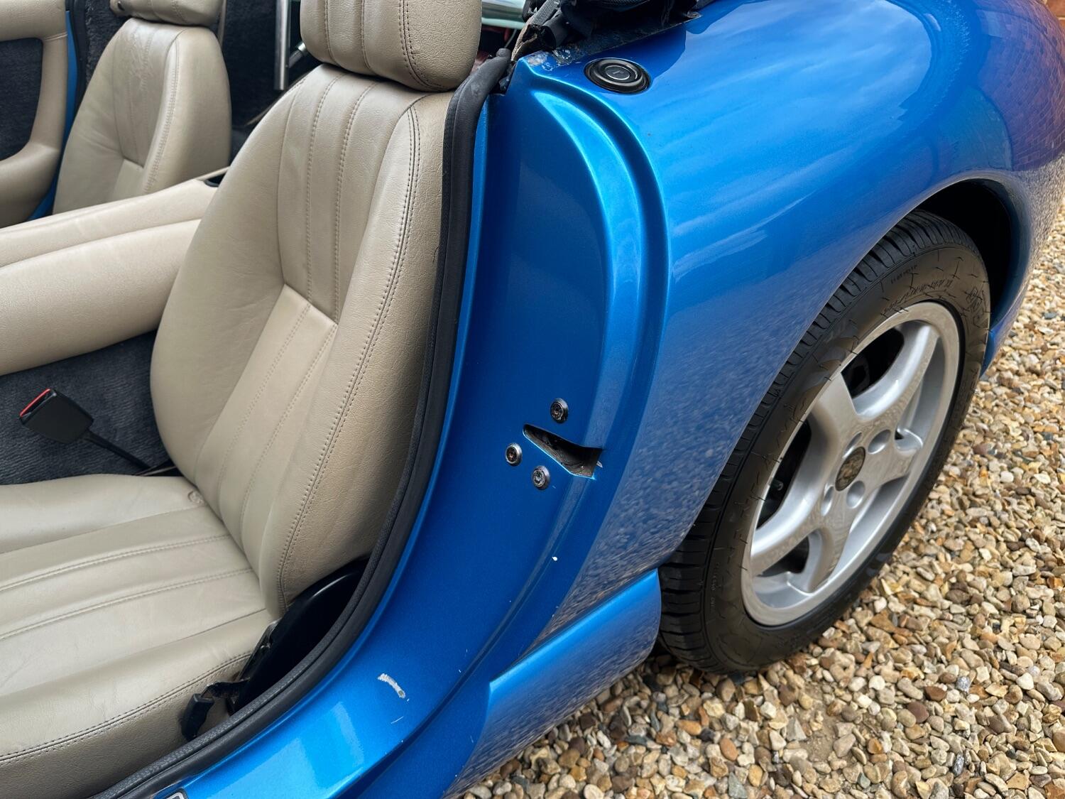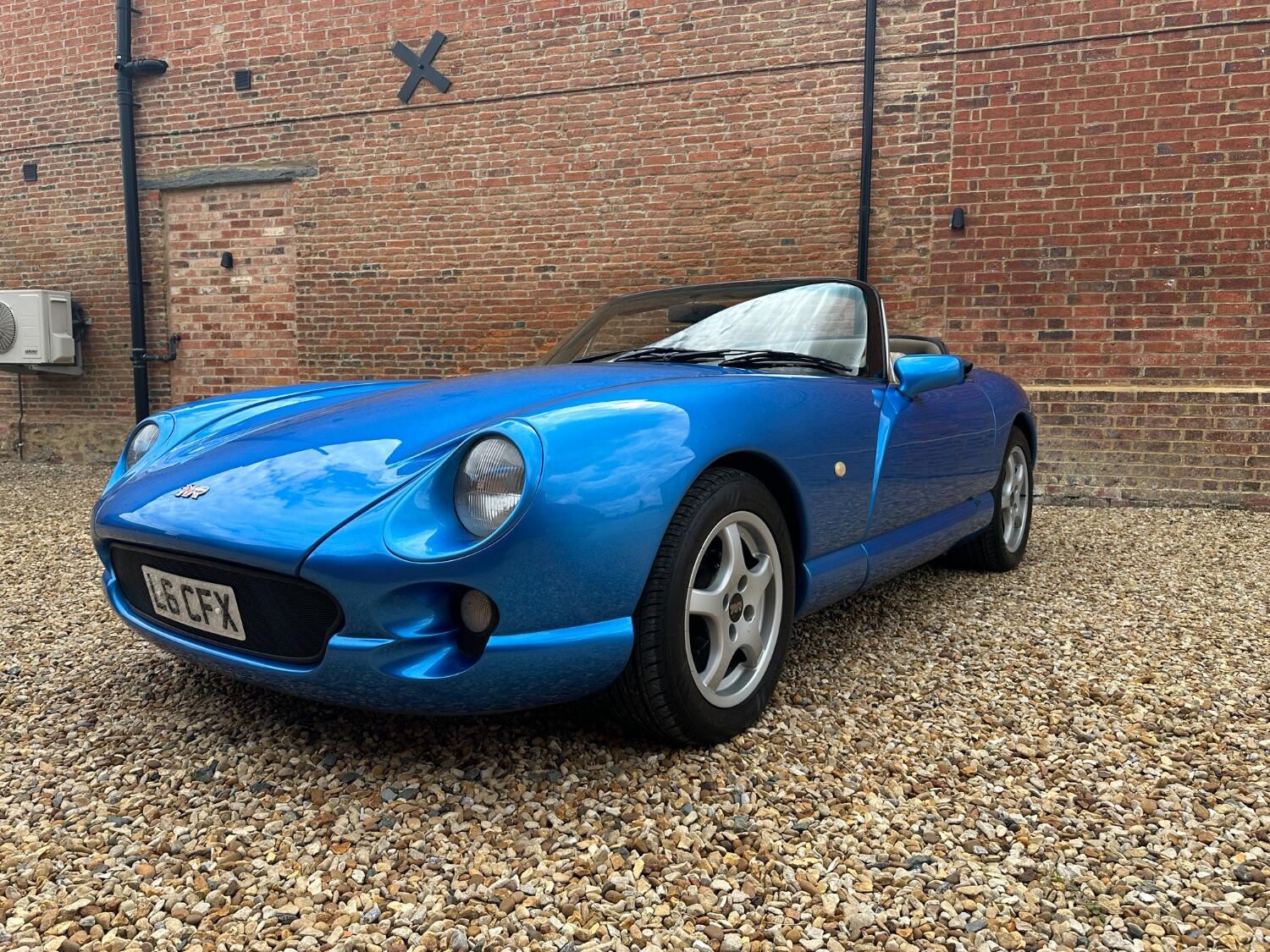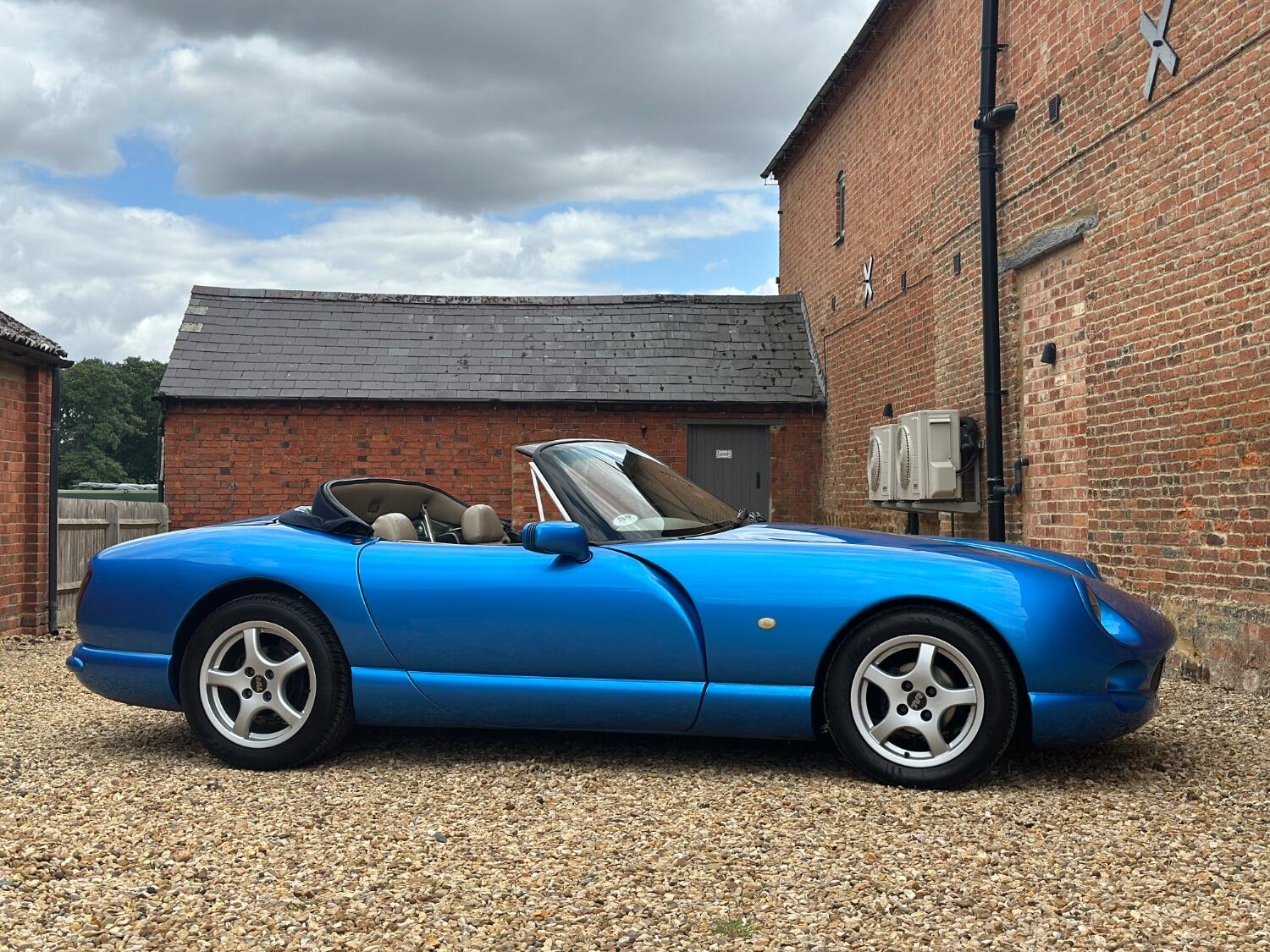 1993 TVR Chimaera 400 V8. Laser Blue Metallic with Oatmeal Leather upholstery and Blue removable top. A great opportunity to own a clean, honest and well-sorted TVR that has covered just 90,000 miles and finished in striking Laser Blue – a professional body restoration in 2010 that included a host of cosmetic and mechanical enhancements. Works carried out over the years also include outriggers replaced by Bespoke Performance. New fuel pump, filter, and hoses. Headlights and bowls replaced, with clear front indicators. Dashboard re-veneered from oak to a lighter ash finish – brightens up the cabin beautifully. Full Leven accessories and stainless steel kick plates. New blue hood. Refurbished wheels with recent new tyres. Rear end updated to later-style boot. Bespoke stainless steel rear exhaust system fitted. Roof hoop seal replaced. Electric power steering system fitted by Top Chats Racing. No engine modifications and runs as TVR intended. Maintained and serviced by specialists including TVR Power, Castle Race Engines, and Bespoke Performance and importantly has never been tracked. This Chimaera is a solid, well-cared-for example that’s had all the right attention where it matters, without being over-modified including power steering which transforms the drive. It looks sharp, drives well, and offers classic TVR thrills with modern touches and peace of mind. A large service carried out in May 2024 which included new tyres, new exhaust and brake flexi hoses and an MOT through to June 2026. Accompanying the car is a huge history folder containing bills and invoices for many thousands of pounds. The private registration is also included with the car. Absolutely any inspection is welcome. All major debit and credit cards accepted. Part exchange considered. Delivery arranged. Please contact us for any further information. Lots more pictures and a video on our website and Facebook page.
