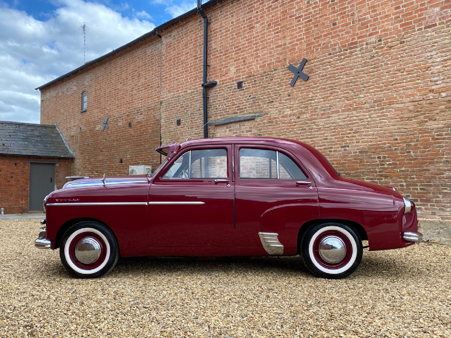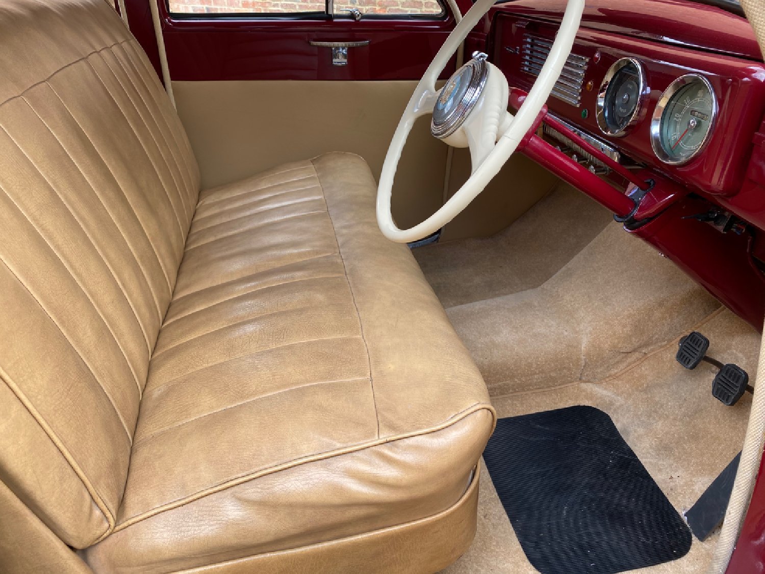 1952 Vauxhall Wyvern E Series. 1500cc. Burgundy with buscuit upholstery. A very rare side opening bonnet and interior boot release model. An absolutely stunning car that was subject to a bare shell restoration in 2004 and still presents beautifully today. No expense has been spared on the upkeep of this Wyvern and more recently it benefits from a brakes overhaul including new master cylinder, front hub seals, head gasket and cylinder head refaced. The invoice for the cylinder work over £800 alone. The history file is huge with bills and invoices dating back many years as well as lots of old mot certificates. The restoration was all recored with photographs and the album is also in the file. Although now mot exempt it has a test through to August 2021 with no advisories. It's new MoT was issued without advisories. Also with the car are lots of original shop manuals and owners handbooks as well as some very interesting literature. The Vauxhall drives just as you would expect for such a lovely car and generated lots of waves and smiles when out and about. A car that is well known to the owners club and just waiting to be enjoyed in new hands. It will certainly grace any collection or classic car meet. Absolutely any inspection is welcome. All major debit and credit cards accepted. Part exchange considered. Finance arranged. Free U.K mainland delivery. Please contact us for any further information.