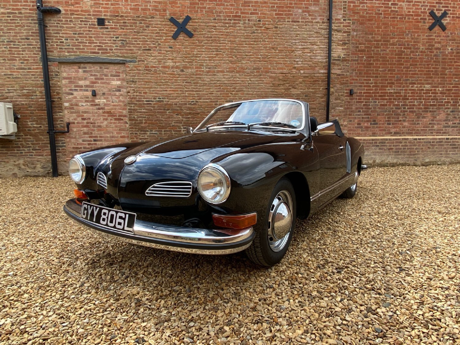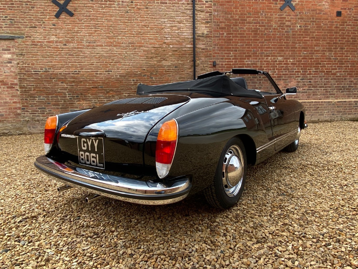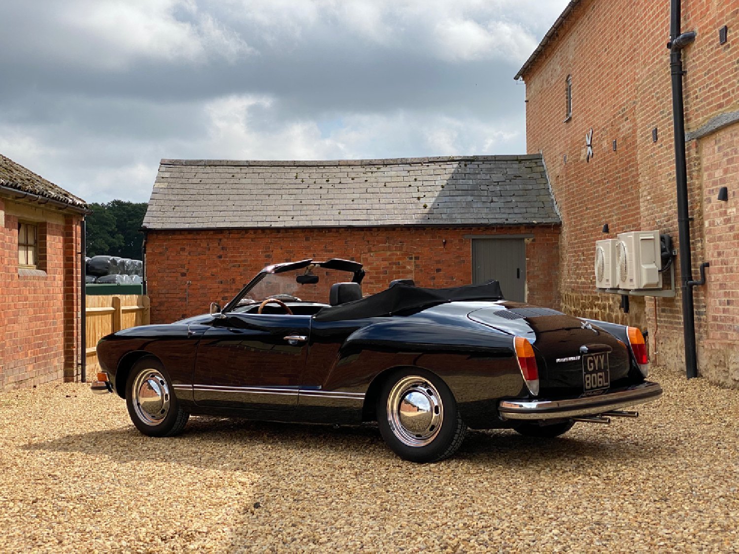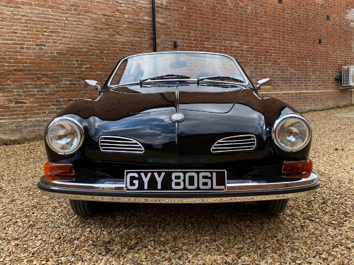 1973 Karman Ghia Convertible 1600. Triple Black in outstanding condition. It’s a matching numbers California (dry state) car that was imported to the U.K. in 2003 following a complete body restoration, The car has had just one lady owner since arriving in the U.K. And has genuinely never seen a rainy or winters day since it’s been in the country. It’s covered just 60,000 miles from new, only 6000 since being in the U.K. with every mot to prove. The bodywork is absolutely immaculate, the paintwork is of show quality and the panel gaps are perfect, there is absolutely no rust whatsoever. The photos are a true example of how nice the car is in the flesh. The chrome is superb with no pitting whatsoever. The chrome wheels are in perfect condition with matching firestone tyres all round. The seats, door cards and carpets are in superb original condition with no untoward wear, there is very slight wear to the dash but far far better than most I’ve seen and very impressive for its original californian dash. The hood, the headlining and glass rear window are in perfect condition with a perfect matching tonneau cover. The only thing on the car not to factory specification is the Mountney wooden steering wheel. The original 1600 engine is very heathy and extremely lively, it pulls welll through all the gears and keeps up with modern traffic effortlessly. The drive is tight and precise with no play in the steering or suspension and the brakes are very effective. Although exempt from both tax and mot, it’s currently mot’d until November 2020 with no advisories however we will apply a fresh MOT upon sale. To summarise, if you’re looking for a very well sorted Karmann Ghia convertible this is well worth thinking about. Absolutely any inspection is welcome. All major debit and credit cards accepted. Part exchange considered. Finance arranged. Free U.K mainland delivery. 3 Months Powertrain warranty included.