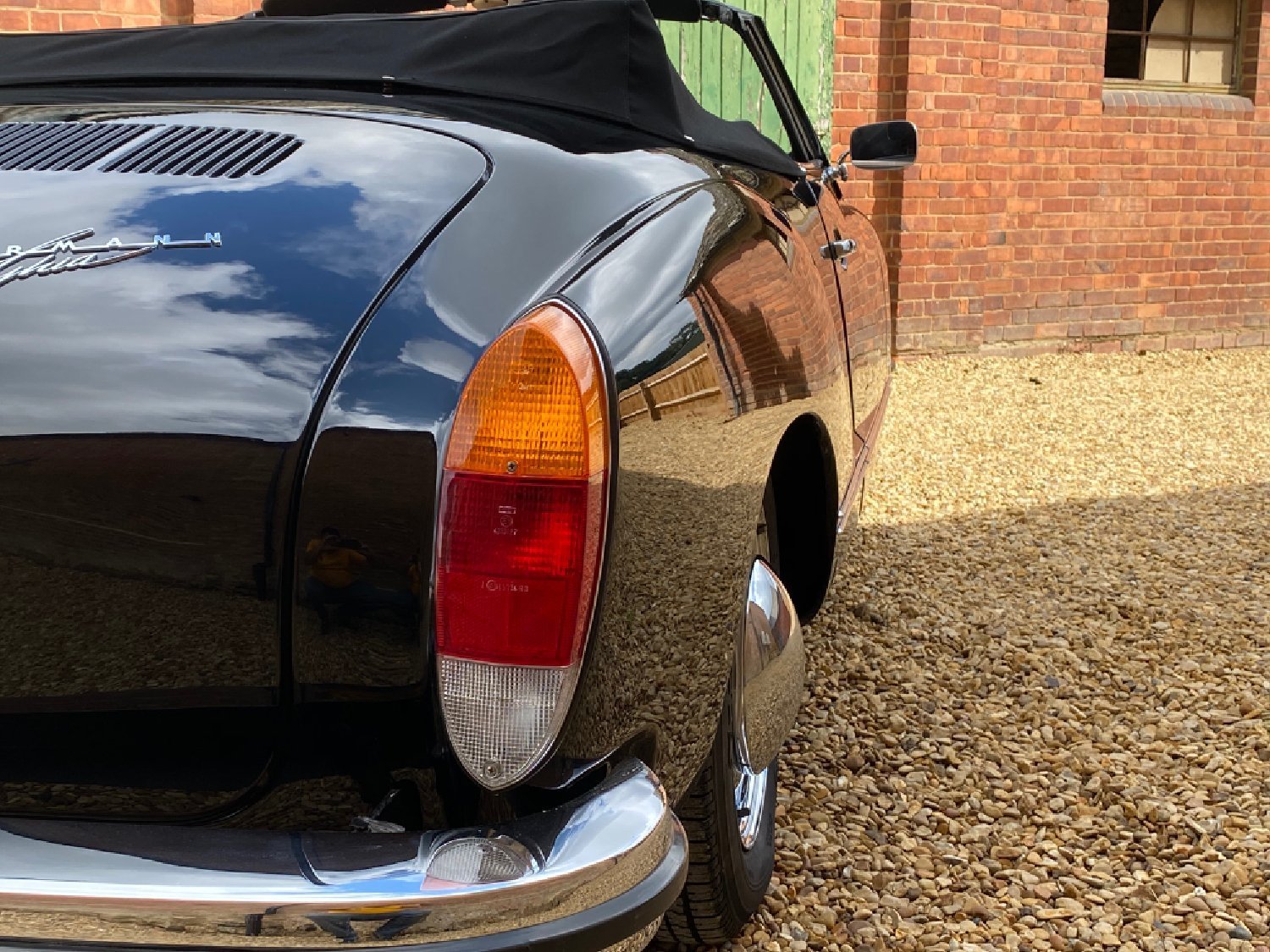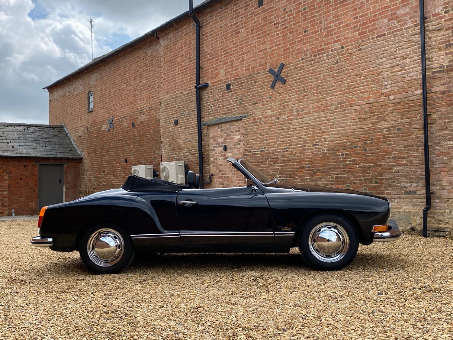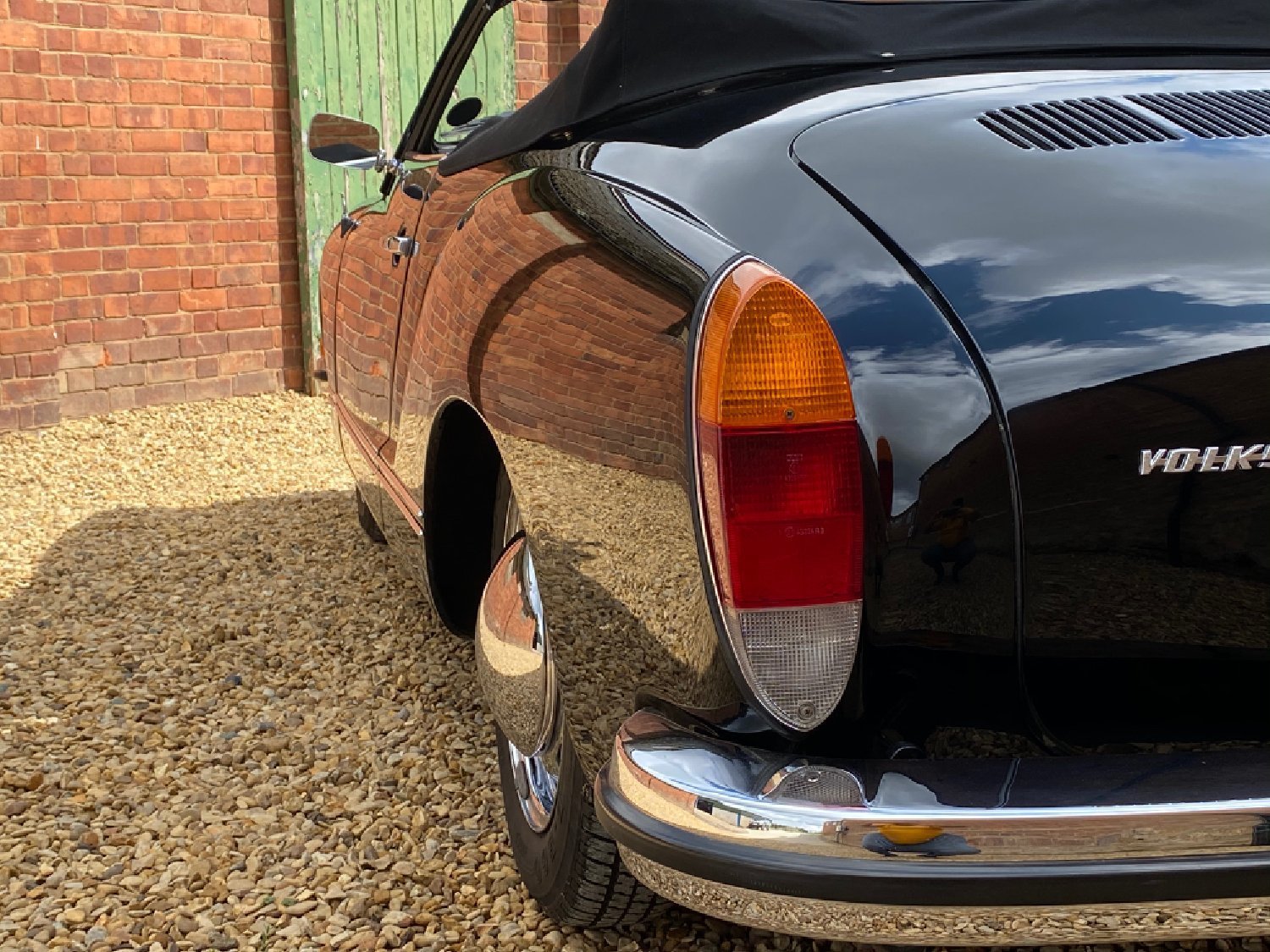 1973 Karman Ghia Convertible 1600. Triple Black in outstanding condition. It’s a matching numbers California (dry state) car that was imported to the U.K. in 2003 following a complete body restoration, The car has had just one lady owner since arriving in the U.K. And has genuinely never seen a rainy or winters day since it’s been in the country. It’s covered just 60,000 miles from new, only 6000 since being in the U.K. with every mot to prove. The bodywork is absolutely immaculate, the paintwork is of show quality and the panel gaps are perfect, there is absolutely no rust whatsoever. The photos are a true example of how nice the car is in the flesh. The chrome is superb with no pitting whatsoever. The chrome wheels are in perfect condition with matching firestone tyres all round. The seats, door cards and carpets are in superb original condition with no untoward wear, there is very slight wear to the dash but far far better than most I’ve seen and very impressive for its original californian dash. The hood, the headlining and glass rear window are in perfect condition with a perfect matching tonneau cover. The only thing on the car not to factory specification is the Mountney wooden steering wheel. The original 1600 engine is very heathy and extremely lively, it pulls welll through all the gears and keeps up with modern traffic effortlessly. The drive is tight and precise with no play in the steering or suspension and the brakes are very effective. Although exempt from both tax and mot, it’s currently mot’d until November 2020 with no advisories however we will apply a fresh MOT upon sale. To summarise, if you’re looking for a very well sorted Karmann Ghia convertible this is well worth thinking about. Absolutely any inspection is welcome. All major debit and credit cards accepted. Part exchange considered. Finance arranged. Free U.K mainland delivery. 3 Months Powertrain warranty included.