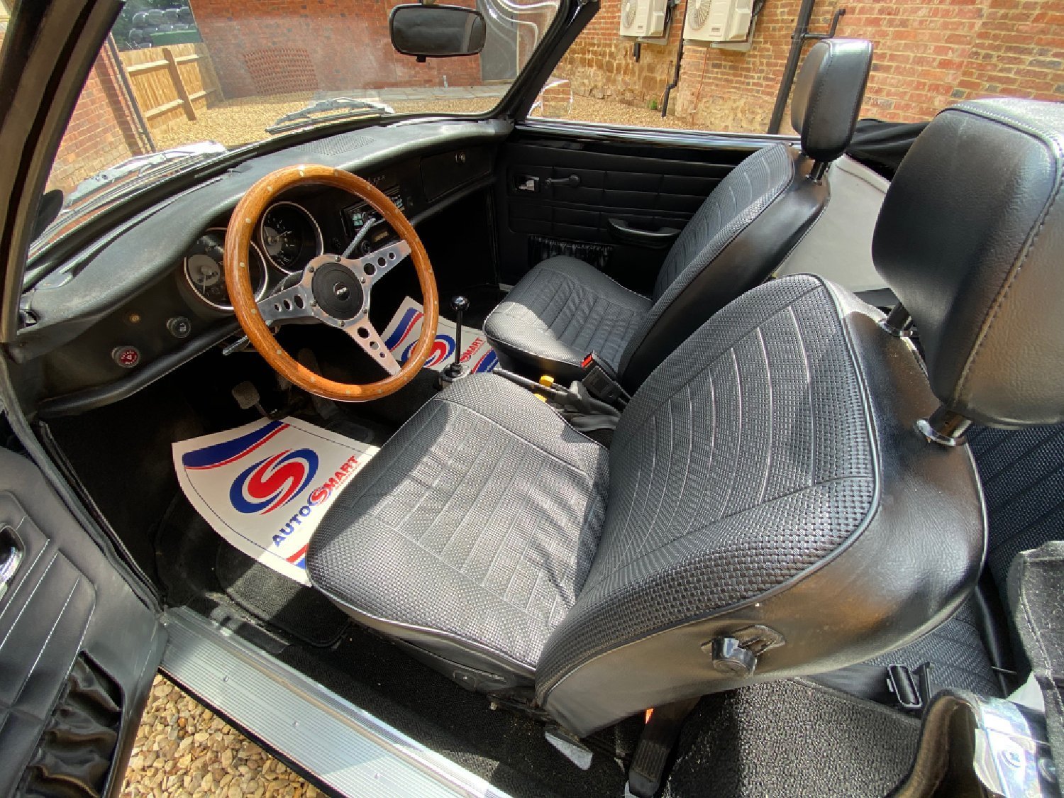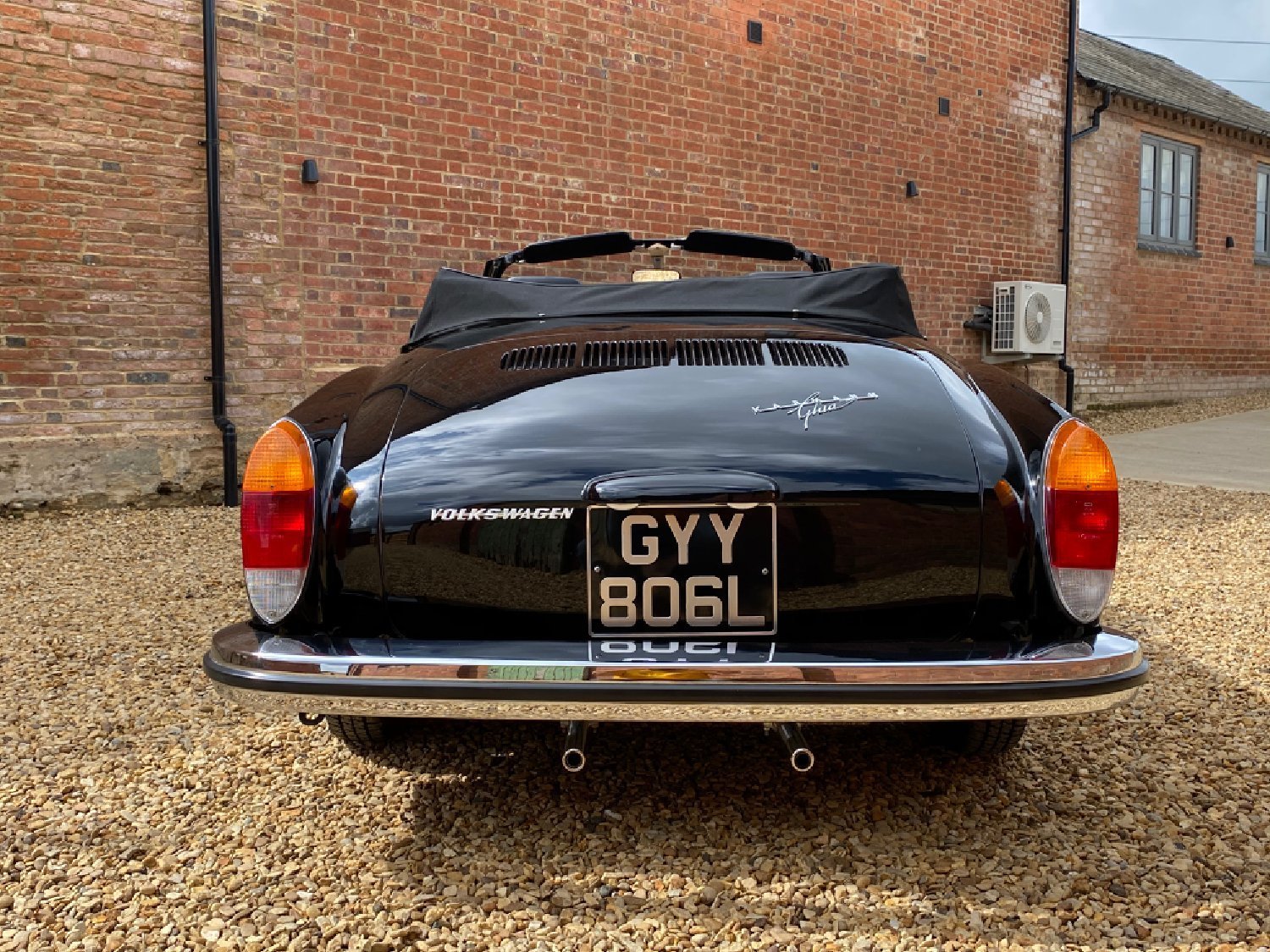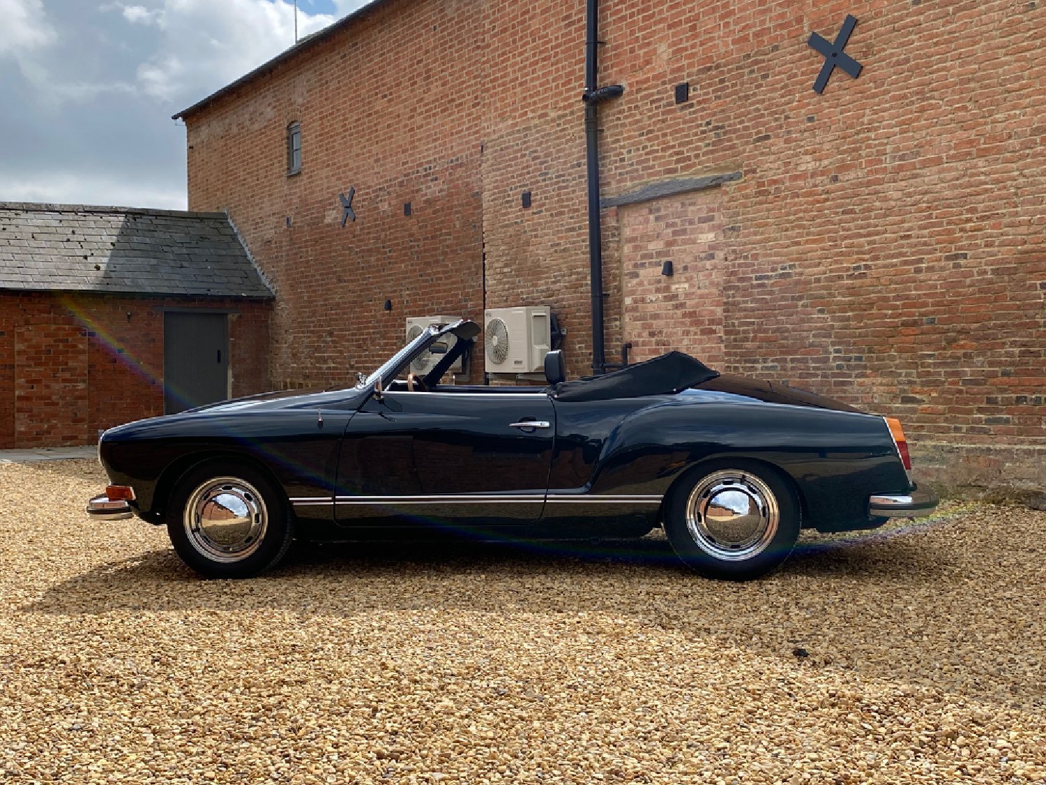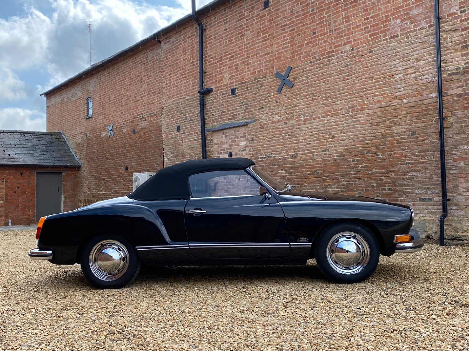 1973 Karman Ghia Convertible 1600. Triple Black in outstanding condition. It’s a matching numbers California (dry state) car that was imported to the U.K. in 2003 following a complete body restoration, The car has had just one lady owner since arriving in the U.K. And has genuinely never seen a rainy or winters day since it’s been in the country. It’s covered just 60,000 miles from new, only 6000 since being in the U.K. with every mot to prove. The bodywork is absolutely immaculate, the paintwork is of show quality and the panel gaps are perfect, there is absolutely no rust whatsoever. The photos are a true example of how nice the car is in the flesh. The chrome is superb with no pitting whatsoever. The chrome wheels are in perfect condition with matching firestone tyres all round. The seats, door cards and carpets are in superb original condition with no untoward wear, there is very slight wear to the dash but far far better than most I’ve seen and very impressive for its original californian dash. The hood, the headlining and glass rear window are in perfect condition with a perfect matching tonneau cover. The only thing on the car not to factory specification is the Mountney wooden steering wheel. The original 1600 engine is very heathy and extremely lively, it pulls welll through all the gears and keeps up with modern traffic effortlessly. The drive is tight and precise with no play in the steering or suspension and the brakes are very effective. Although exempt from both tax and mot, it’s currently mot’d until November 2020 with no advisories however we will apply a fresh MOT upon sale. To summarise, if you’re looking for a very well sorted Karmann Ghia convertible this is well worth thinking about. Absolutely any inspection is welcome. All major debit and credit cards accepted. Part exchange considered. Finance arranged. Free U.K mainland delivery. 3 Months Powertrain warranty included.
