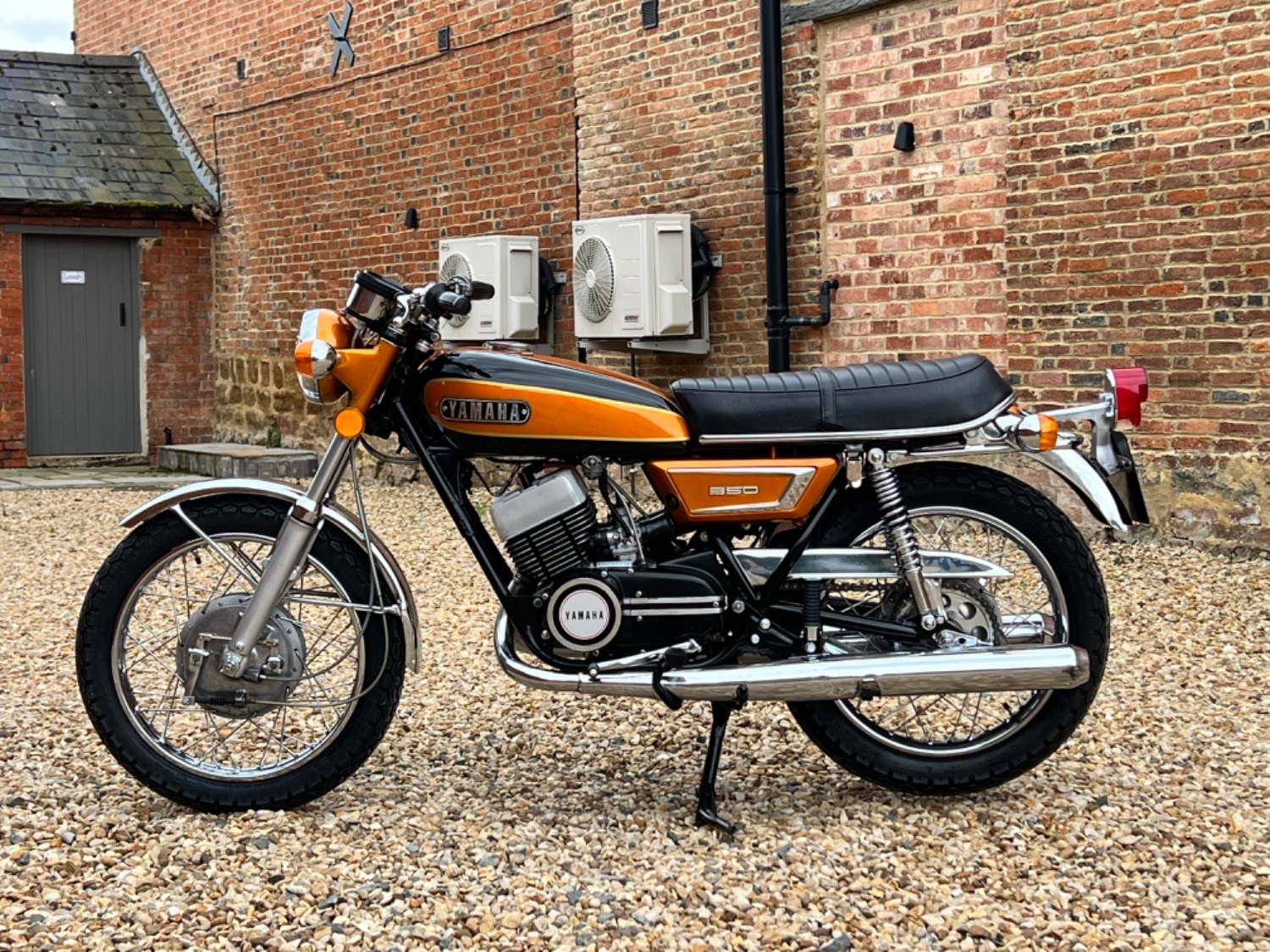 1971 Yamaha R5B 350 Twin Cylinder Two Stroke. The Yamaha R5 is a motorcycle made by Yamaha for production years 1970 (R5), 1971 (R5B) and 1972 (R5C).[when?] It was the first iteration of a new generation of horizontally split crankcase two strokes that also included the RD350 and culminated in the RD400. The engine platform also included the 250cc variants (DS7/RD250). Two earlier generations of sporting 250cc and larger displacement air-cooled two strokes preceded the R5 dating back to 1959. This Yamaha has ben part of a private collection and was discovered languishing in a garage in various boxes several years ago. The last owner bought the bike home and then set about a nut and bolt restoration culminating into this beautiful bike you see today. Built to it’s original specification with original and new old stock parts and including an engine rebuild its starts easily on the kick start and gives that distinctive two stroke rasp. This is a very important motorcycle as in later years it developed into the iconic RD350. Running and riding very well this will fit straight in to any motorcycle collection. With 70’s Japanese bikes now rising rapidly in price added to the rarity of these wonderful machines we see this as a smart investment as well as a joy to own. Absolutely any inspection welcome. All major debit and credit cards accepted. Part exchange considered. Free U.K mainland delivery. Please contact us for any further information. Lots more pictures and a video on our website and Facebook page.